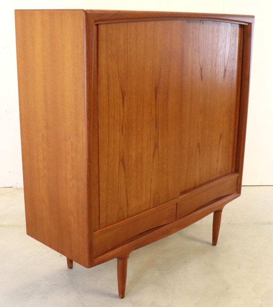 Finished with sliding doors and beautiful drawers, warm and atmospheric solid teak and teak veneer sharing and sitting on beautiful legs, this is really a topper from the 60s. The whole forms a very solid and sleek vintage furniture that will attract all the attention in almost every interior. Have you been looking for just that one vintage cupboard with the "X Factor"? Search no further! This is that one unique model that will only be reviewed once in the few years. In a very nice vintage condition with minimal traces of use, we can speak of a very well -maintained cupboard. The photos give a more precise picture if desired. A real vintage designer cupboard, for the real enthusiasts, also beautiful on the inside, a value -proof investment!