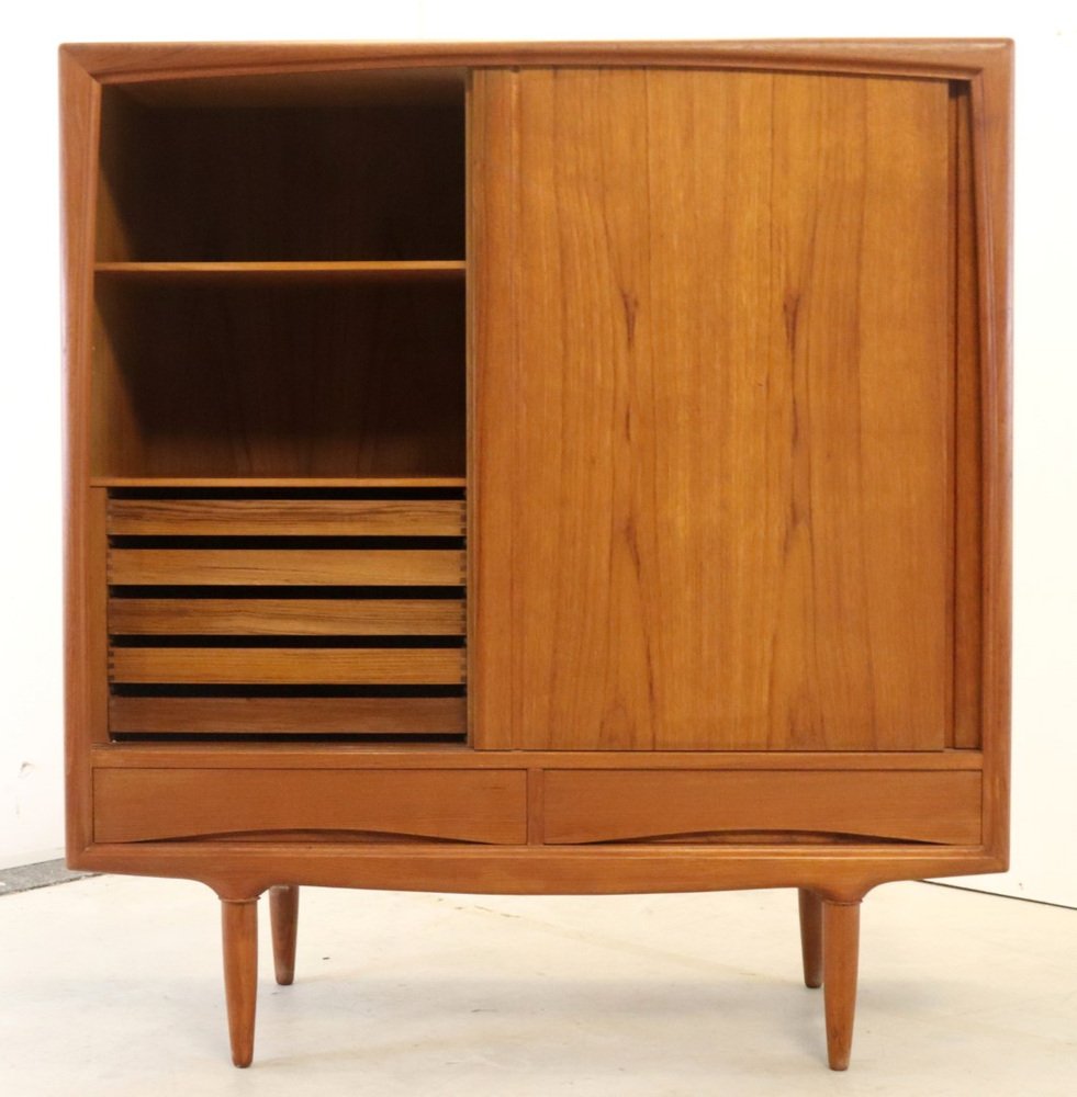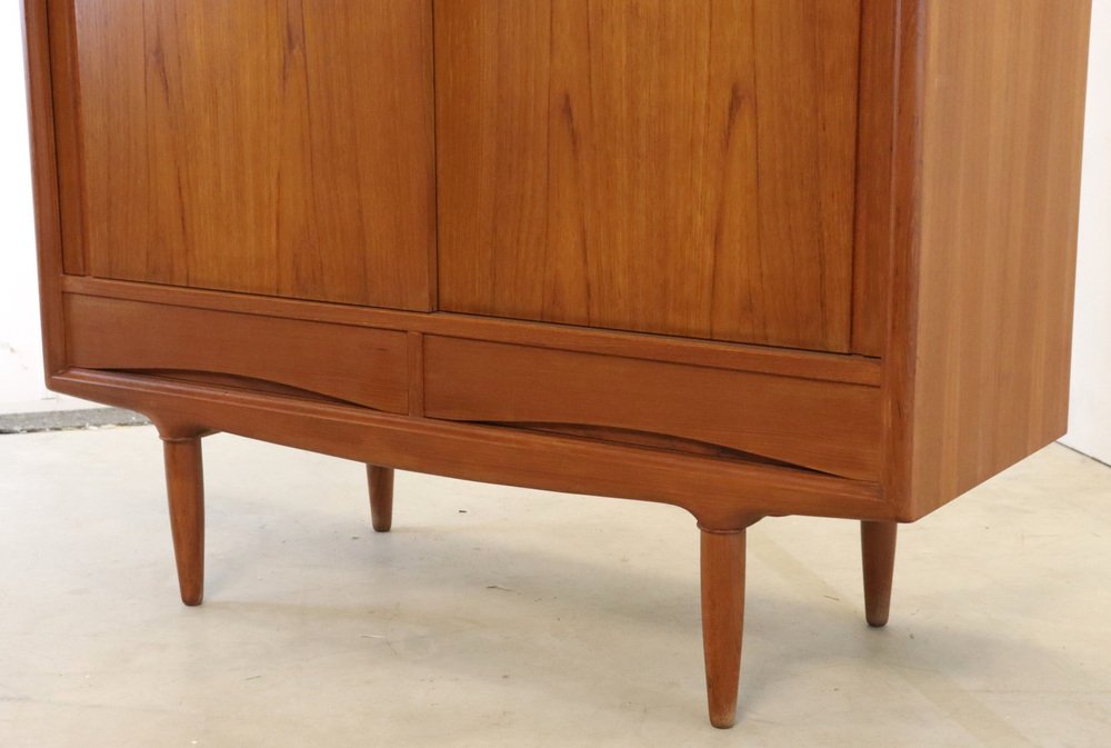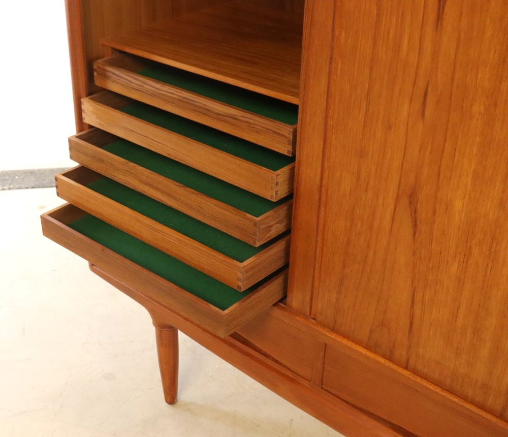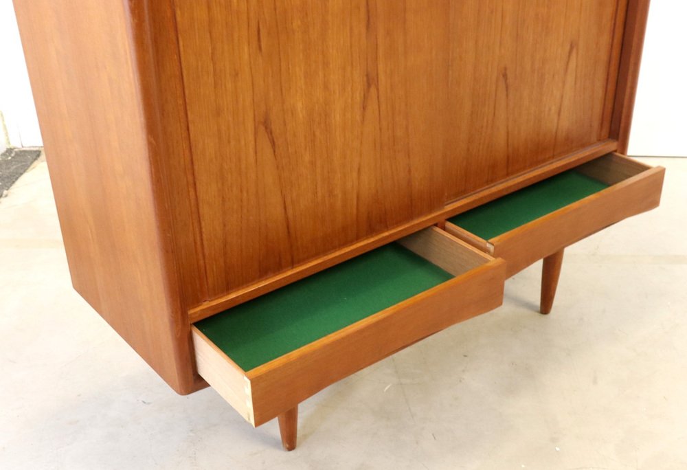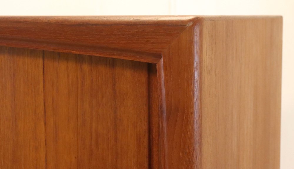 Acabado con puertas correderas y hermosos cajones, con un cálido y atmosférico reparto de teca maciza y chapa de teca y asentado sobre hermosas patas, se trata realmente de un topper de los años 60. El conjunto forma un mueble vintage muy sólido y elegante que atraerá todas las miradas en casi cualquier interior. ¿Ha estado buscando ese armario vintage con el "Factor X"? No busque más Este es ese modelo único que sólo se revisará una vez en pocos años. En un estado vintage muy agradable con mínimas huellas de uso, podemos hablar de un armario muy bien mantenido. Las fotos dan una imagen más precisa si se desea. Un verdadero armario de diseño vintage, para los verdaderos entusiastas, también hermoso por dentro, ¡una inversión a prueba de valor!