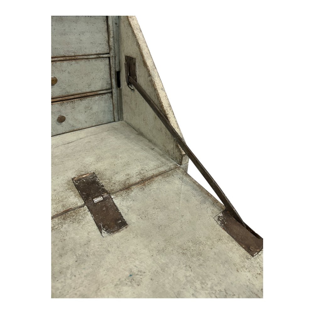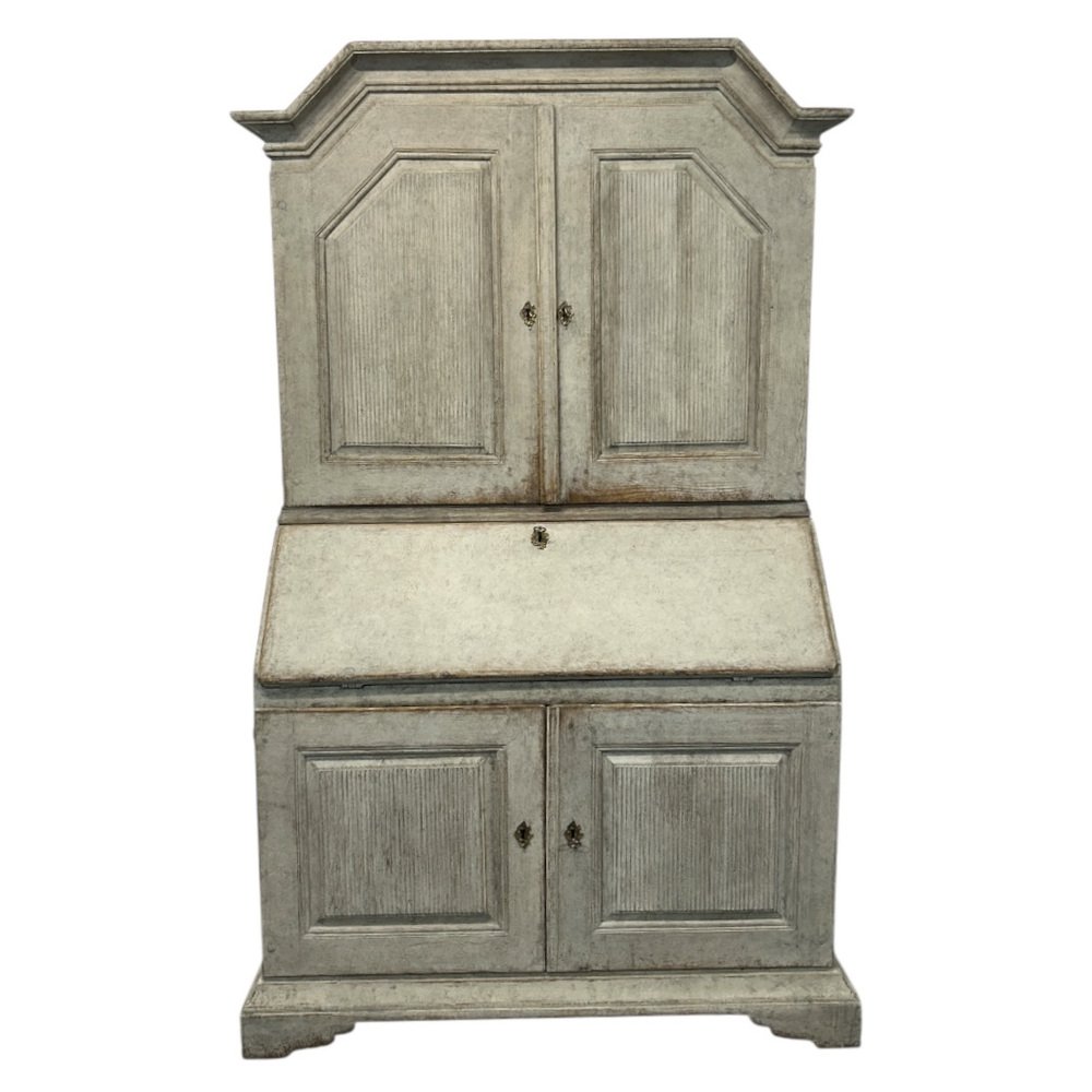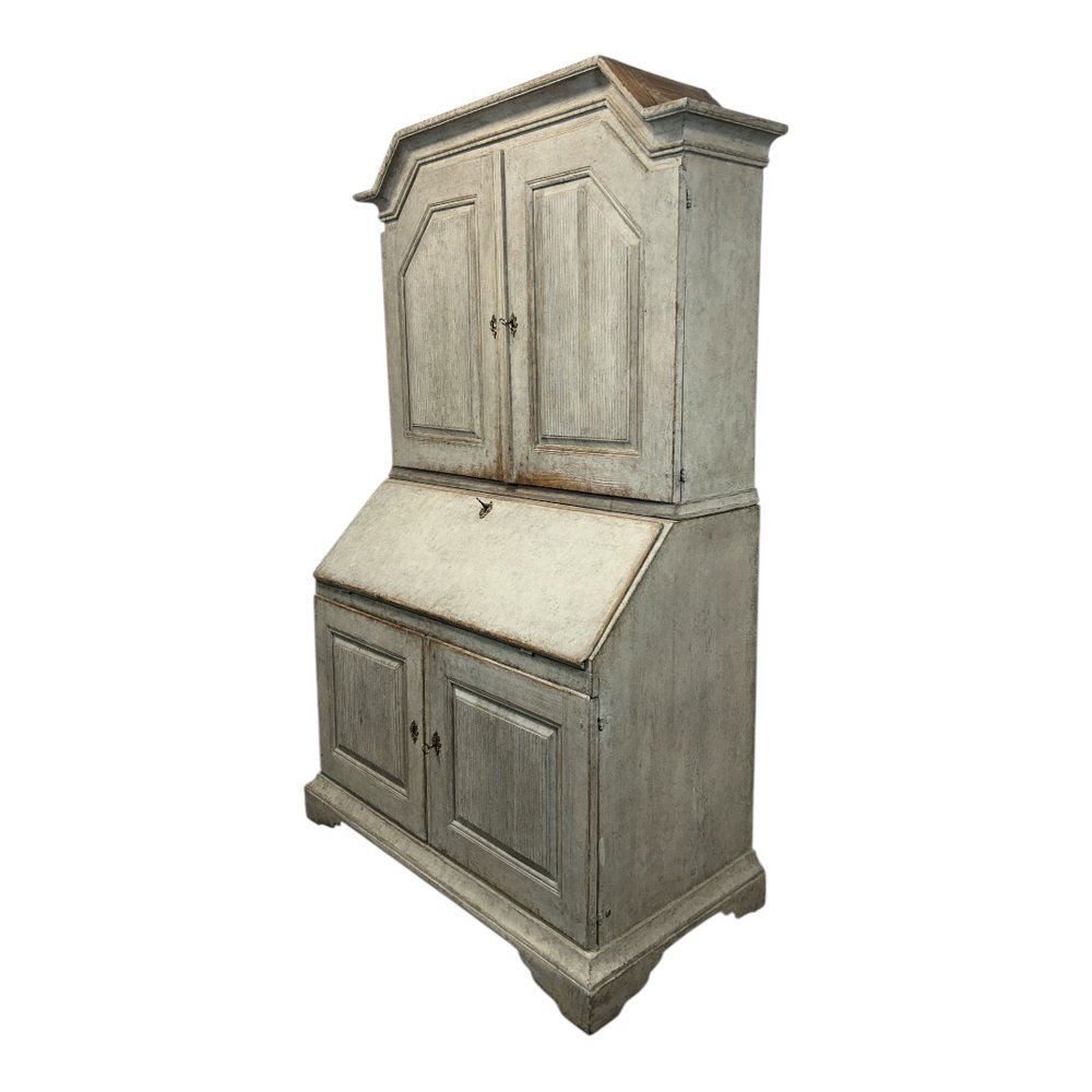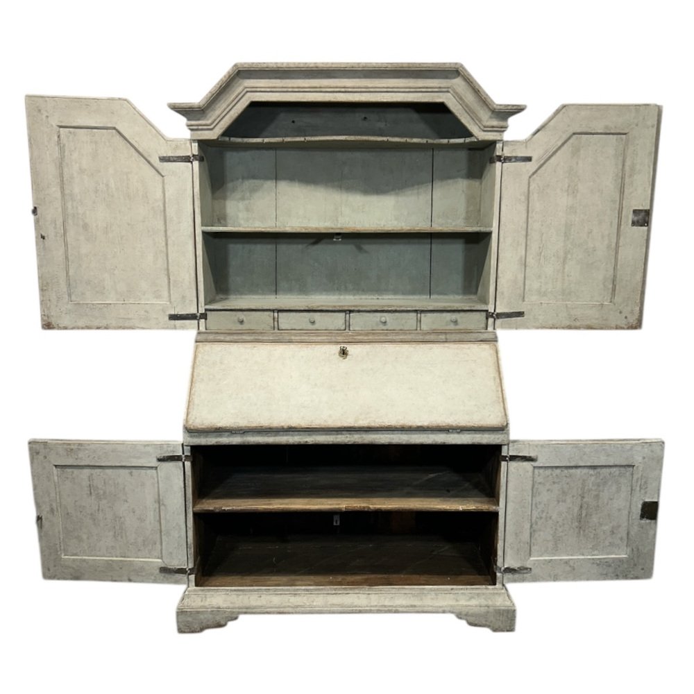 La parte inferior es un escritorio. En su interior hay ocho cajones pequeños y un compartimento de almacenamiento. Los cajones tienen pomos de latón. La parte inferior tiene puertas dobles como las del aparador. Todas las bisagras, guías de puertas y cerraduras (excepto la mencionada) son originales. Todas las cerraduras funcionan y se suministran con tres llaves. Patas estables y robustas.