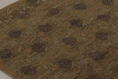 Made with hand-knotted wool, this 9x12 rug design is an exciting new representation of the Block Print Collection by Rug&Kilim—a sophisticated and elegant new approach to a historic style. On the Design: A brown and green toned field underscores gray and brown floral motif patterns in the all over style, and keen eyes will note the oxidised texture—an element of dimensionality that lends a gorgeous compliment to the sense of movement and depth. The monochromatic palette demonstrates sophisticated understanding of tonal relationships—graduated brown, warm taupe, and dark gray create atmospheric depth through value shifts rather than color contrast. The block printing process is one of the oldest in textile design and has seen many adaptations. To wit, our designs draw on time-honored, even archaic designs, such as 17th-century Mogul rug patterns that allow admirers of the craft to recreate old-world charm within any space.