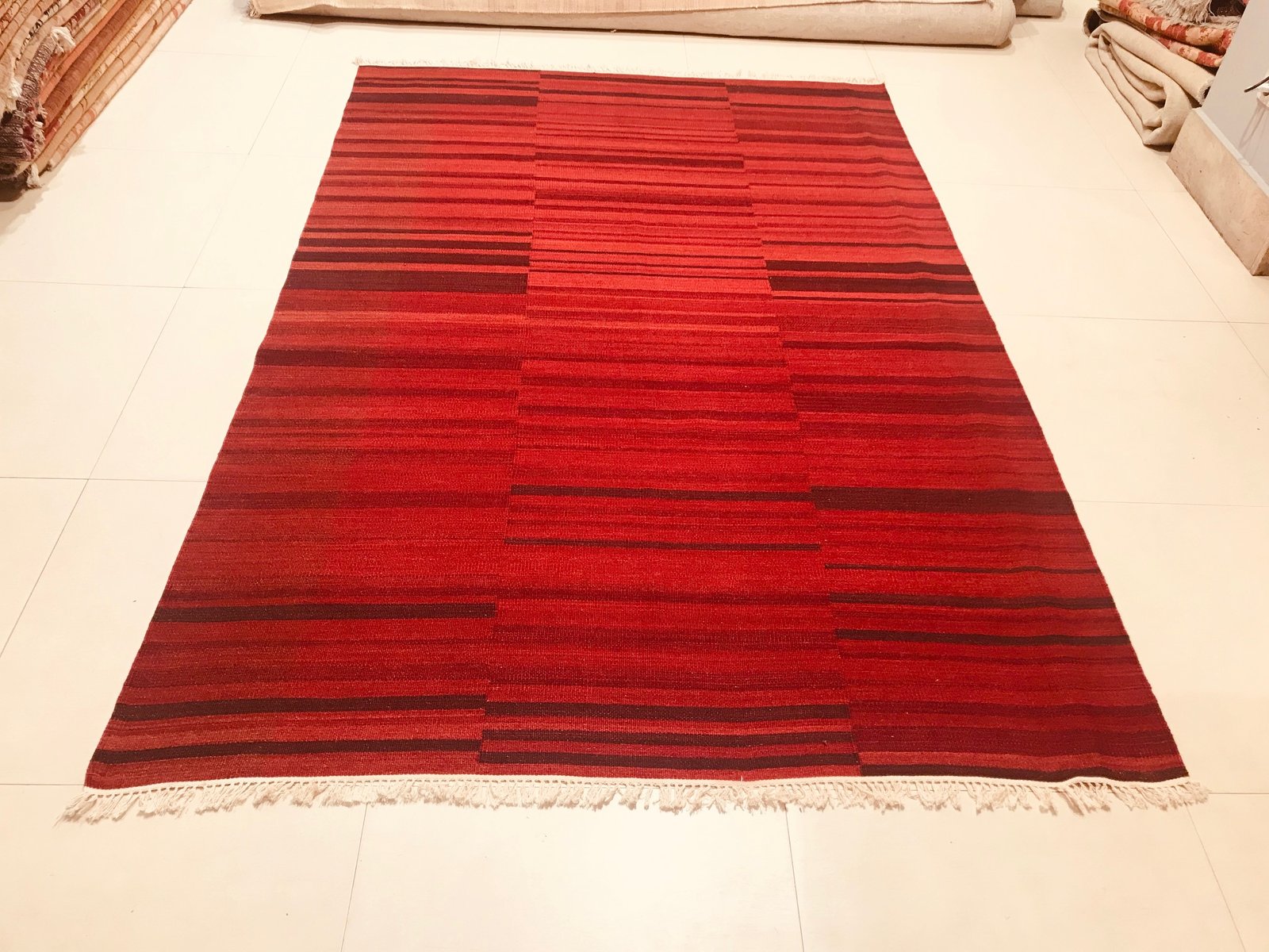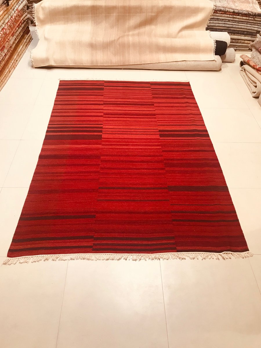 Alfombra Kilim india vintage de algodón y lana, años 70
