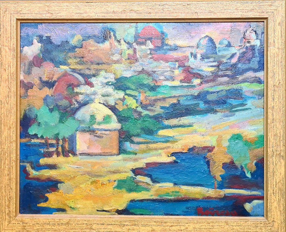Paisaje argelino de mediados de siglo pintado al óleo sobre tabla por el artista francoargelino André Boureau, alumno de Othon Freize. El cuadro está firmado abajo a la derecha y se presenta en un marco de madera patinada a medida.