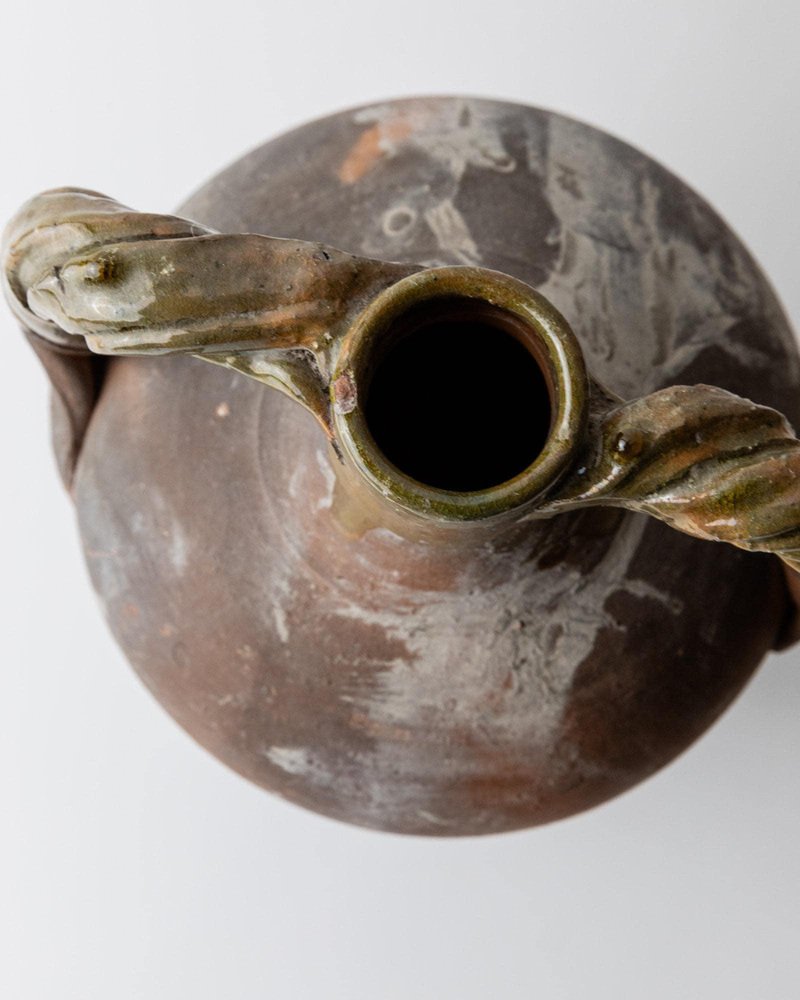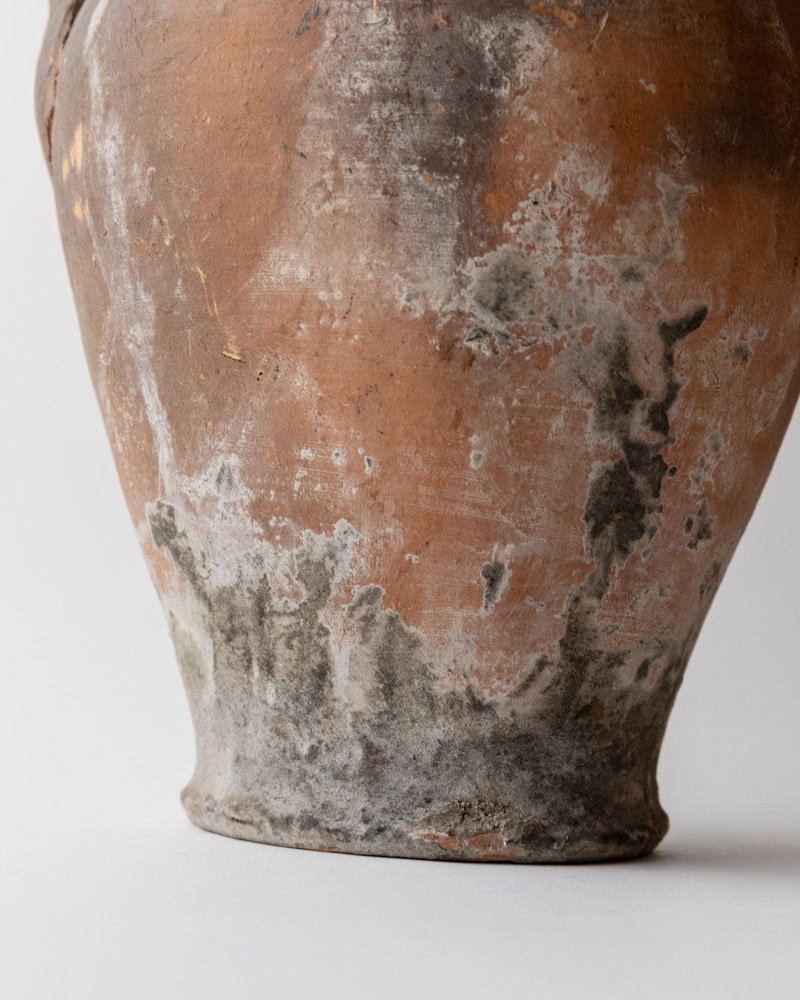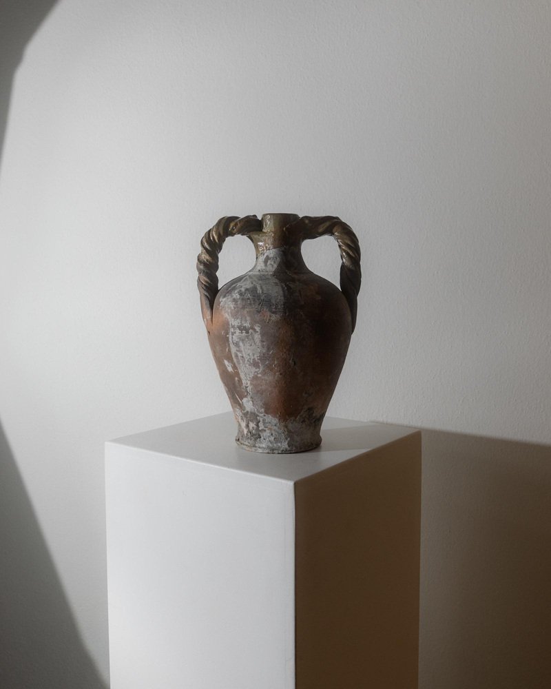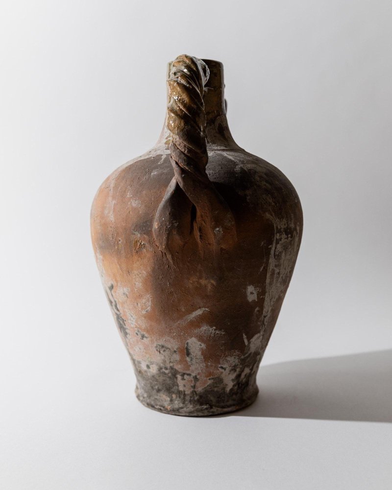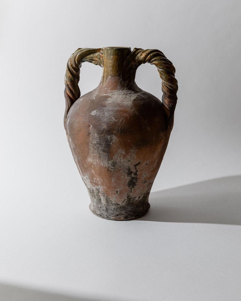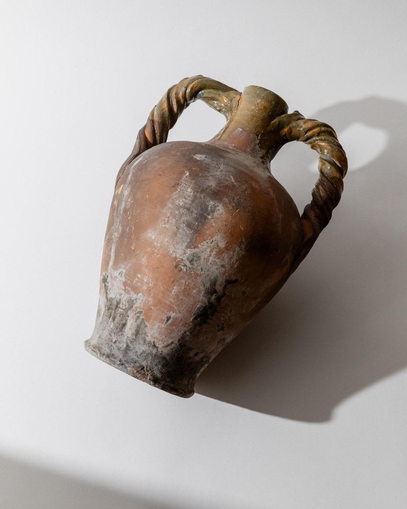 Ánfora italiana antigua de terracota con asas retorcidas, siglo XVIII