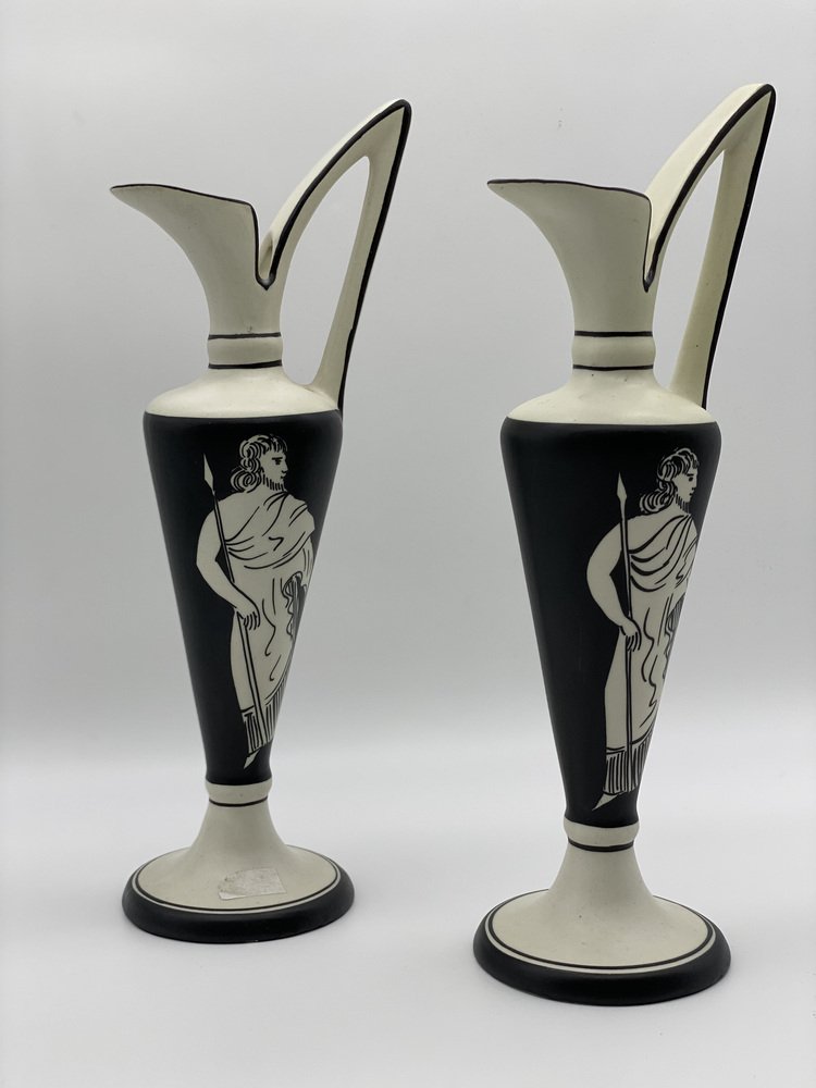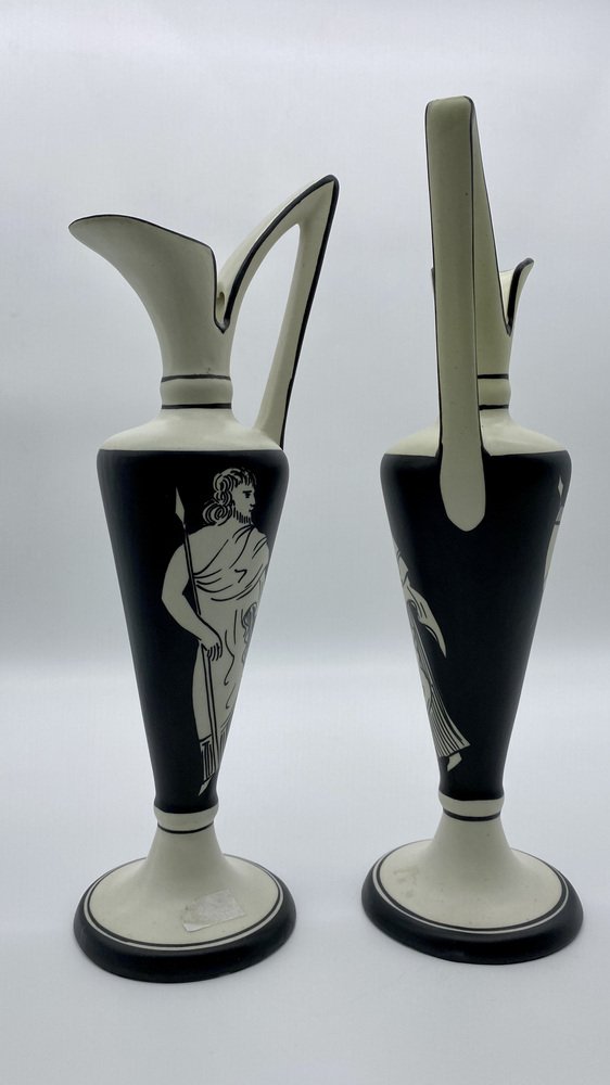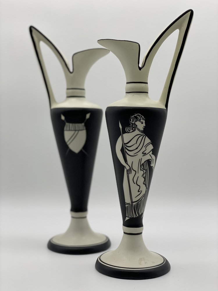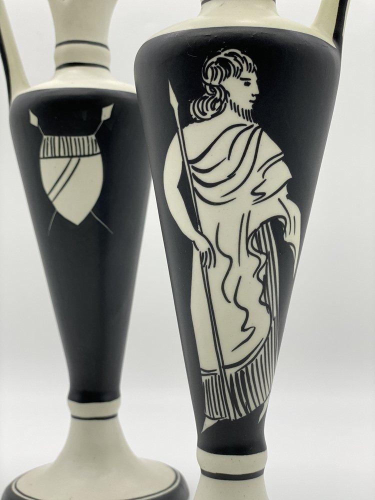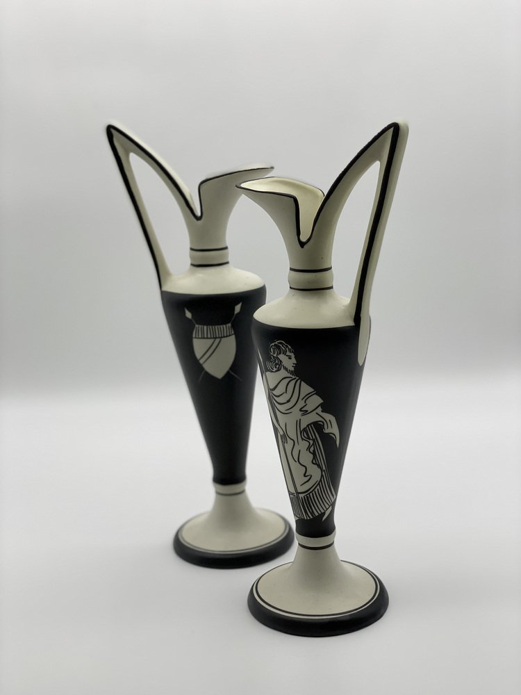 Ánforas italianas Art Déco en blanco y negro. Juego de 2