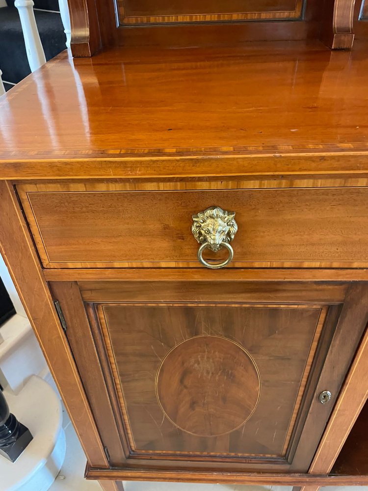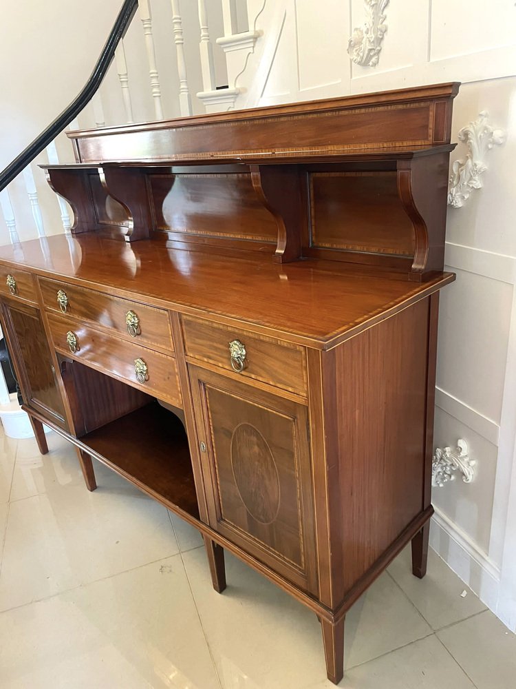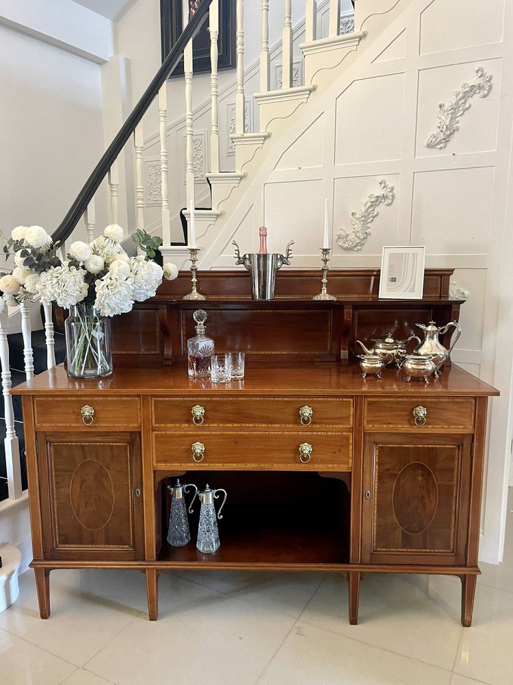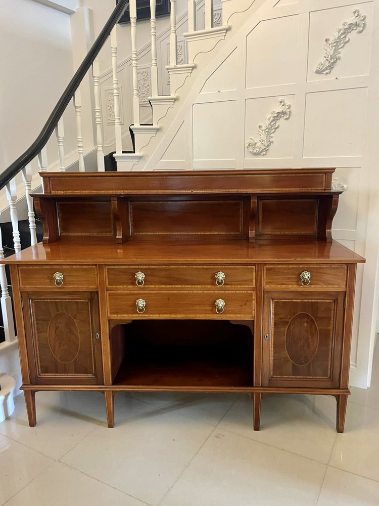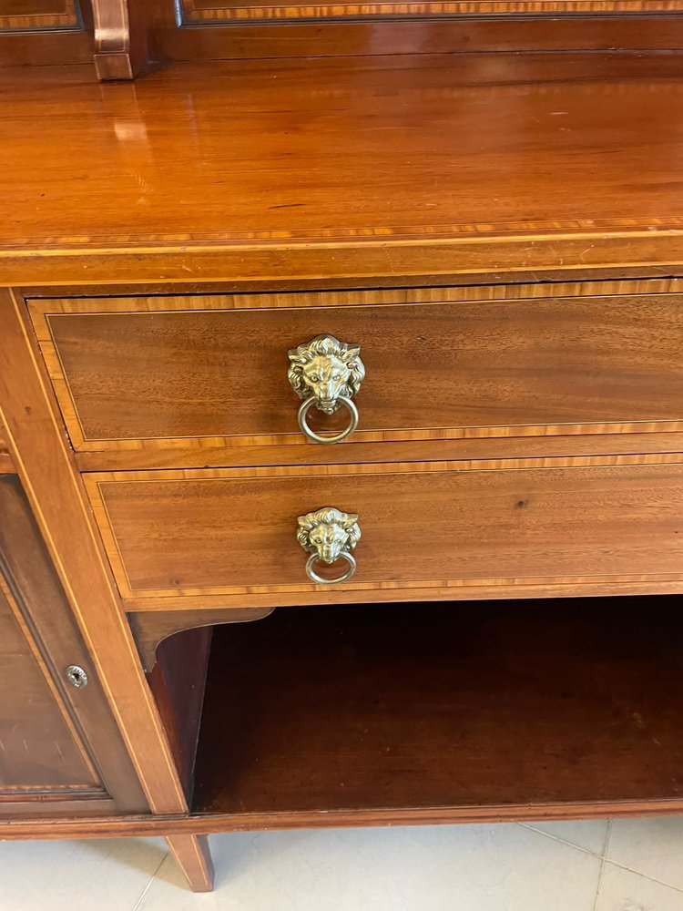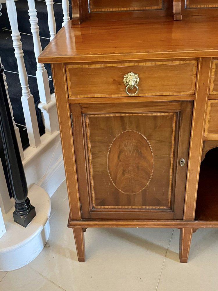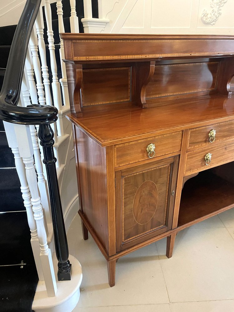 Aparador eduardiano antiguo grande de caoba con incrustaciones, década de 1900