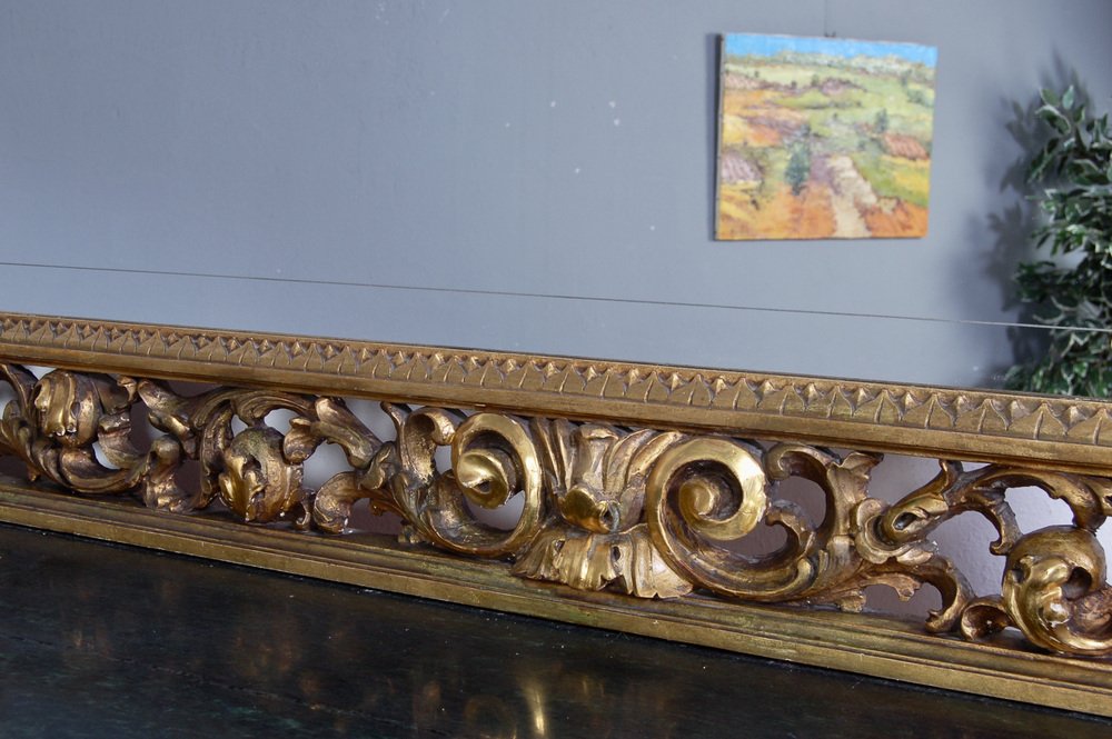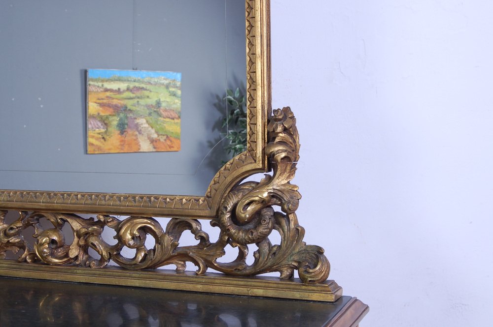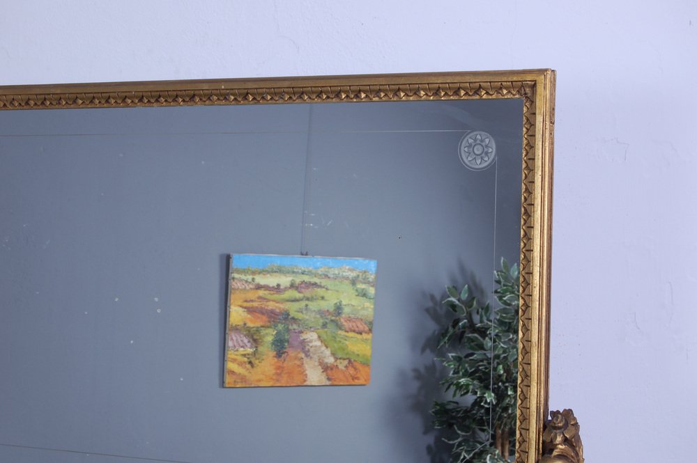 The furniture is completed by a large mirror embellished with an important golden frame. At the edges of the mirror there is a subtle decorative Greek.
