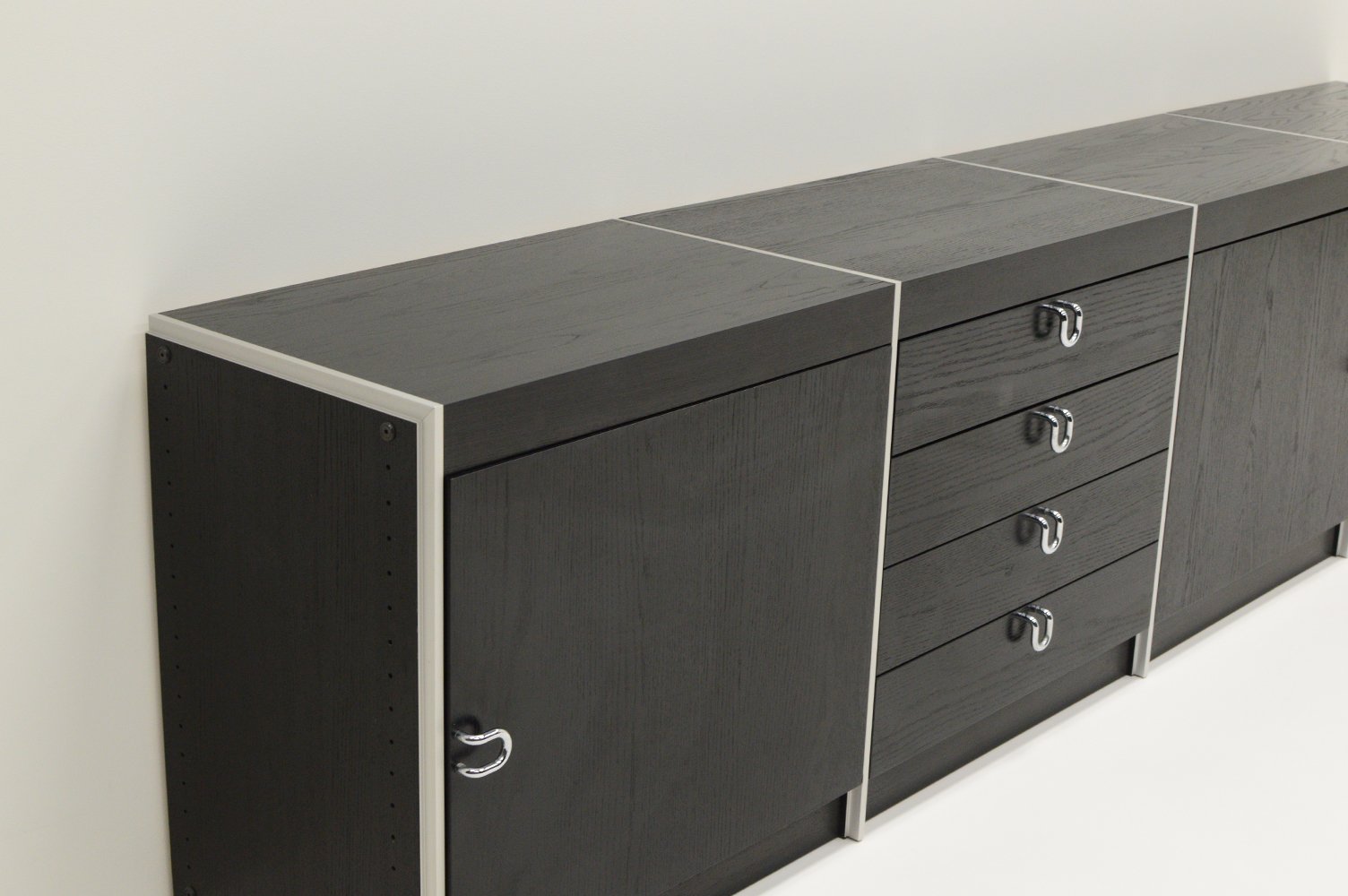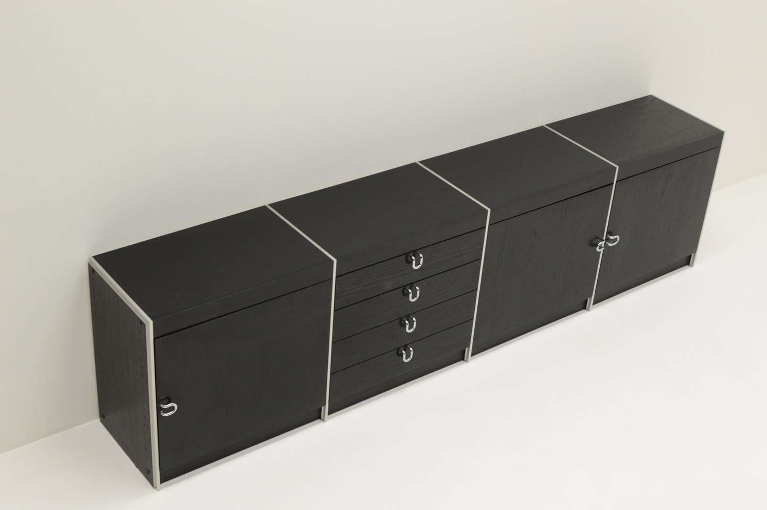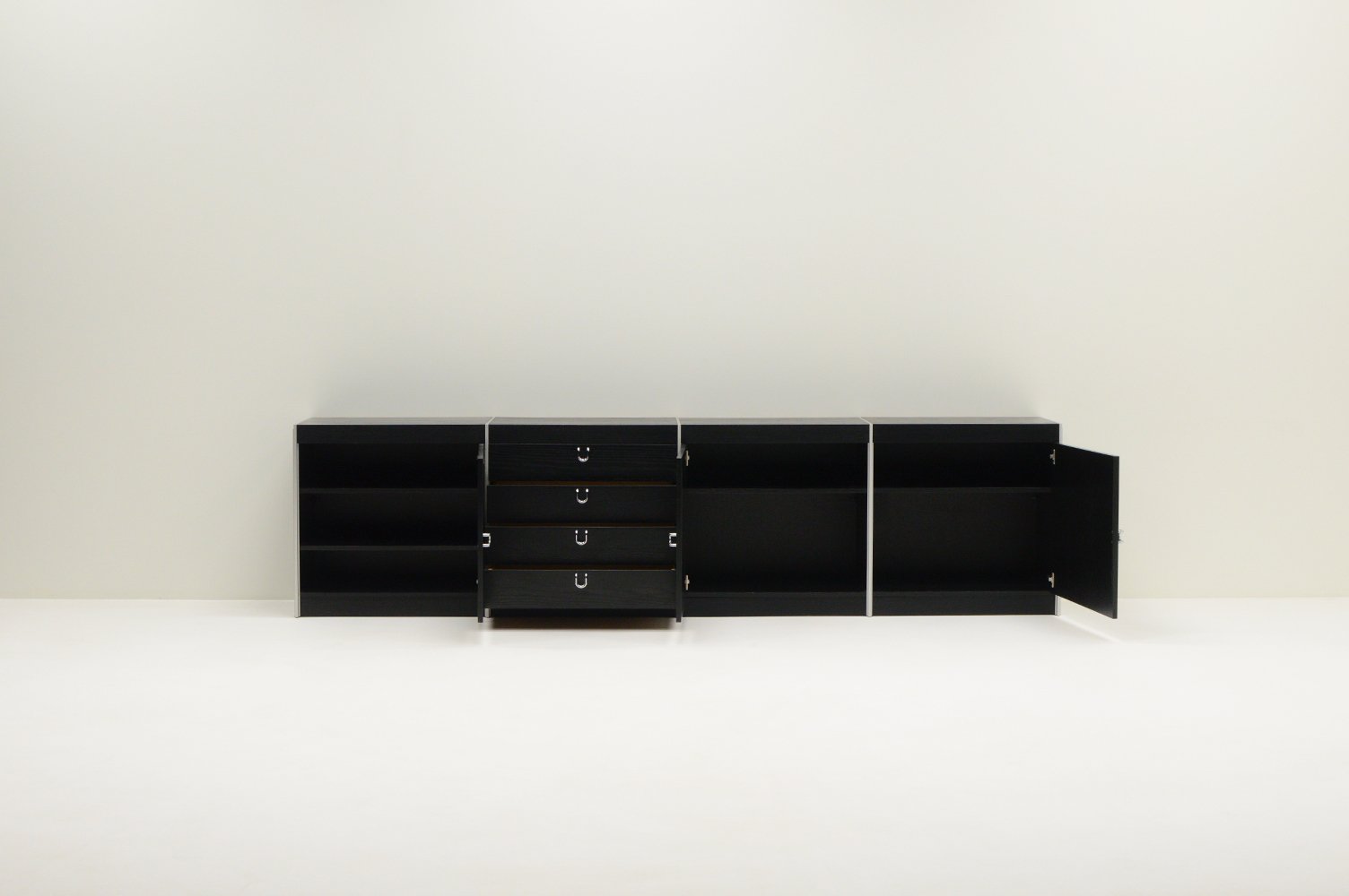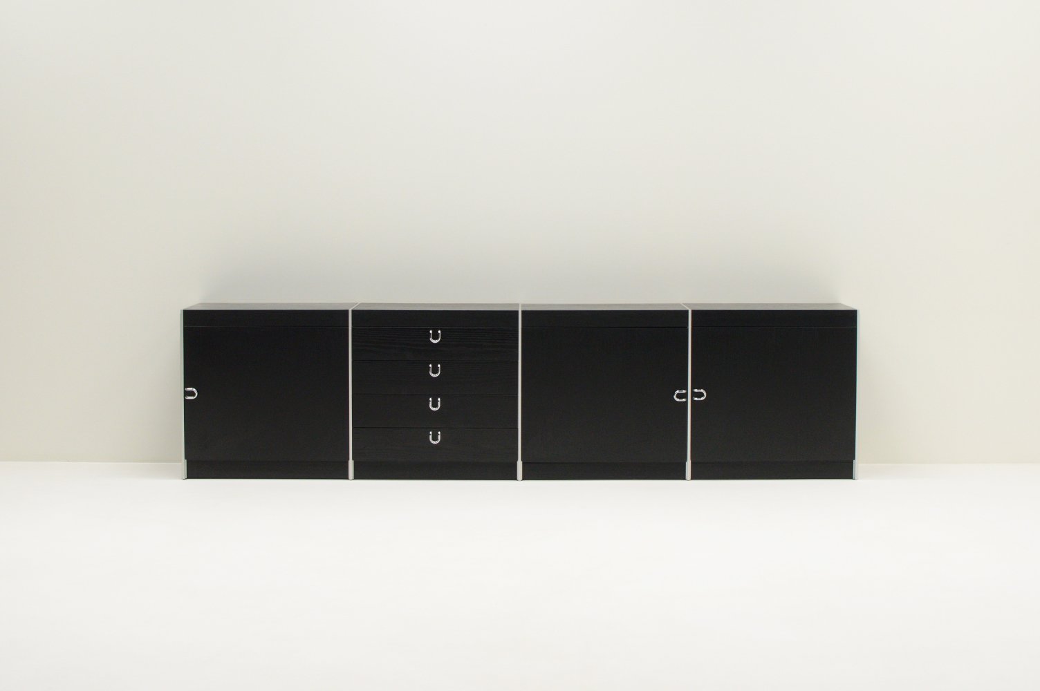 Aparador grande en negro y aluminio atribuido a Interlübke, Alemania, años 80