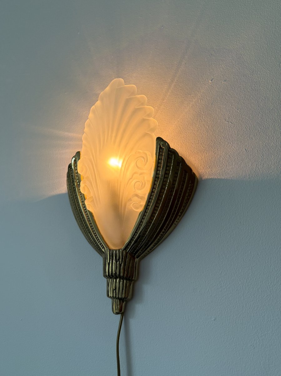 Aporte una elegancia atemporal a su hogar con este aplique Art Déco vintage.