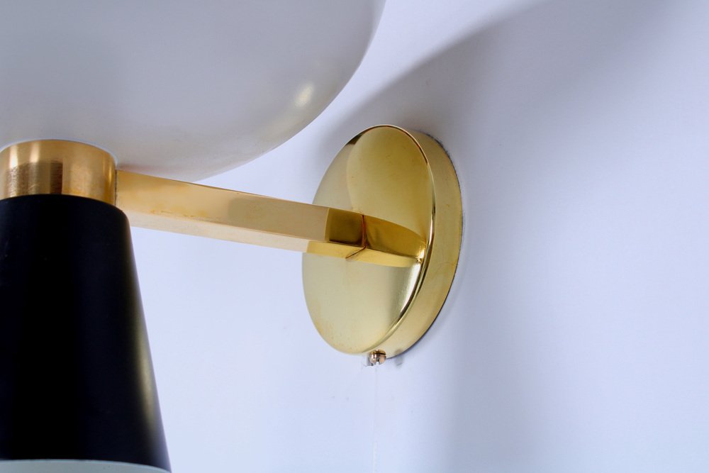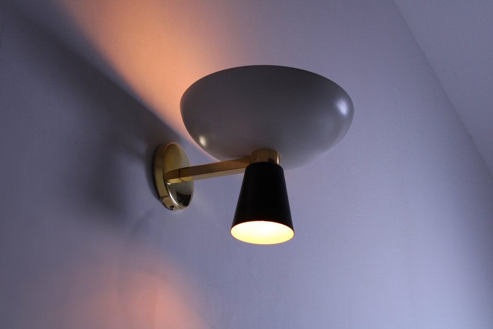 Aplique de pared Diabolo en blanco y negro de Stilnovo, años 50