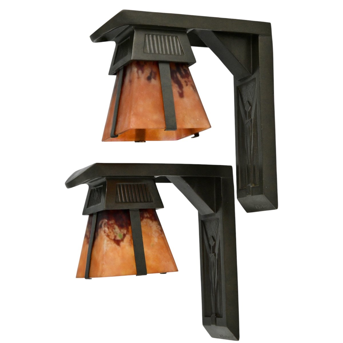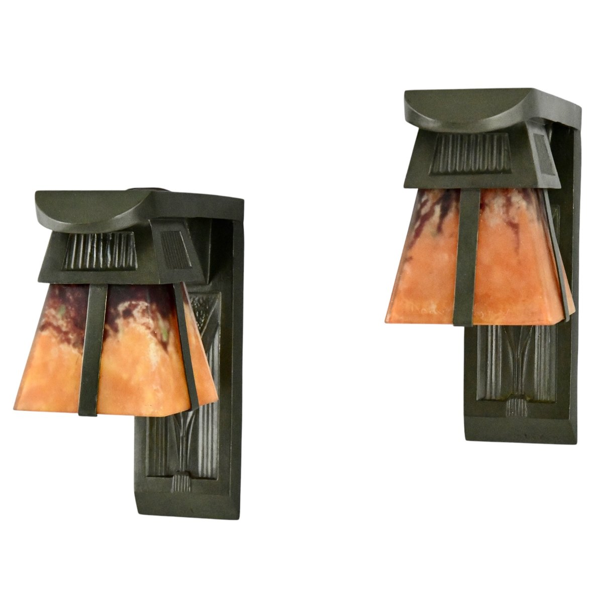 Apliques Art Déco con pájaros estilizados de Max Le Verrier, años 30. Juego de 2