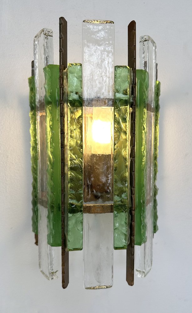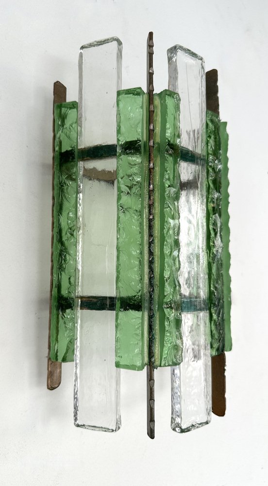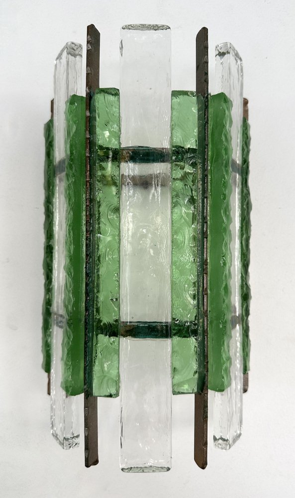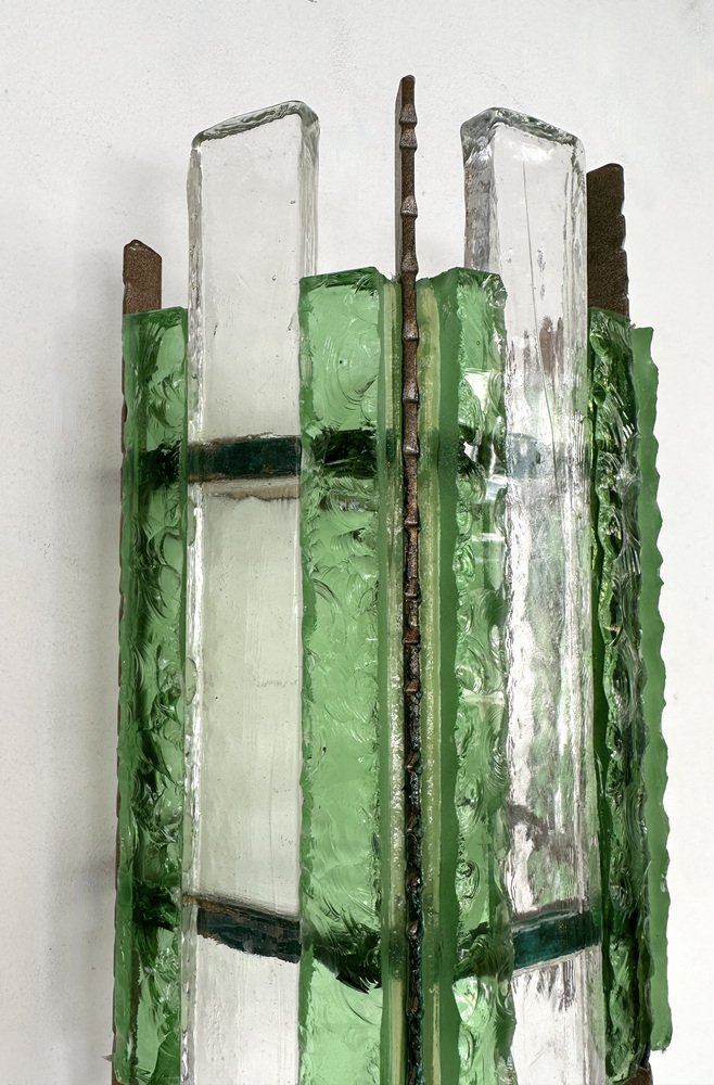 Apliques de vidrio martillado y hierro forjado de Longobard, Italia, años 70. Juego de 2