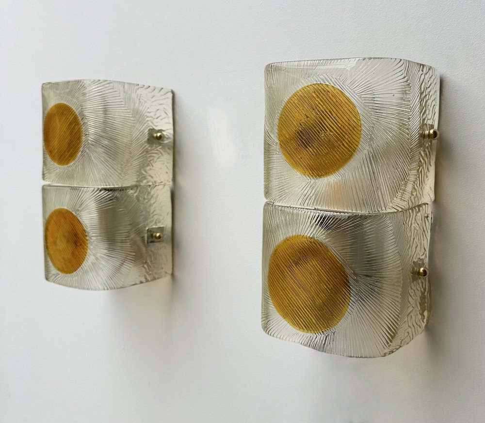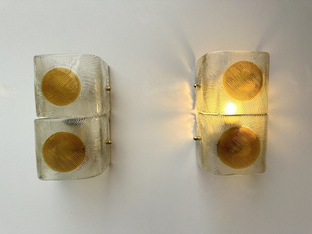 Apliques italianos de cristal de Murano de Mazzega, años 70. Juego de 2