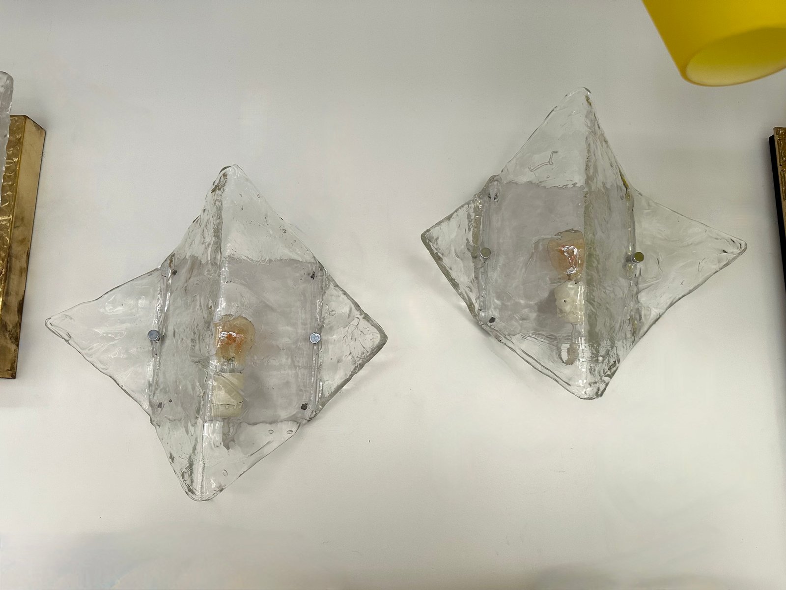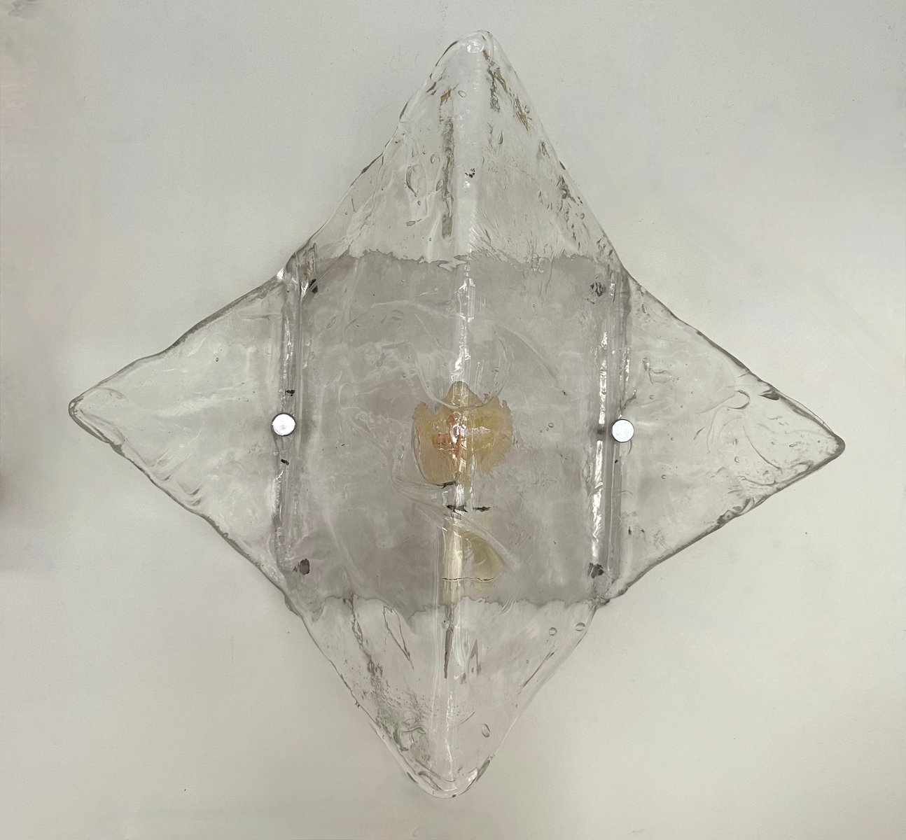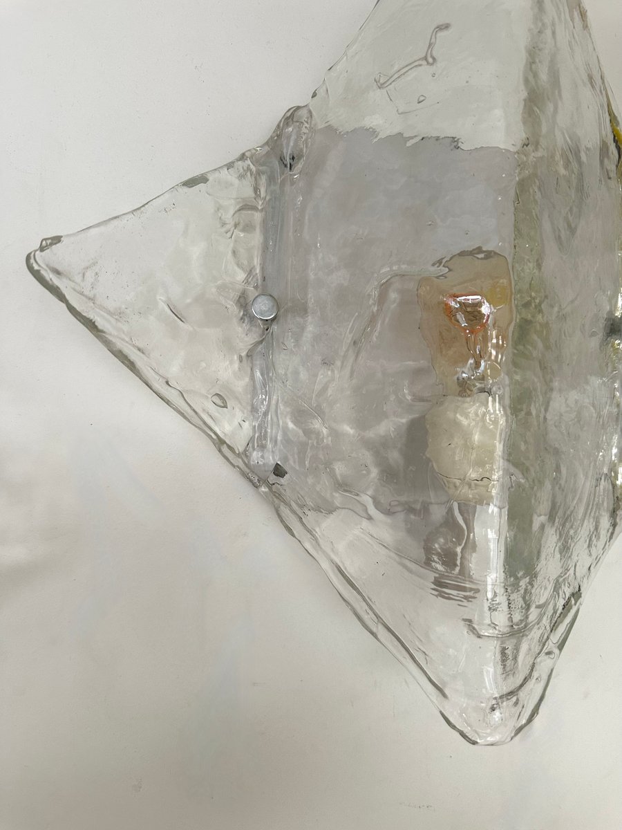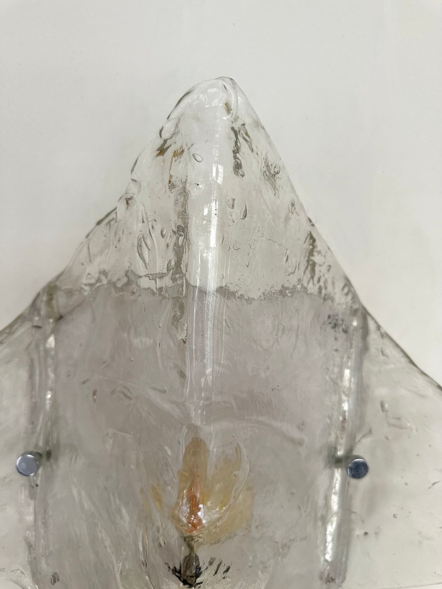 Mid-Century Modern Space Age pair of wall lights lamps sconces model LP253 in clear textured murano glass and white lacquered metal by Carlo Nason for the manufacture Mazzega. Famous Italian design like Venini, Vistosi, La Murrina, Aldo Nason, Stilnovo, Joe Colombo, Arteluce, Arredoluce, Lumi, Luci, Rggiani, Sciolari, Werner Pantone, Luigi Colani, Raak, Angelo Lelii, Angelo Brotto, Esperia, Francesco Bocola, Superstudio, Enrico Tronconi, Mario Bellini, Harvey Guzzini, Luigi Massoni, Martinelli, Pierre Cardin, Fabio Lenci, Gio Ponti.