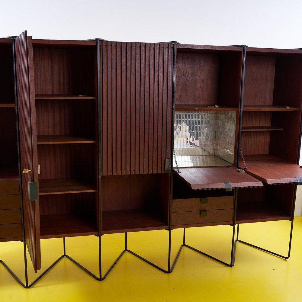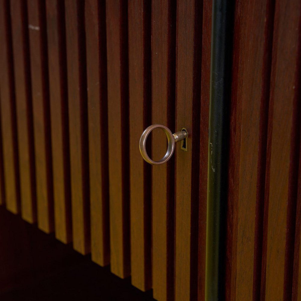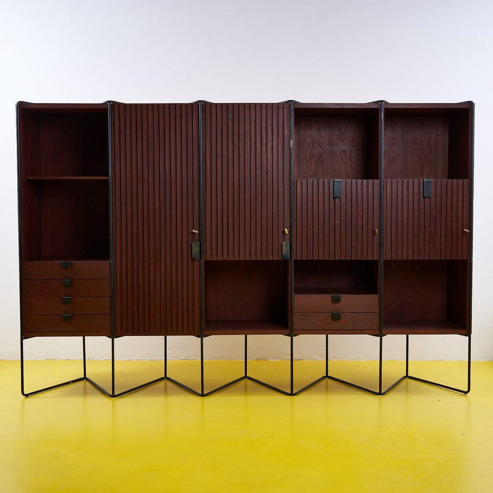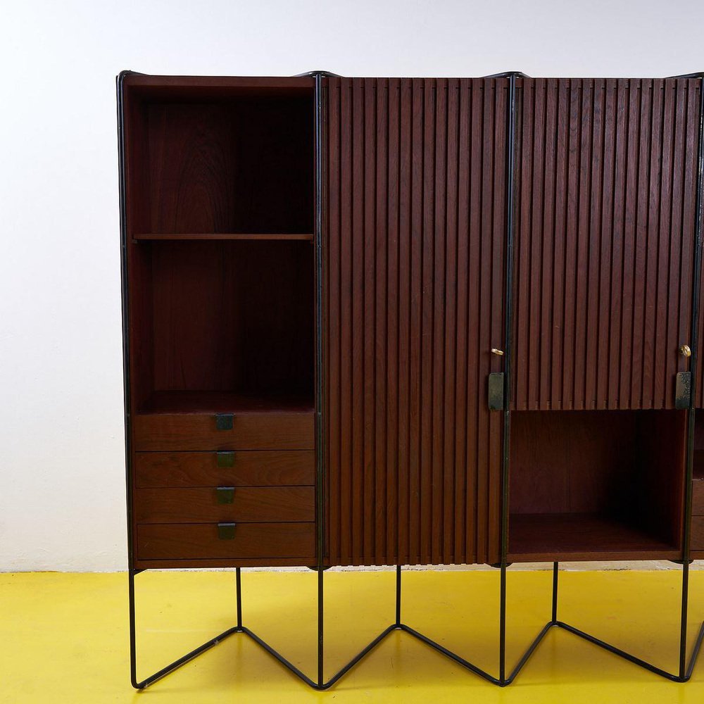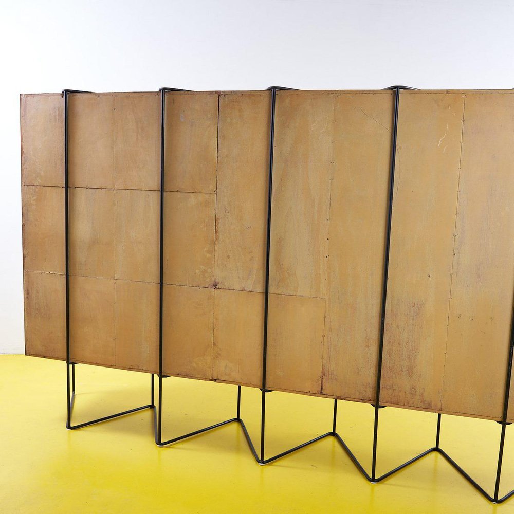 Rare version: features liquor holder with mosaic mirrors. - Taichiro Nakai is an incredibly talented Japanese designer, best known for his participation in the Selectiva del Mobili di Cantù competition. During the 20th century, Cantù was considered the Italian city of furniture. However, after the war, Cantù failed to catch up with the rapid changes and advancements and there were other foreign countries such as Scandinavia which, with their own styles, grew in popularity and formed massive competition for Cantù. For this reason, Cantù needed to renew its often obsolete designs to keep up with trends and gain new popularity. In the spring of 1954, Cantù's board of directors decided to launch an international competition for furniture designers that would revive the local design economy and draw attention to Cantù. The "Selectiva del Mobile" was born, which would be organized every two years until 1975. Height: 166 Width: 256 Depth: 42 Location: Item can be viewed without obligation to purchase by appointment in Ferrara.