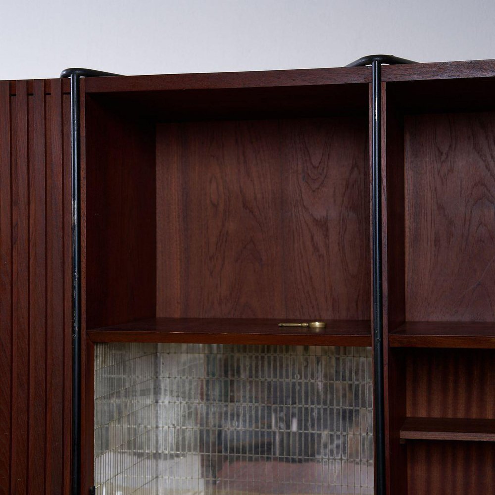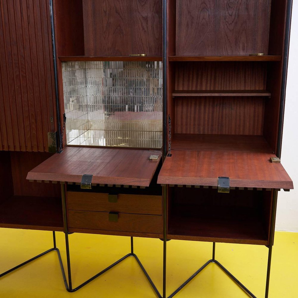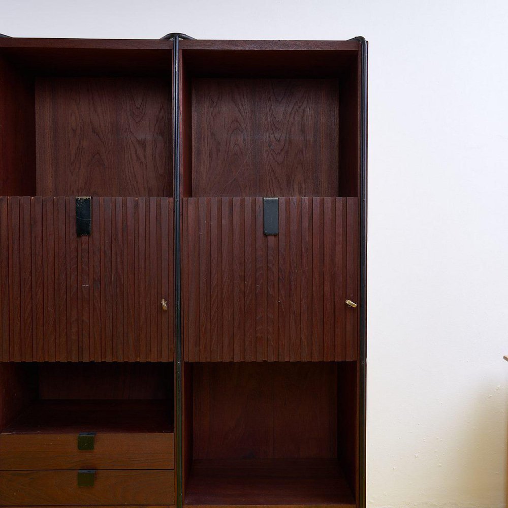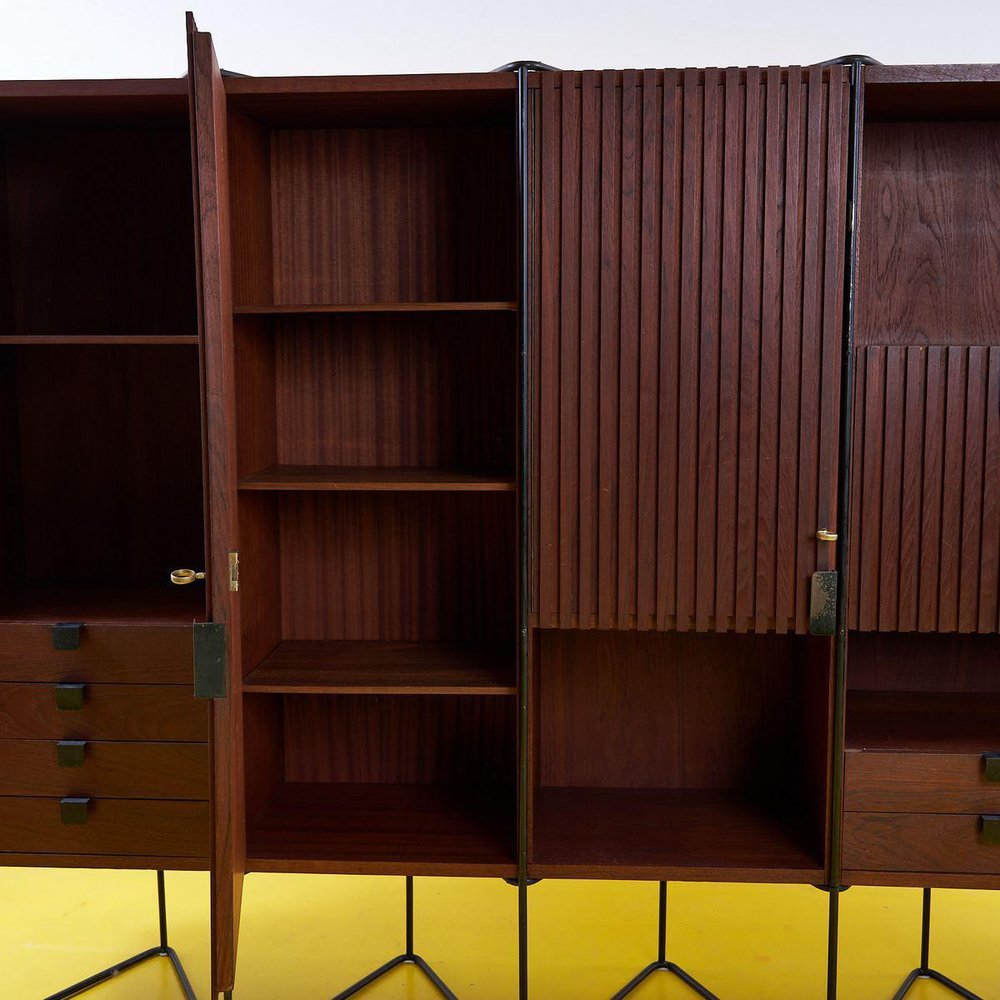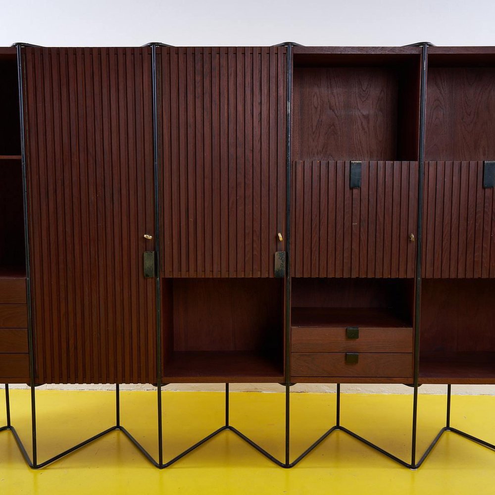 Rare version: features liquor holder with mosaic mirrors. - Taichiro Nakai is an incredibly talented Japanese designer, best known for his participation in the Selectiva del Mobili di Cantù competition. During the 20th century, Cantù was considered the Italian city of furniture. However, after the war, Cantù failed to catch up with the rapid changes and advancements and there were other foreign countries such as Scandinavia which, with their own styles, grew in popularity and formed massive competition for Cantù. For this reason, Cantù needed to renew its often obsolete designs to keep up with trends and gain new popularity. In the spring of 1954, Cantù's board of directors decided to launch an international competition for furniture designers that would revive the local design economy and draw attention to Cantù. The "Selectiva del Mobile" was born, which would be organized every two years until 1975. Height: 166 Width: 256 Depth: 42 Location: Item can be viewed without obligation to purchase by appointment in Ferrara.