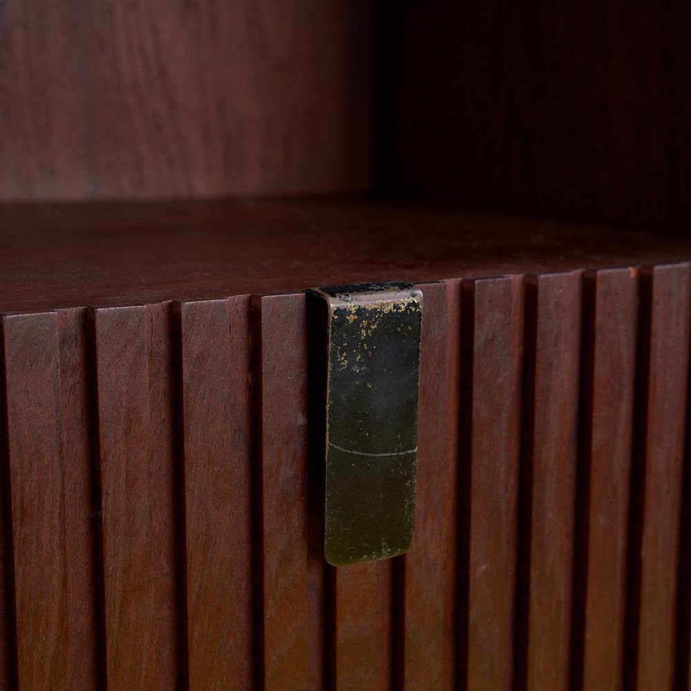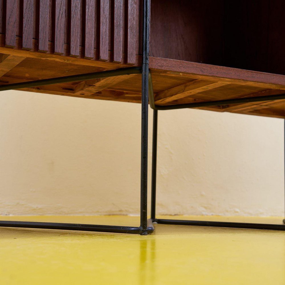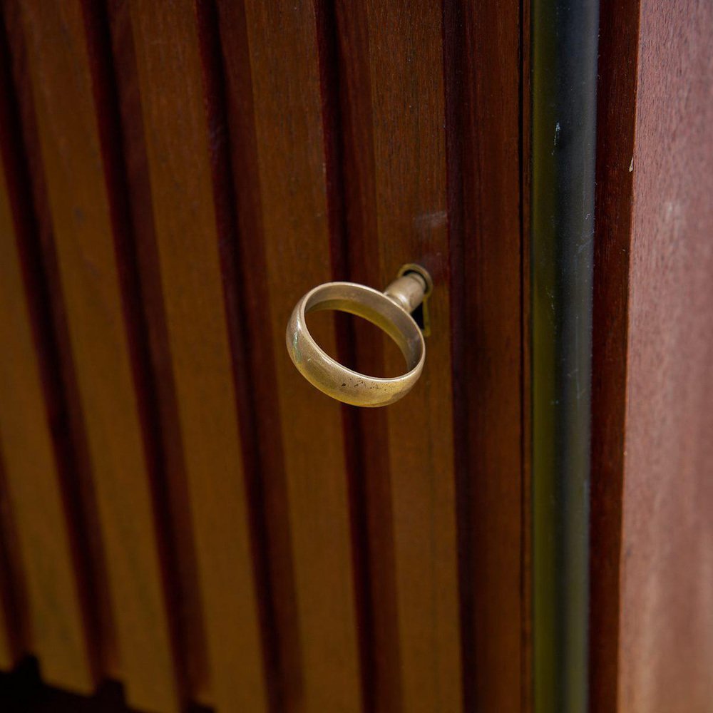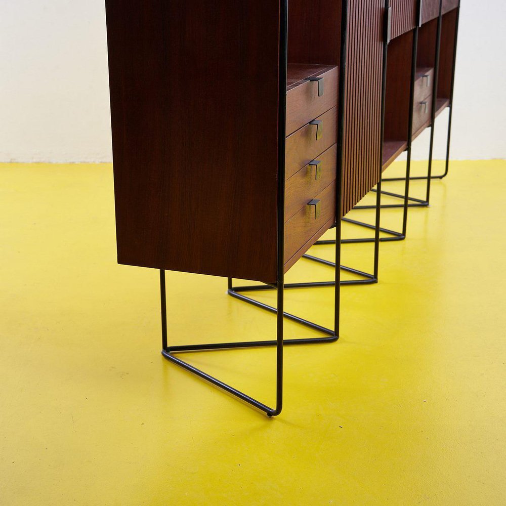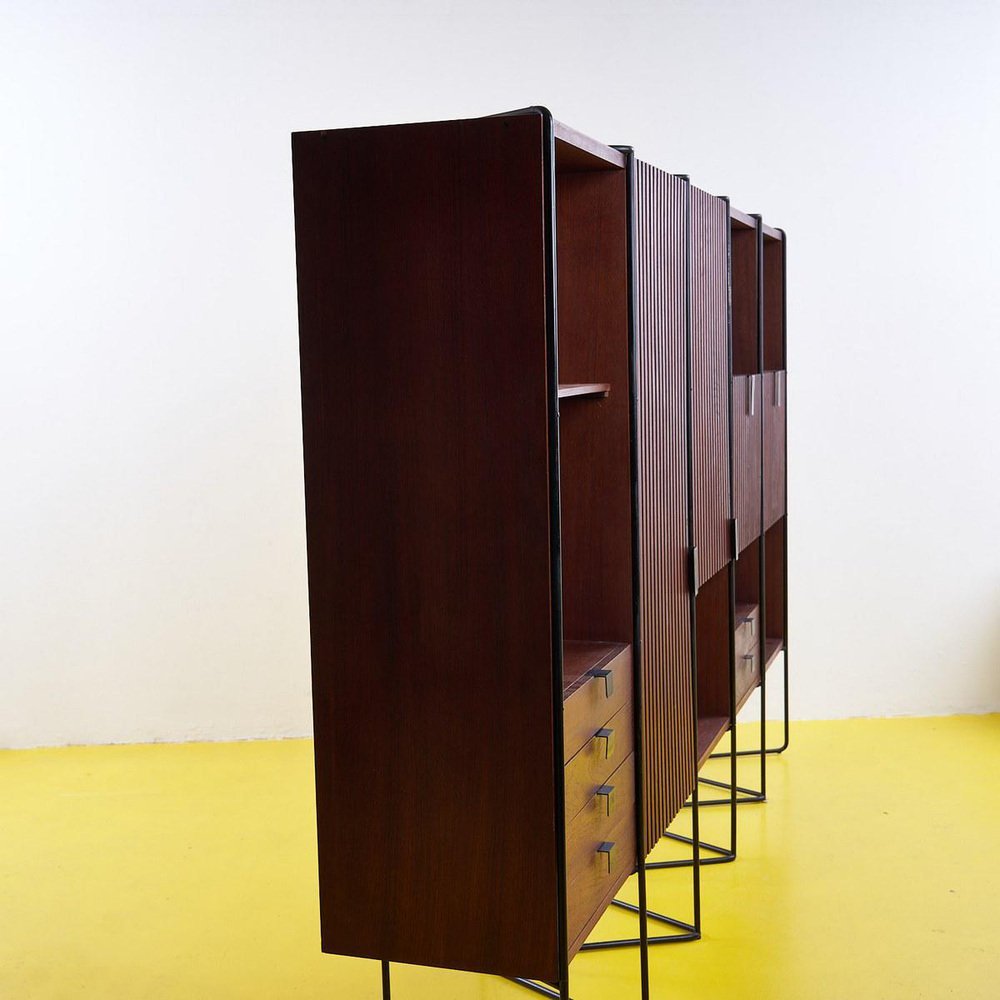 Rare version: features liquor holder with mosaic mirrors. - Taichiro Nakai is an incredibly talented Japanese designer, best known for his participation in the Selectiva del Mobili di Cantù competition. During the 20th century, Cantù was considered the Italian city of furniture. However, after the war, Cantù failed to catch up with the rapid changes and advancements and there were other foreign countries such as Scandinavia which, with their own styles, grew in popularity and formed massive competition for Cantù. For this reason, Cantù needed to renew its often obsolete designs to keep up with trends and gain new popularity. In the spring of 1954, Cantù's board of directors decided to launch an international competition for furniture designers that would revive the local design economy and draw attention to Cantù. The "Selectiva del Mobile" was born, which would be organized every two years until 1975. Height: 166 Width: 256 Depth: 42 Location: Item can be viewed without obligation to purchase by appointment in Ferrara.