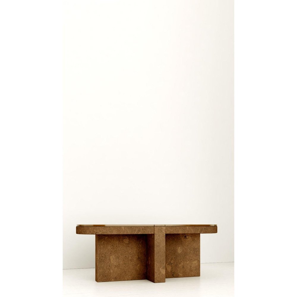 Object 06 Brown Seating by Volta One Of A Kind. Dimensions: D 80 x W 200 x H 75 cm. Materials: Cork and ceramic. Also available in diffentent colors. Please contact us. MEÏ COLLECTION The Meï collection was born from the desire to highlight the cork material. A material known for its common and popular use, cork deserves special attention in terms of its aesthetic, constructive and ecological properties. Starting from cork, the volta agency has developed with the Trizzano workshops several methods of compression to recycl this material. The patterns that were created then revealed all the subtlety of this material. To sublimate it even more, several colorimetric shades have been developed. The cork is thus bathed and colored, giving it a whole new image. The agency Volta practices in the fields of architecture and interior design. Created in 2016 by Agathe Lavaud, she articulates her work around attention to detail and a tandem between contemporaneity and tradition. The agency considers each project as unique. She begins a personalized search for each, both in terms of volumes and material, guided by the existing context.