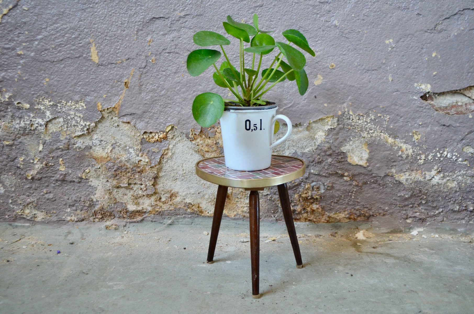 Bandeja para plantas vintage de mosaico, años 60