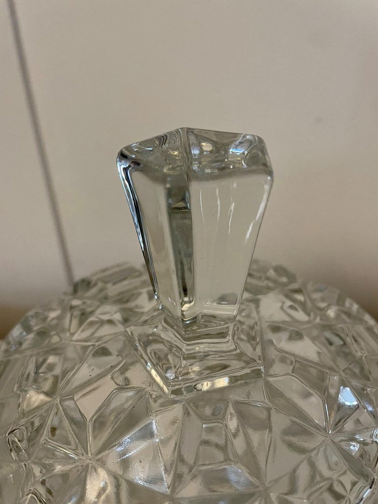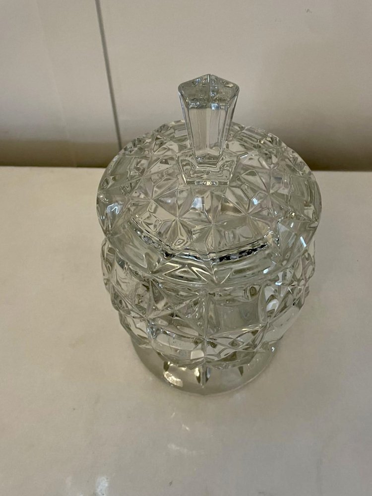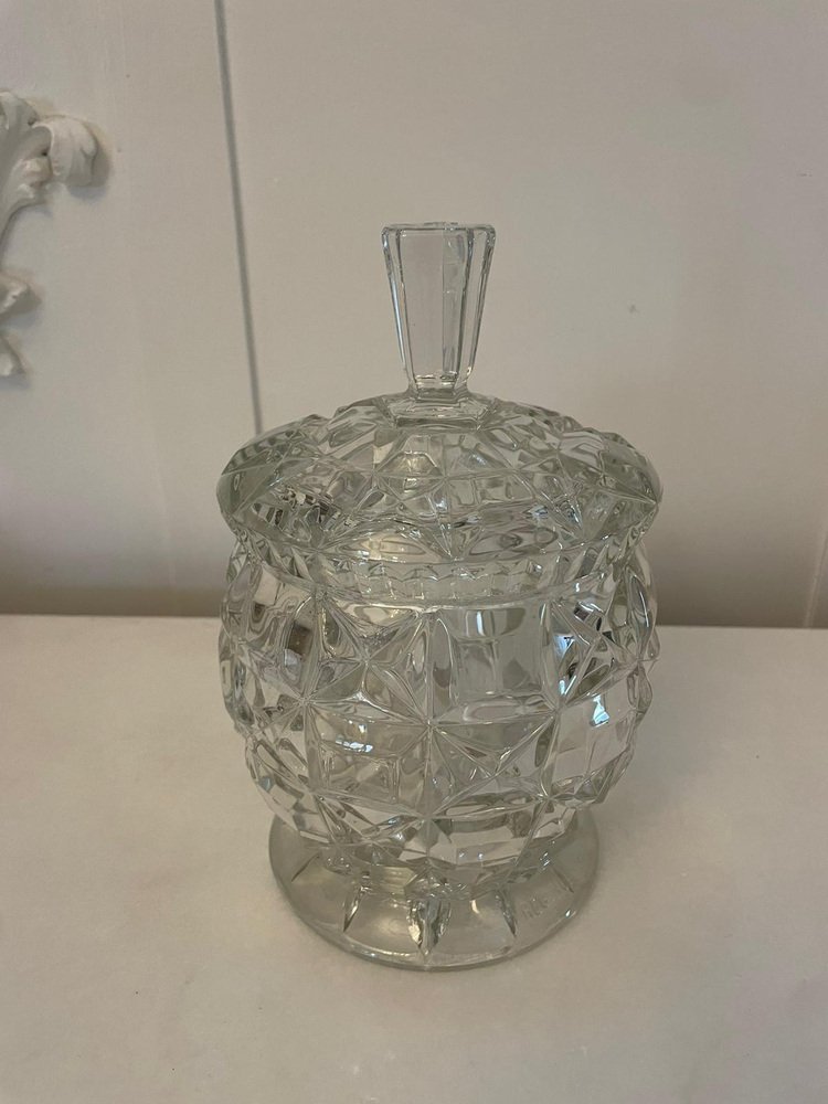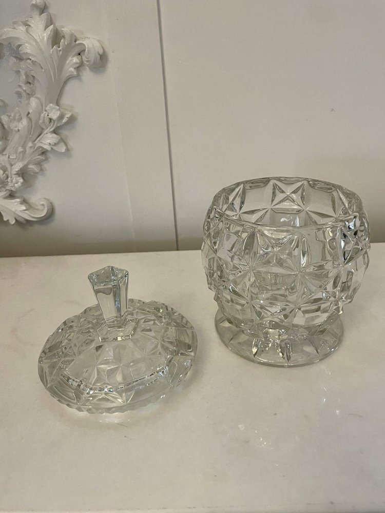 Barril de galletas eduardiano antiguo de vidrio tallado, década de 1900