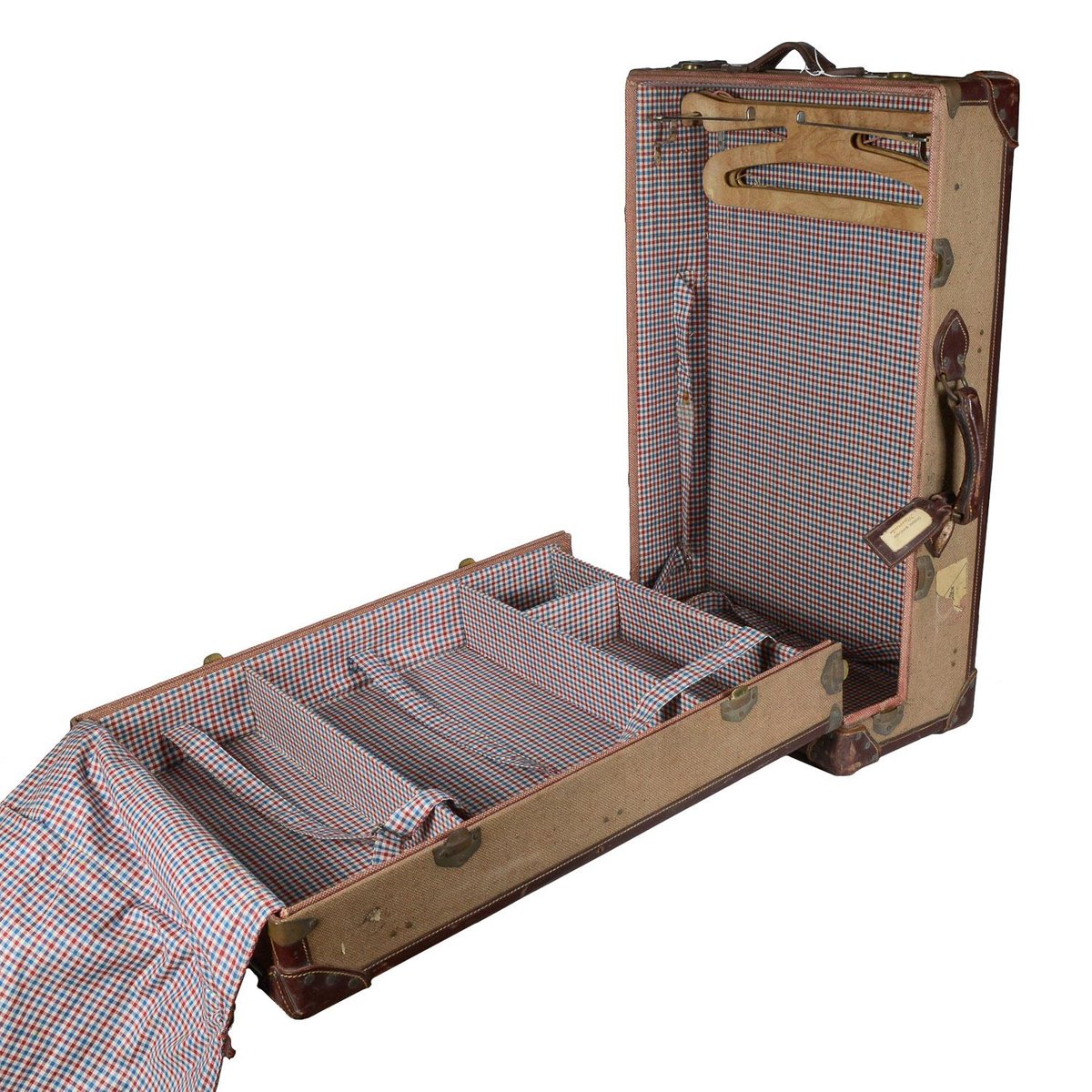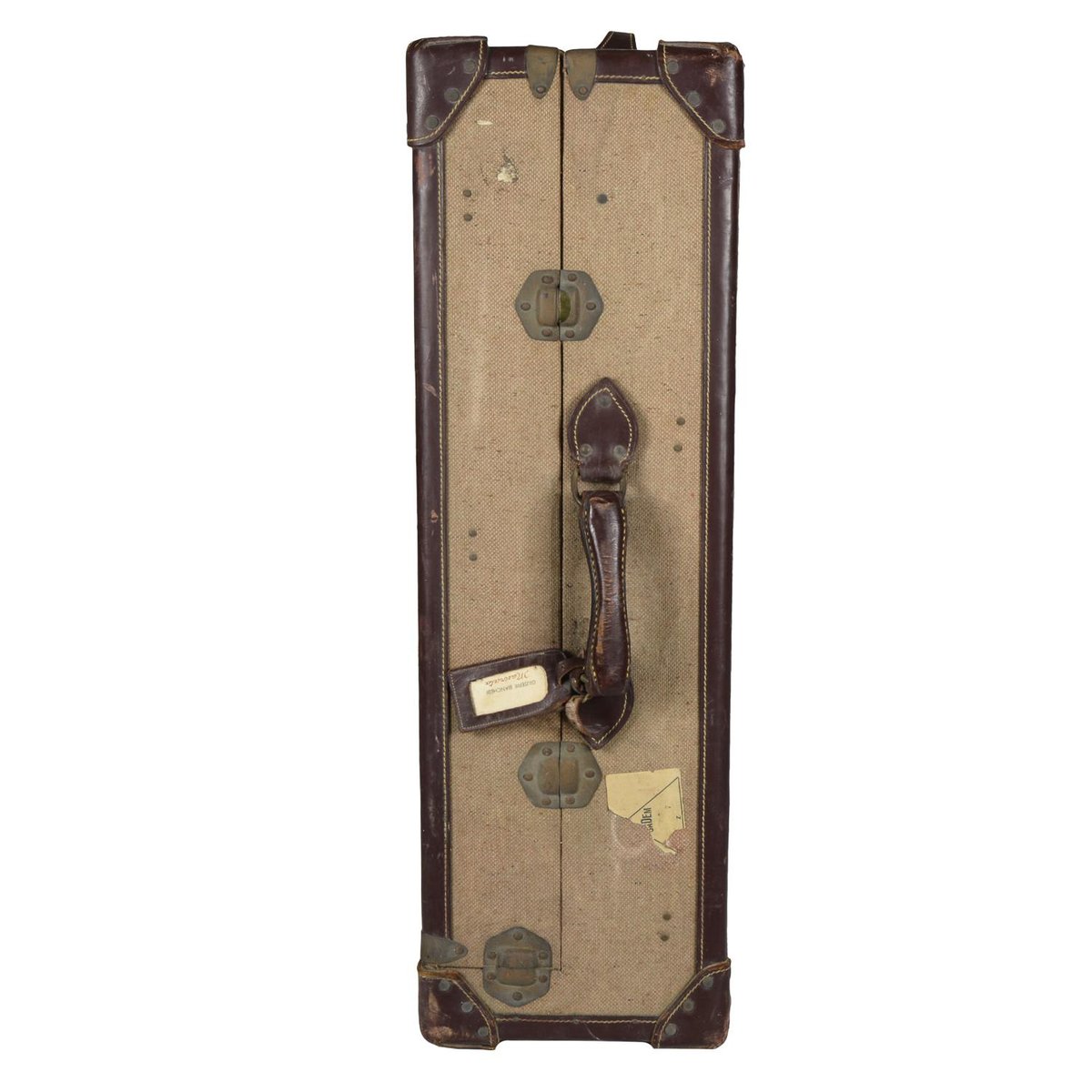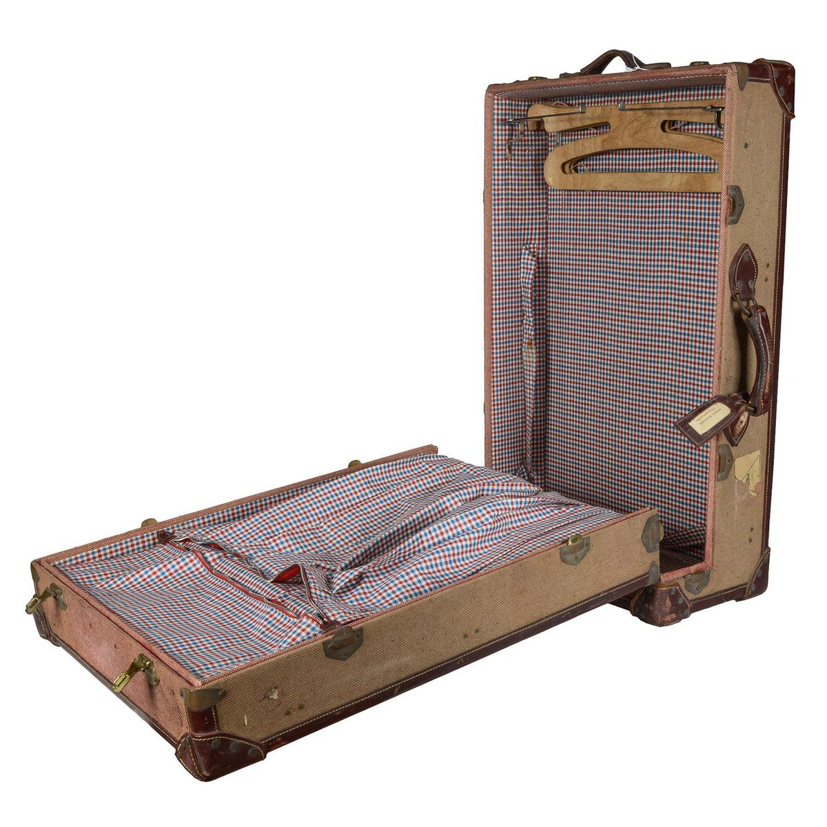 Baúl de viaje vintage de tela y cuero, 1945