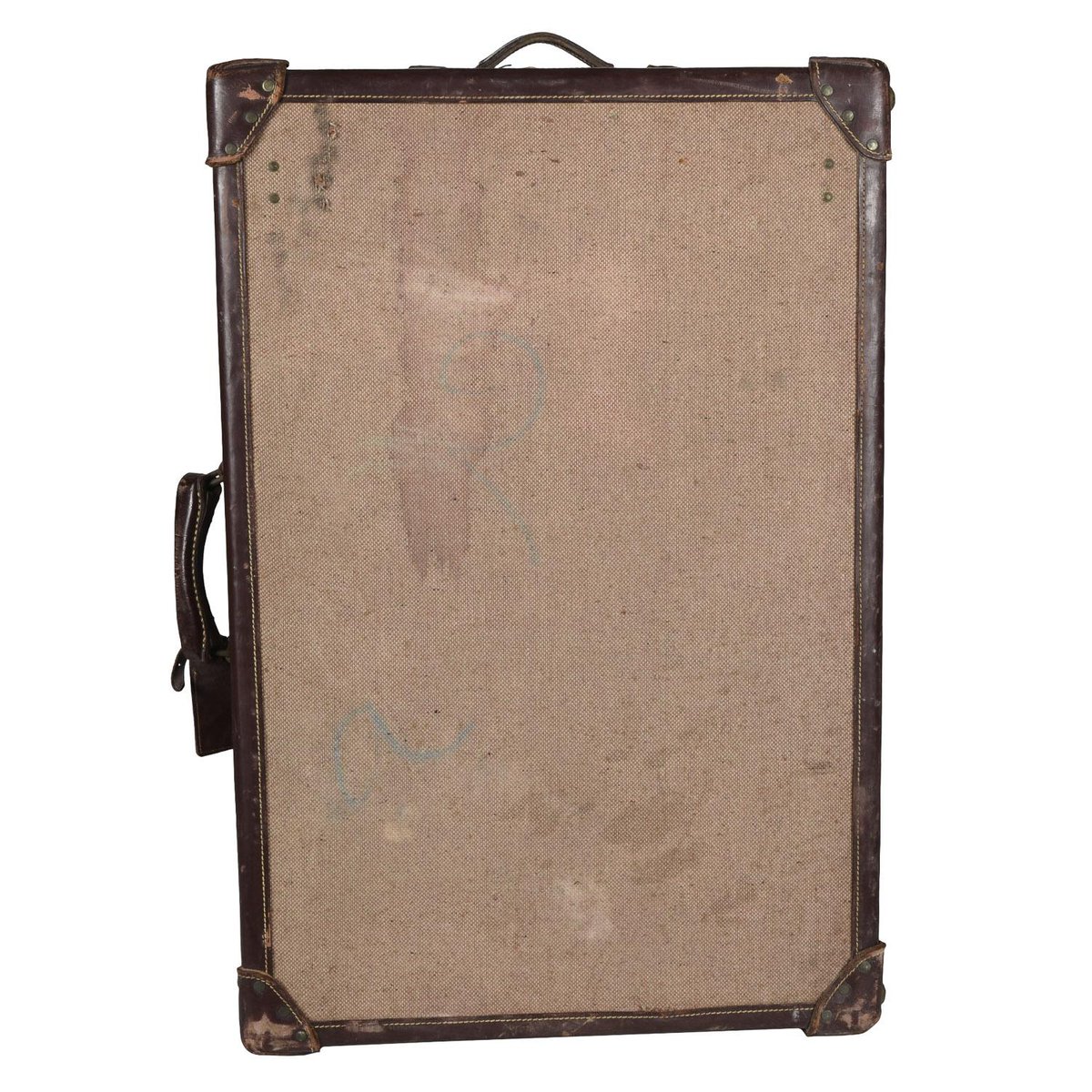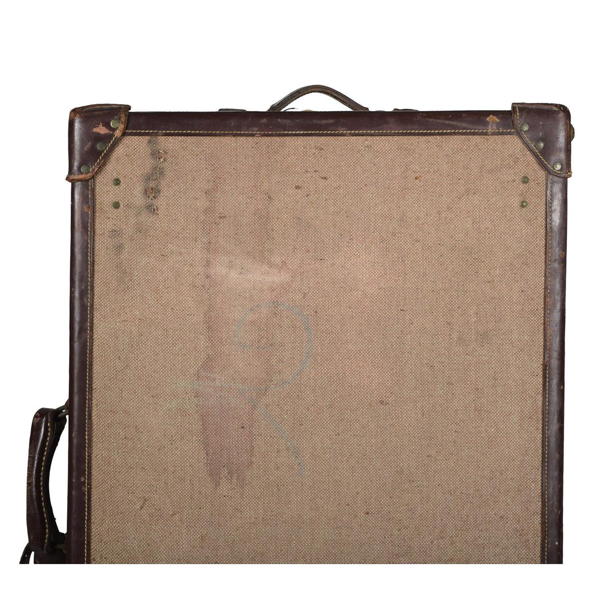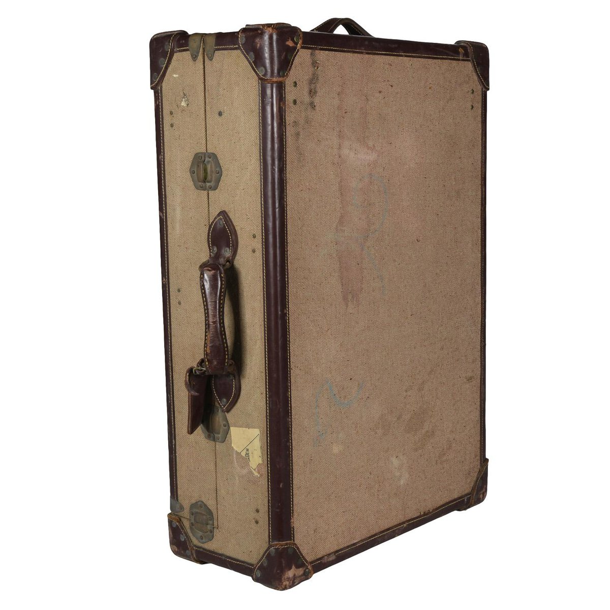 Baúl de viaje vintage de tela y cuero, 1945