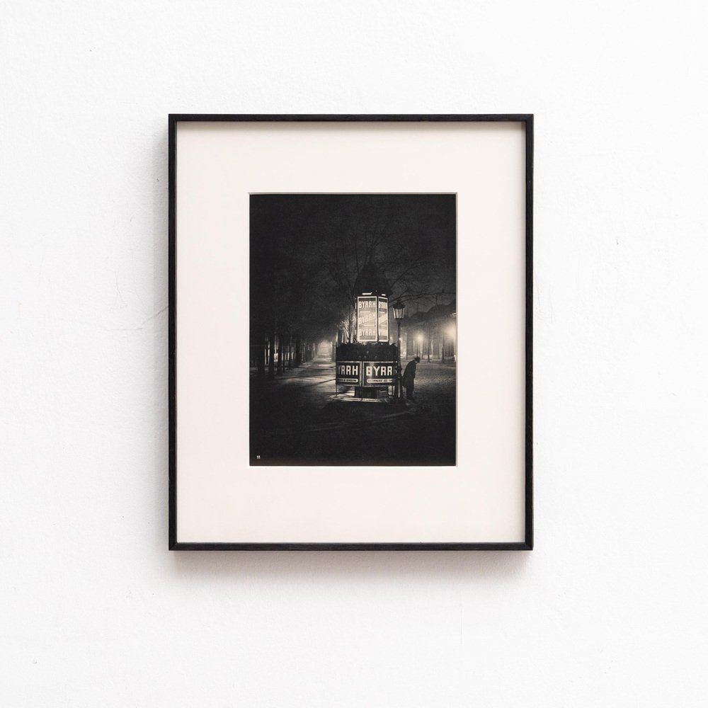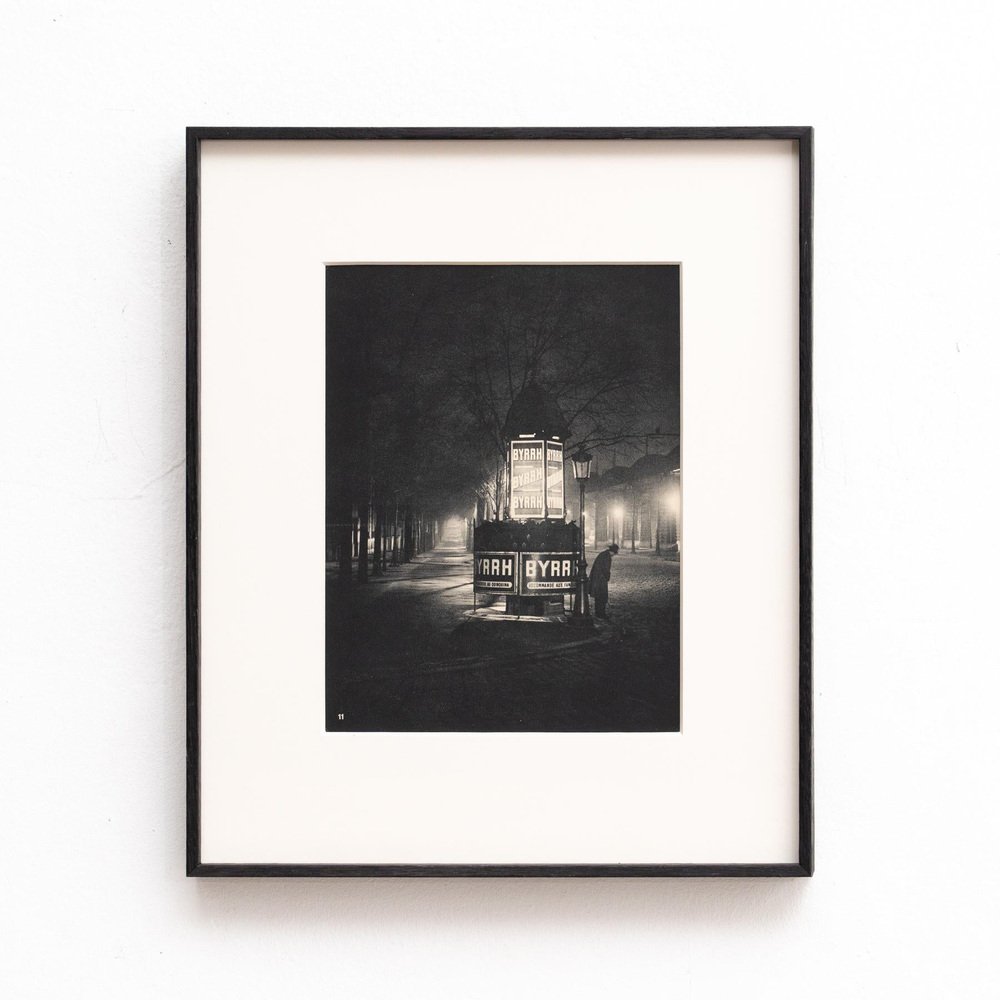 Capture the essence of 1930s Paris with this rare framed heliogravure photography by Brassai, showcasing mesmerizing scenes from his iconic book "Paris de Nuit." Originally published in 1933 by Editions "Arts et Métiers Graphiques," this piece offers a glimpse into the vibrant yet mysterious Parisian nightlife of the era. Brassai's masterful use of long exposure times and the heliogravure printing technique imbues each image with a captivating allure, revealing the bustling life of the city's streets, from the destitute to the glamorous cabaret dancers. The dark, deserted alleys, endless staircases, and dimly lit street lamps create an atmosphere that is both haunting and alluring, transporting viewers to a bygone era. This framed heliogravure, a testament to Brassai's talent and innovation, measures 3.5 D x 33.5 W x 40 H cm, and offers a rare opportunity to own a piece of photographic history. Immerse yourself in the captivating world of "Paris de Nuit" and experience the magic of Brassai's Paris through this exceptional artwork.