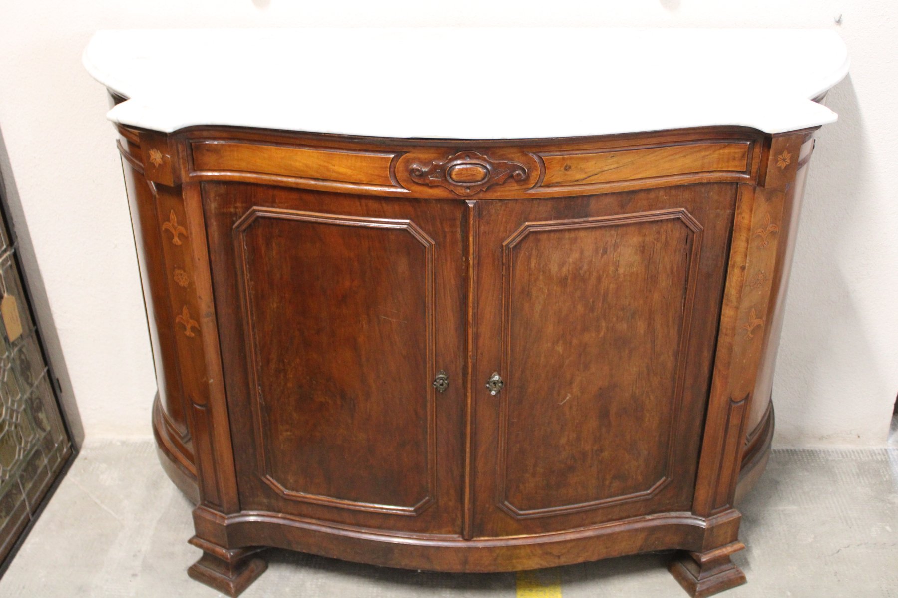 Bufet antiguo con tablero de mármol, 1850
