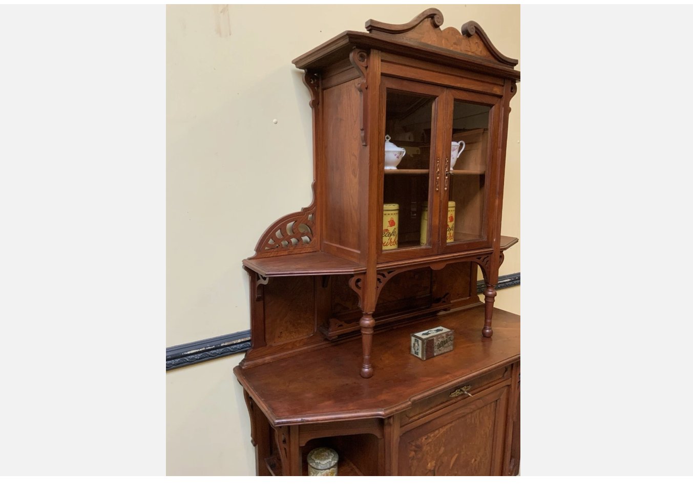 Edad: alrededor de 1900 Tipo de madera: fresno macizo y chapado con incrustaciones Estado: muy bueno, meticulosamente conservado, totalmente restaurado a su estado original (pequeños signos de desgaste por el paso del tiempo)