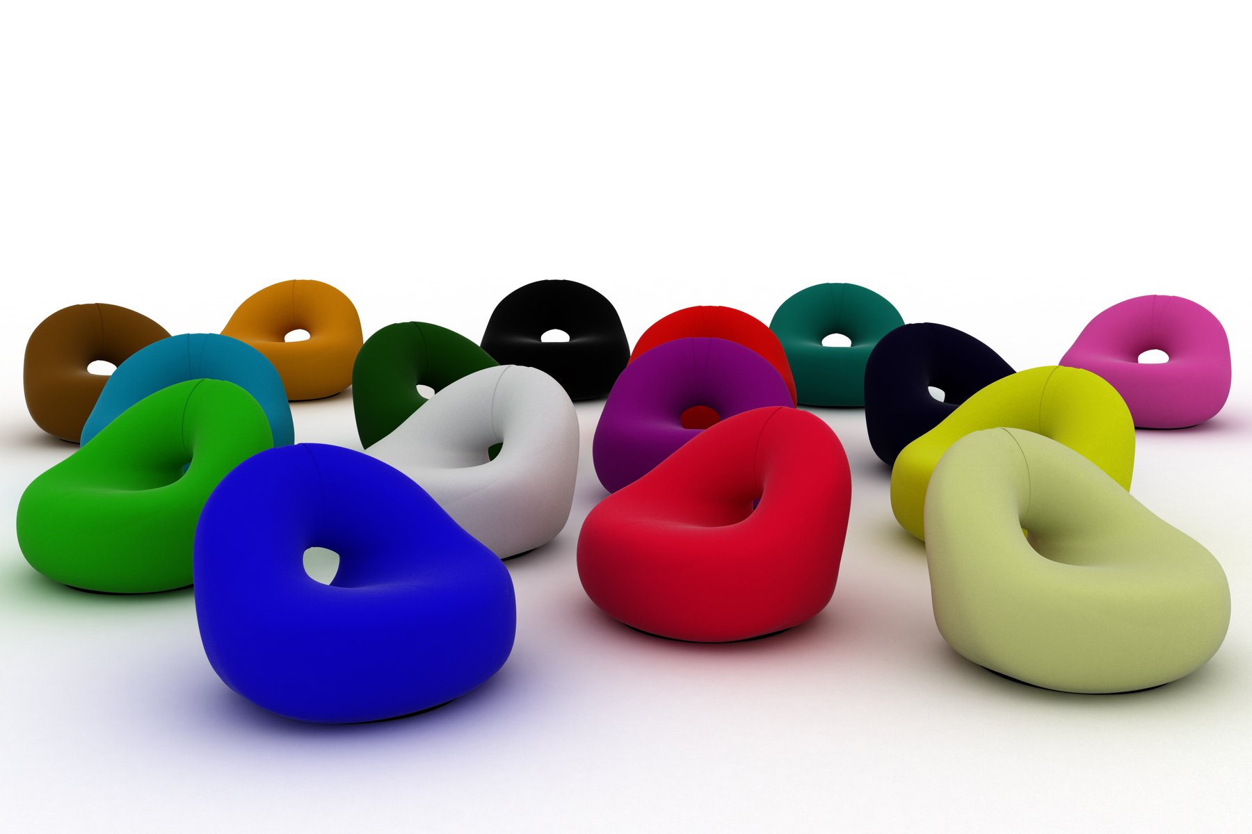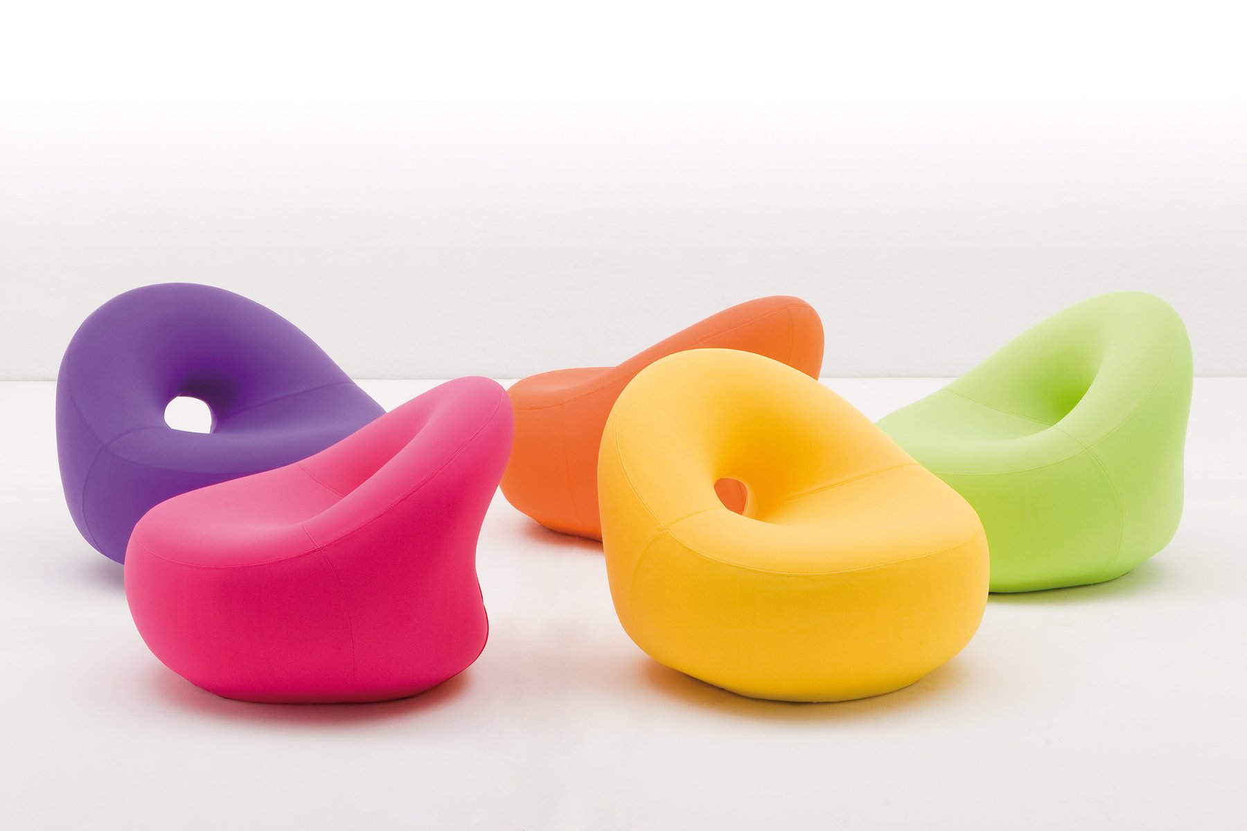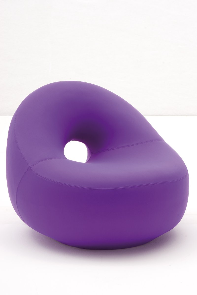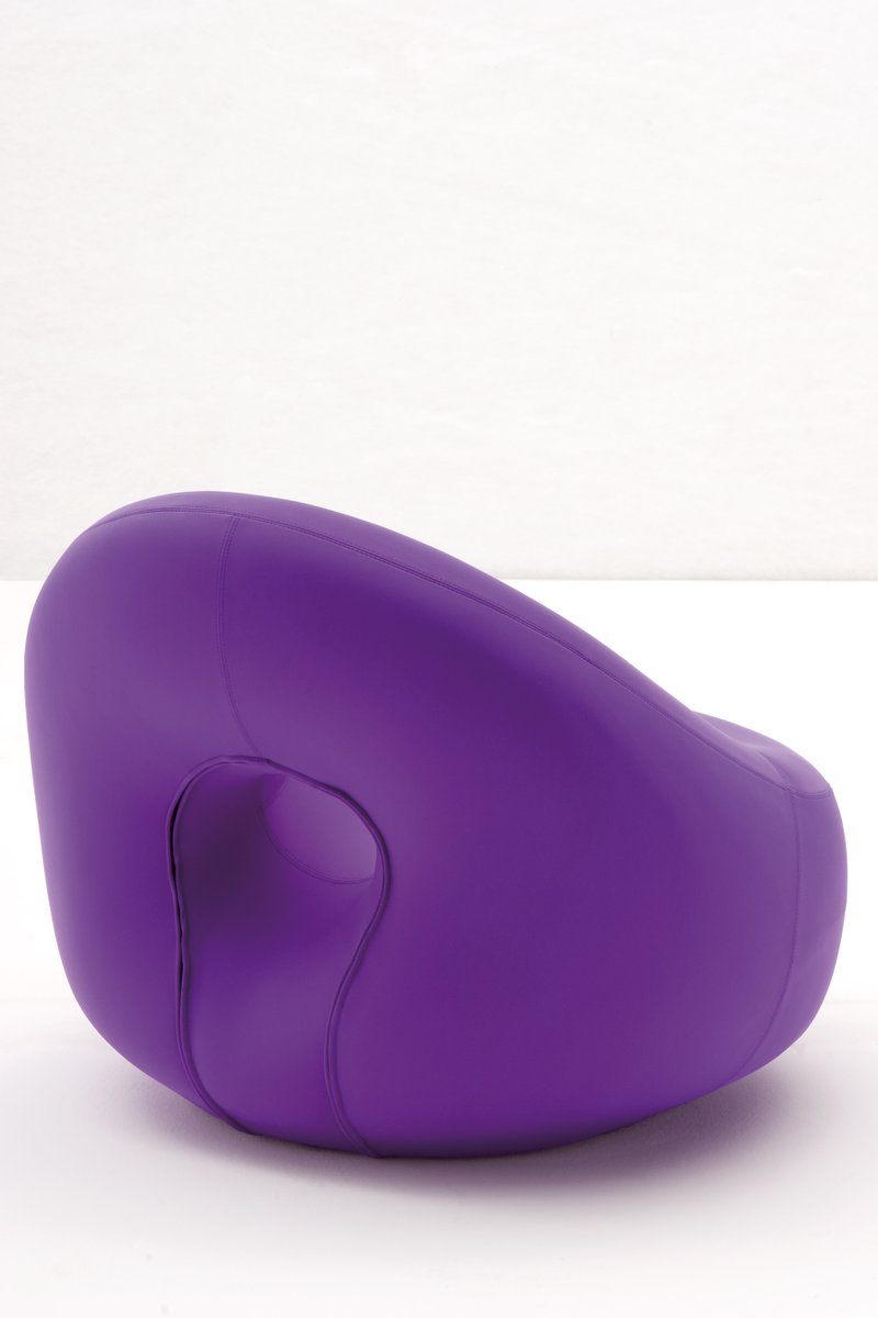 Giovannetti’s output, since its foundation, is consistently playful–its bright palettes, jigsaw-like configurations, and inflated forms are warmly reminiscent of childhood toys, while the confidently executed shapes exude evocations of abstract sculpture. Most of their objects, moreover, are available in a wide array of color and textile combinations, incorporating the buyer’s tastes into the manufacturing process. The Flower armchair (2004), designed by Sandro Santantonio, offers a beautifully abstracted interpretation of the form; a steel frame upholstered in shape-retaining polyurethane foam, it rises from a base plate to blossom outwards, into a structure that is both functional and sculptural. The Multilove sectional sofas (2006), meanwhile, designed by Enrico Buscemi and Piergiorgio Leone of the Space Time design group, generate seating arrangements from the assembly of abstract elements, which joyously illustrate the dynamic curvature of the overarching composition. The Bolle chair (2008), designed by Sergio Giobbi and available in a wide array of colors, is produced in soft curves. Italian for “bubble”, it appropriately resembles the shifting contours of something soft and free-floating. The Anemone armchair (2011), designed by Giancarlo Zema, continues this trend for brightly interpreted natural forms. Thoughtfully recalling the densely distributed tentacles of the marine plant, the chair’s shape is warm, elegantly rendered, and fun.