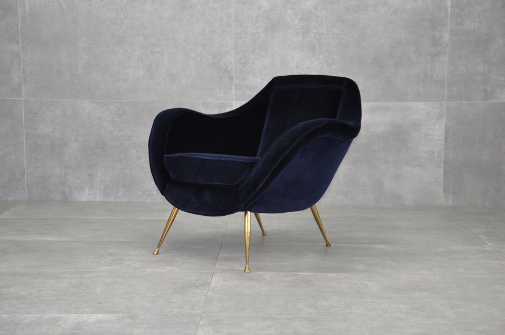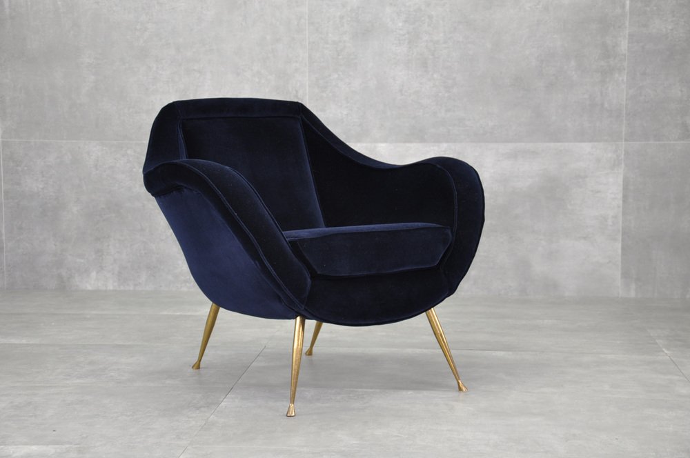 Butaca de terciopelo y latón, años 50