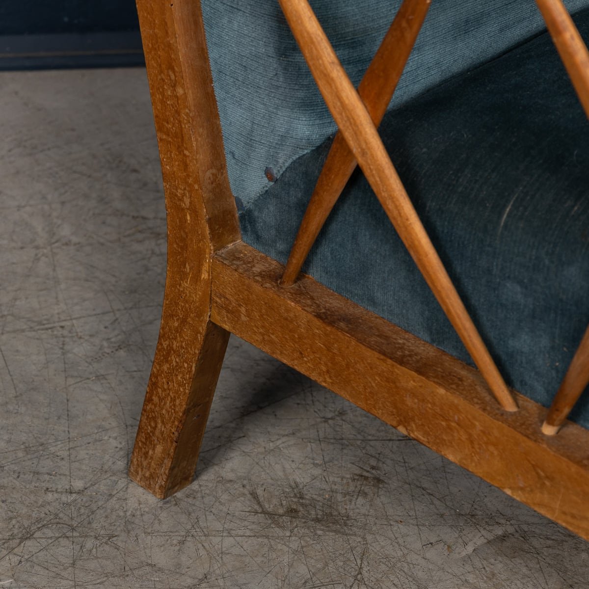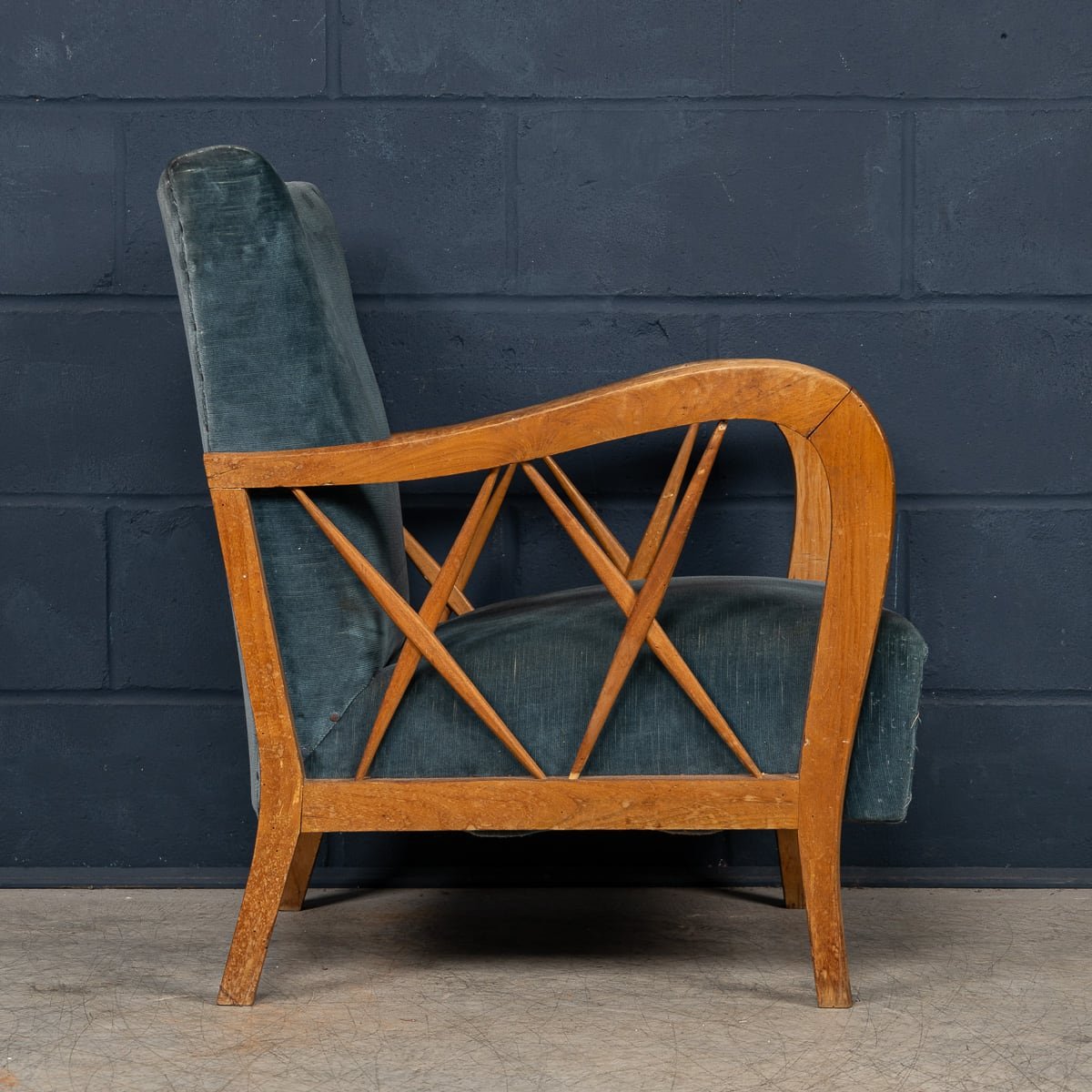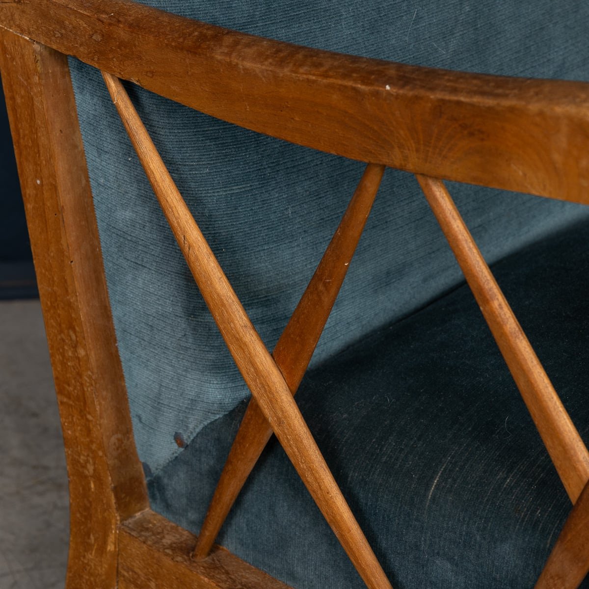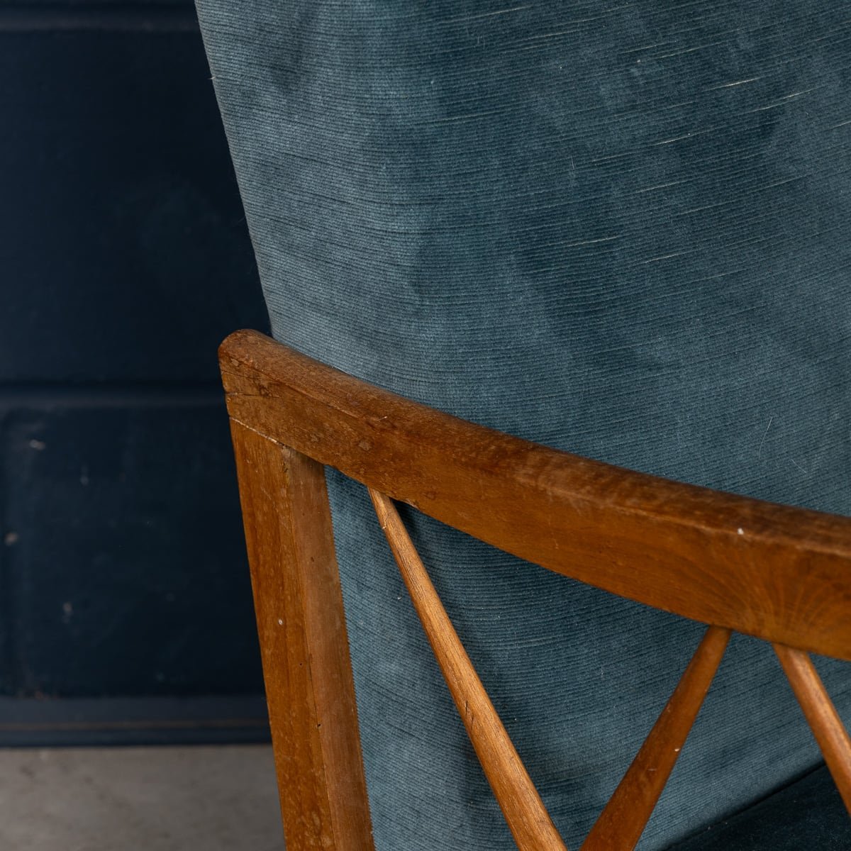 Butaca italiana vintage de terciopelo azul de Paolo Buffa, 1960