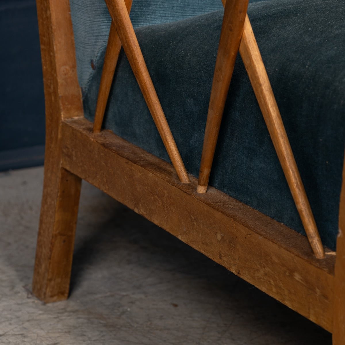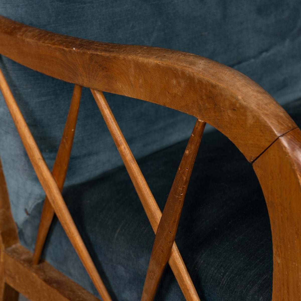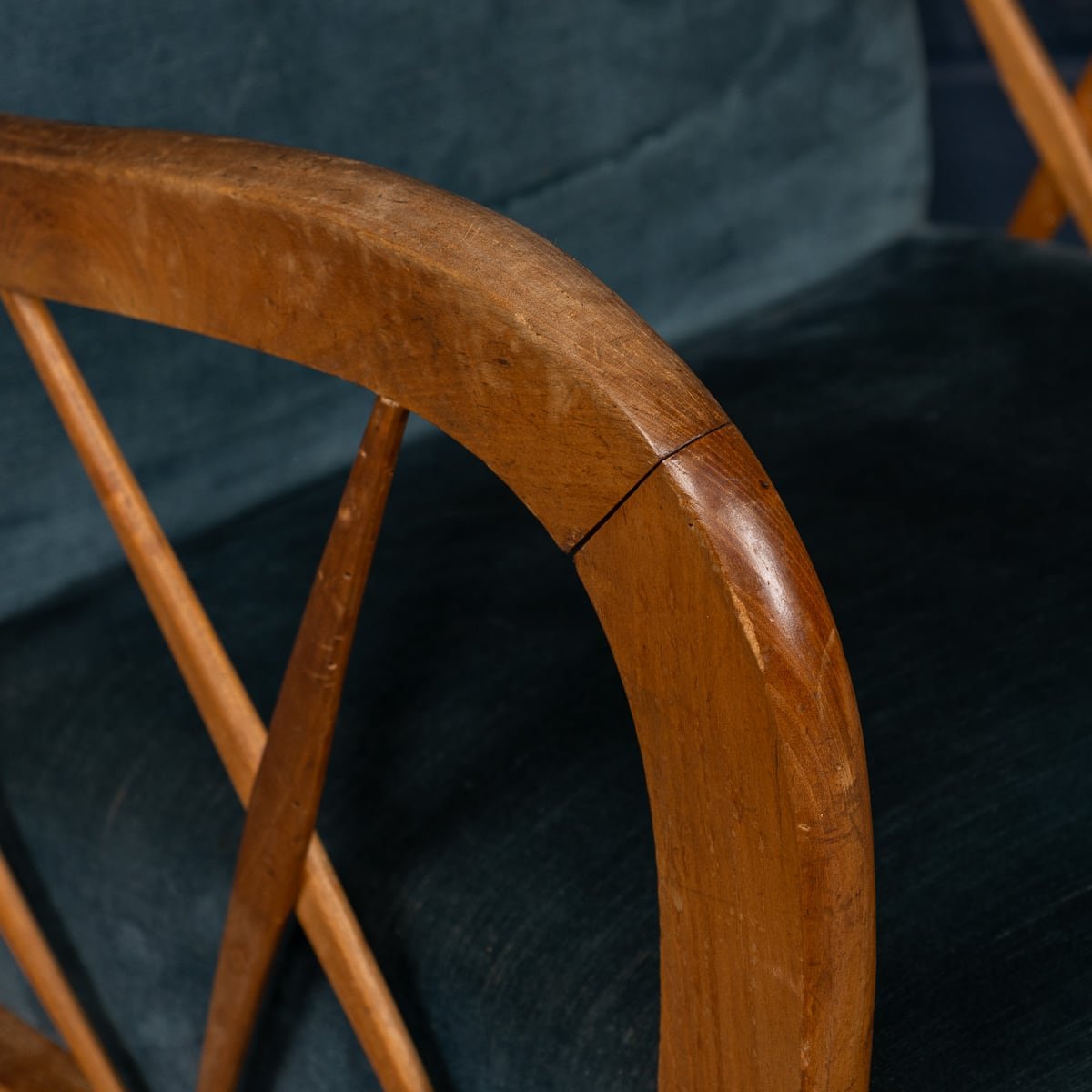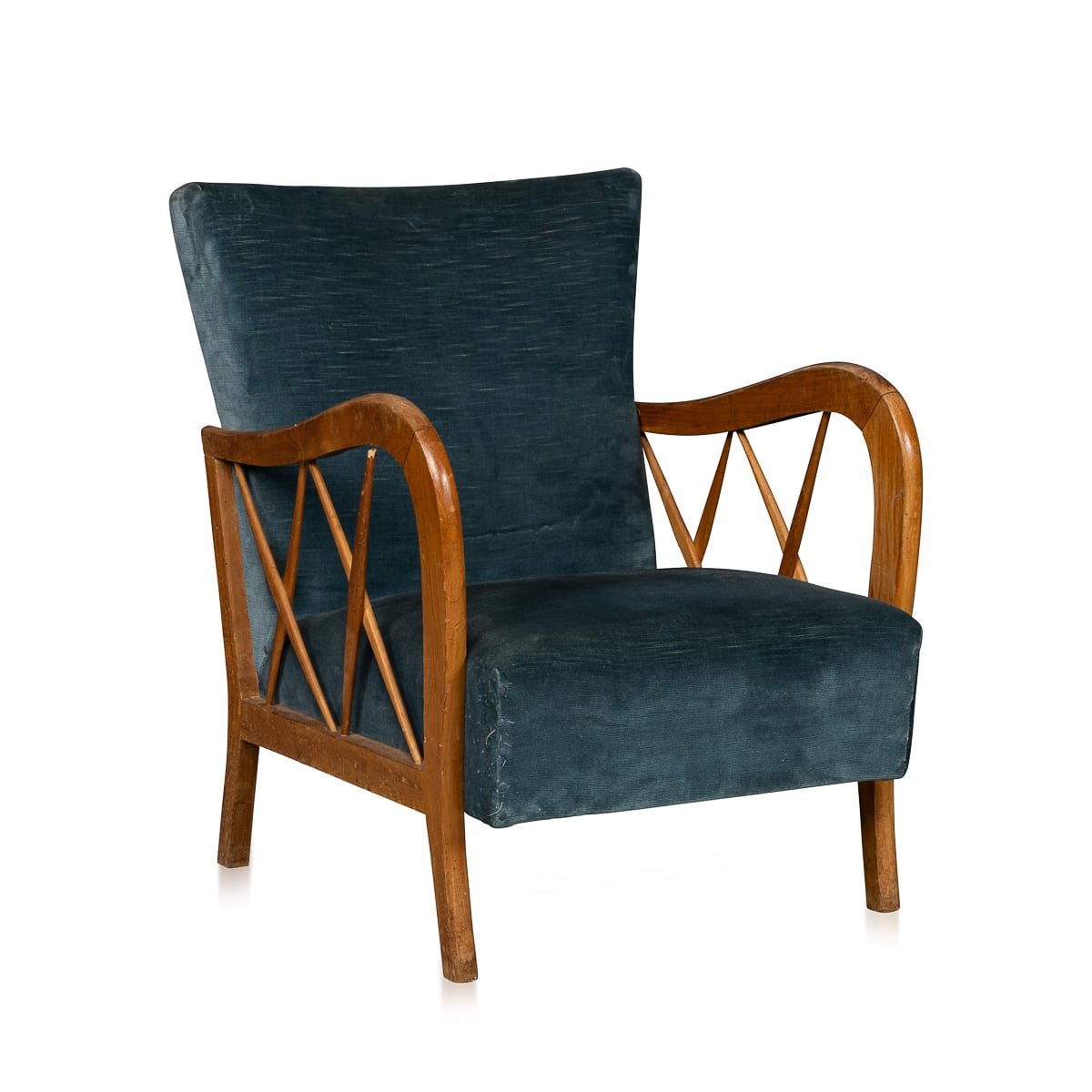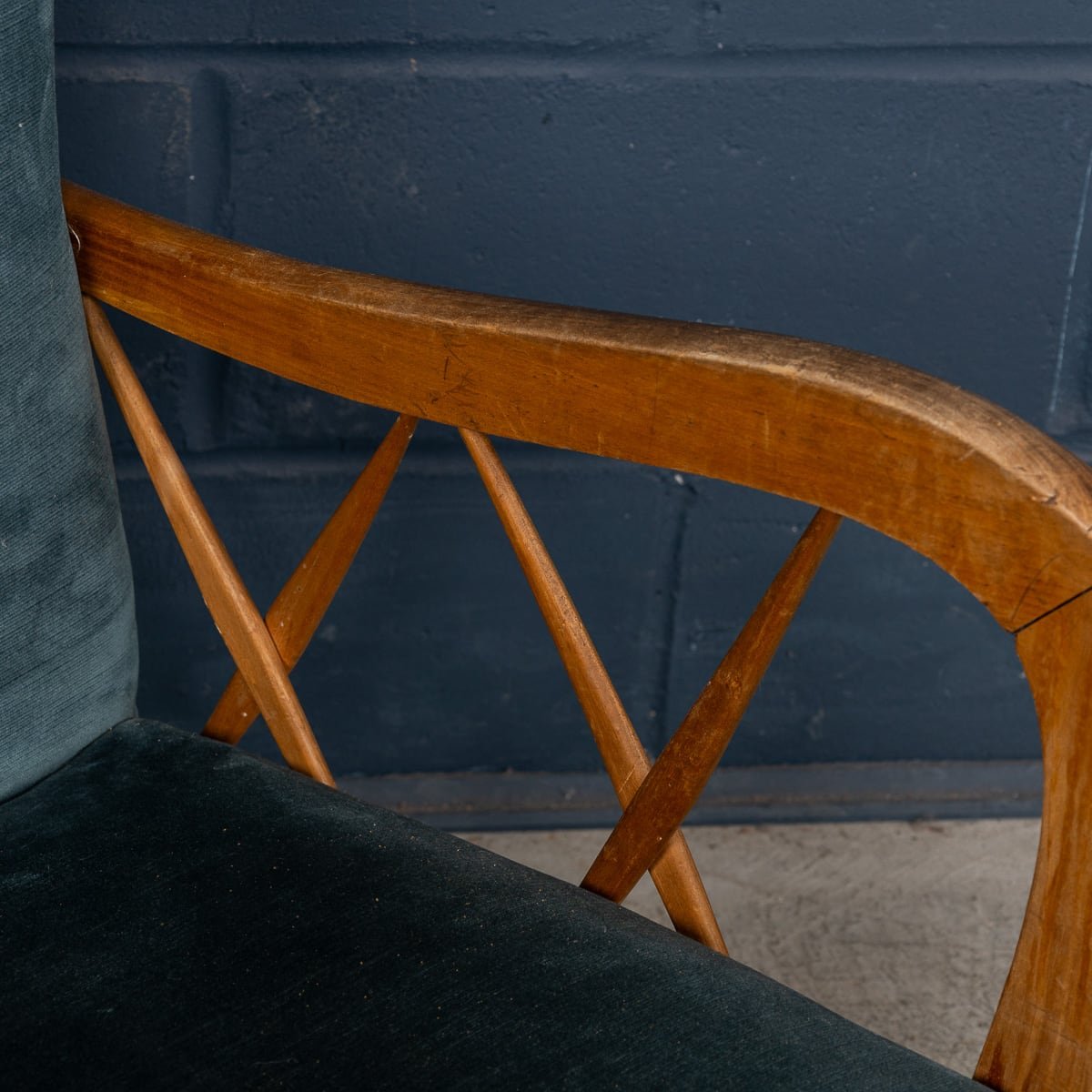 Butaca italiana vintage de terciopelo azul de Paolo Buffa, 1960