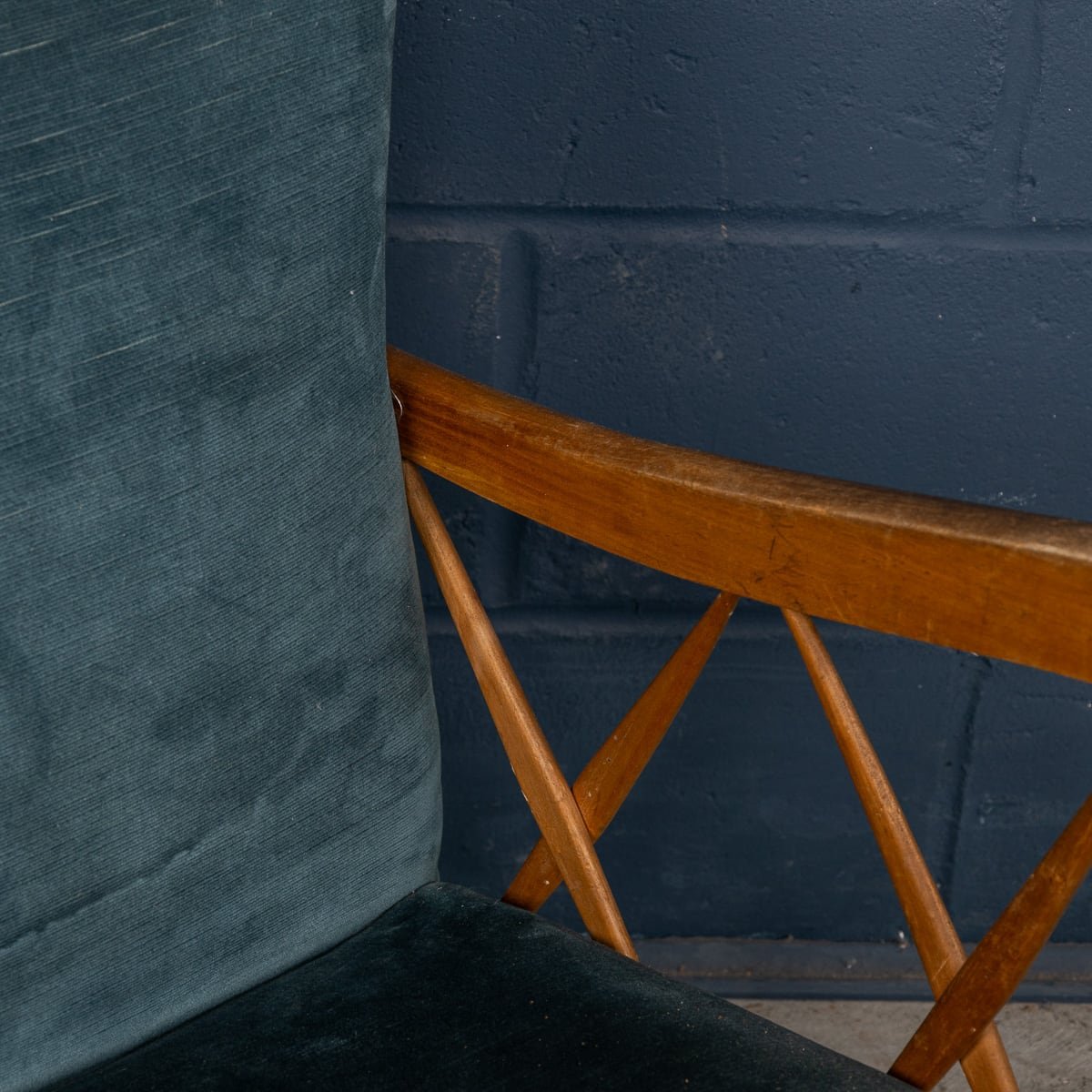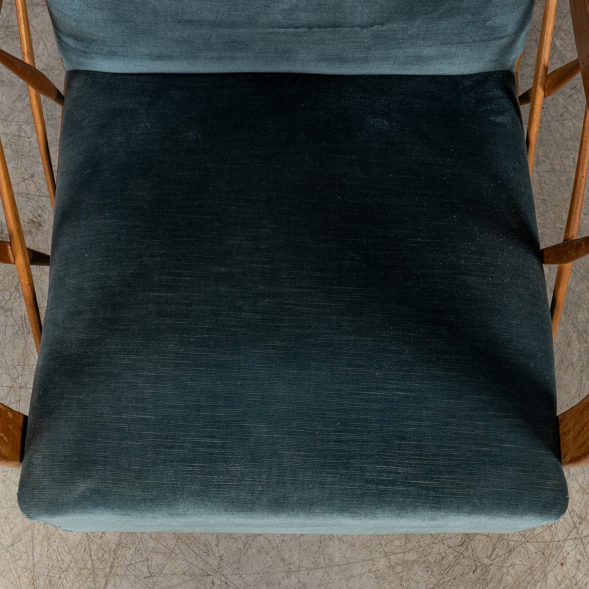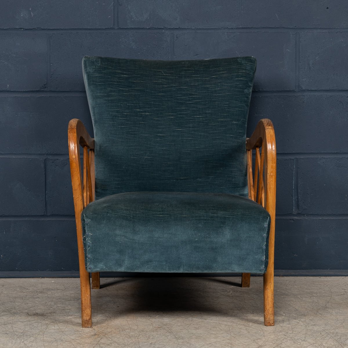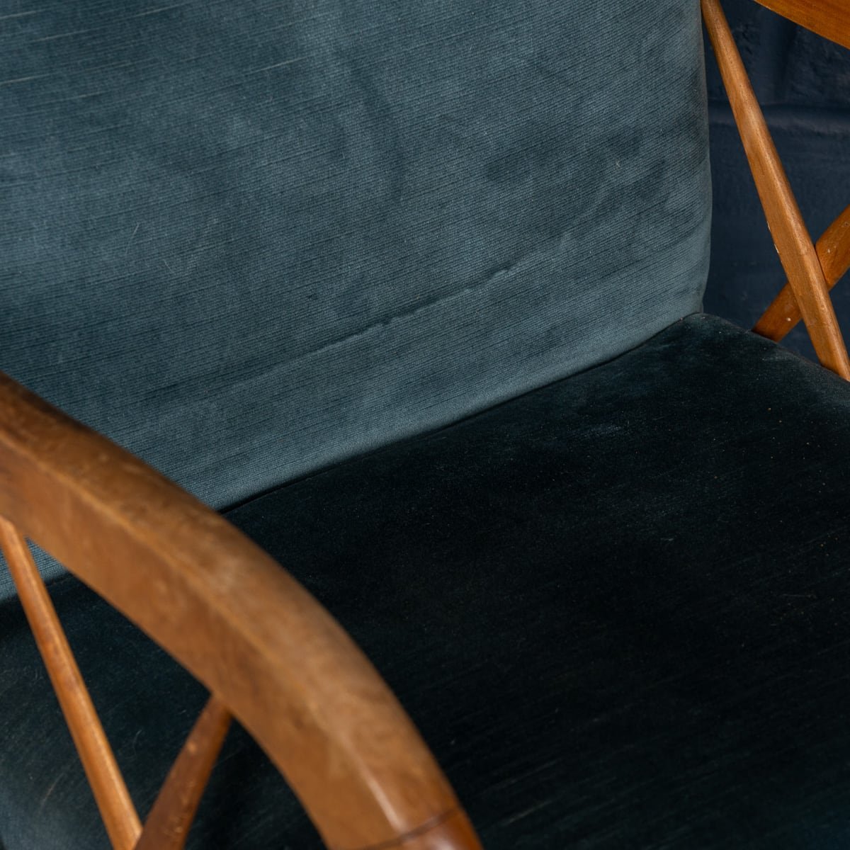 Butaca italiana vintage de terciopelo azul de Paolo Buffa, 1960