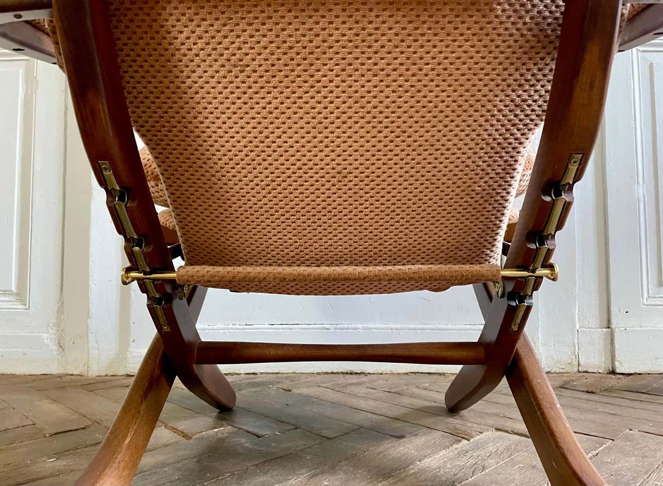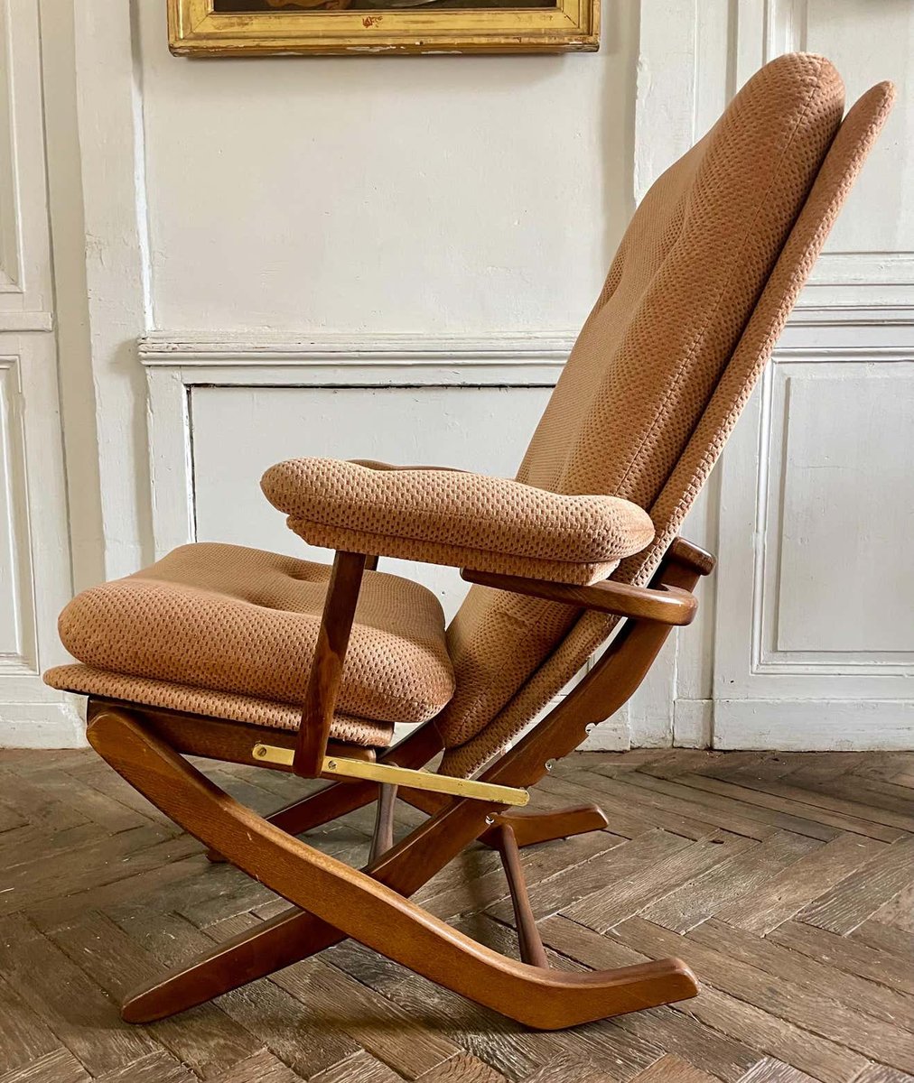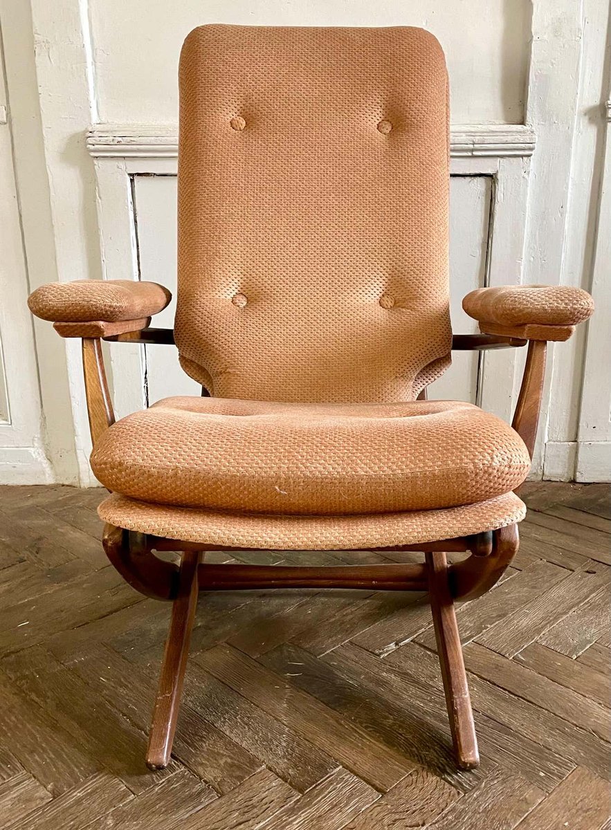 Butaca plegable vintage de madera y terciopelo, años 70