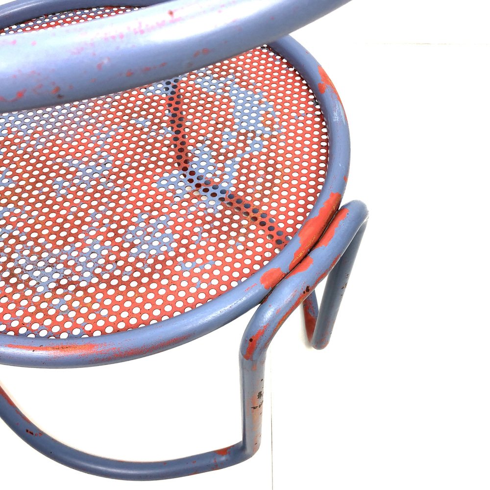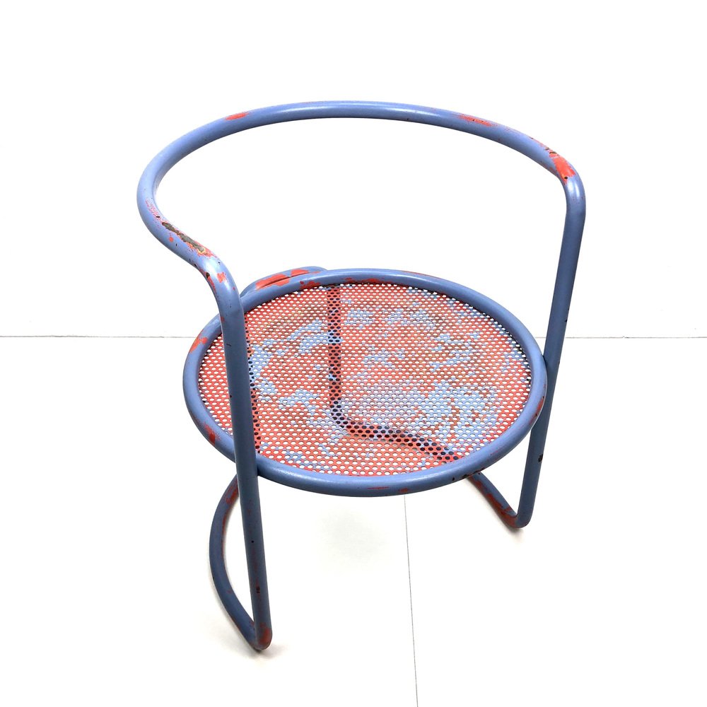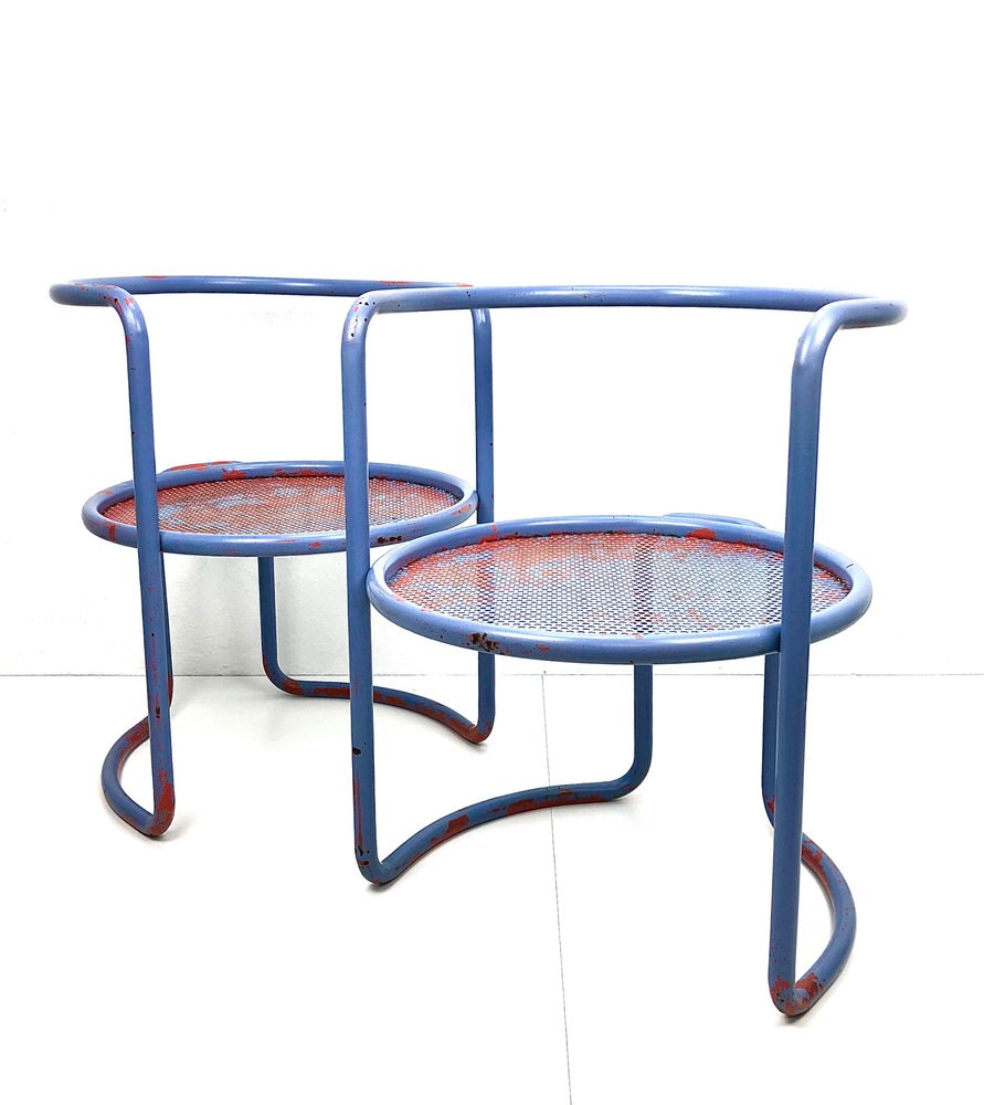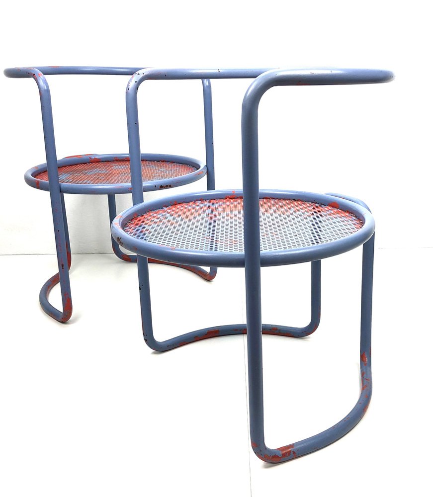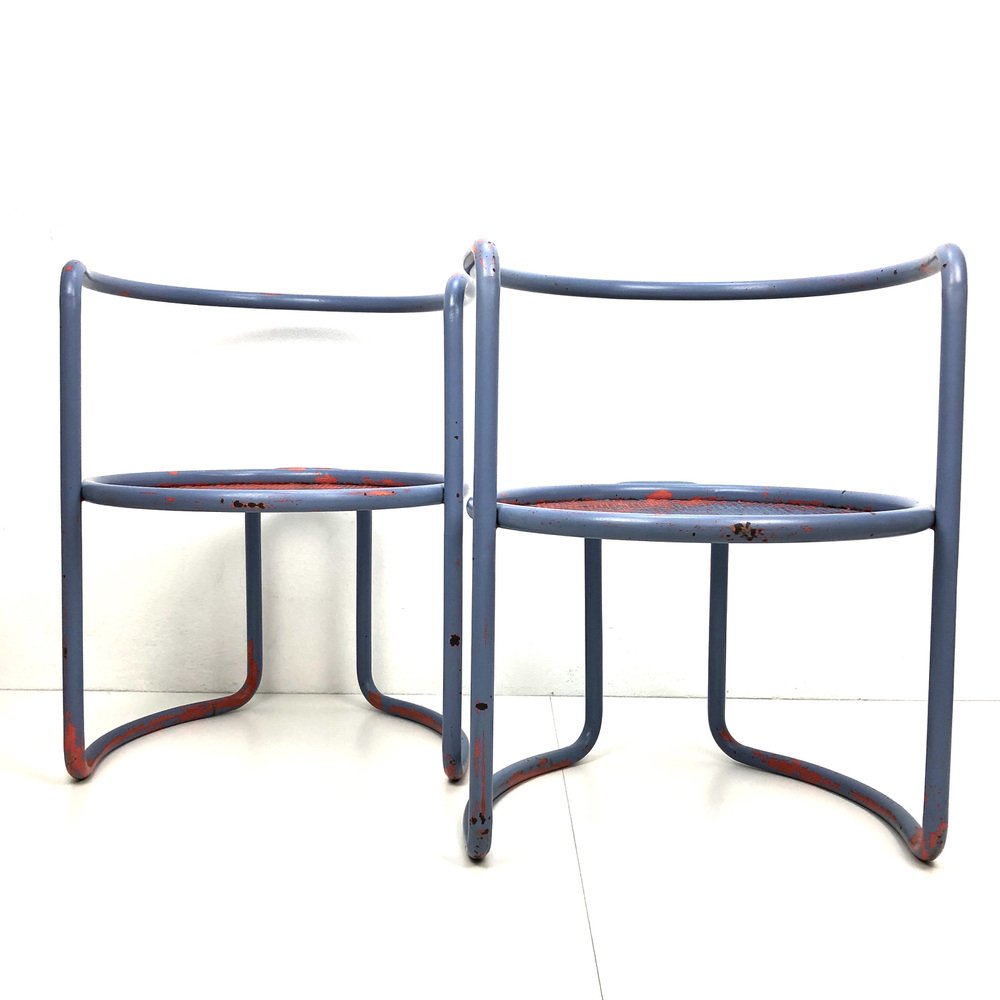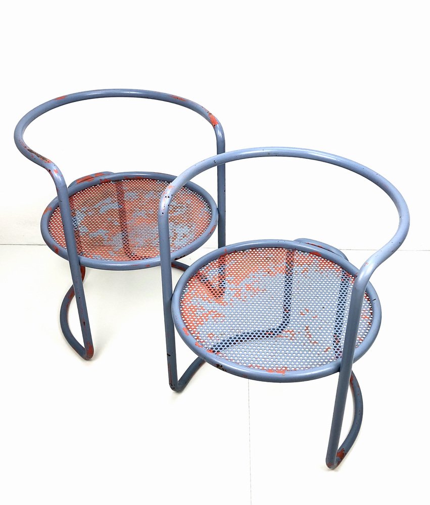Butacas de tubo de acero con asiento de chapa perforada, años 60. Juego de 2