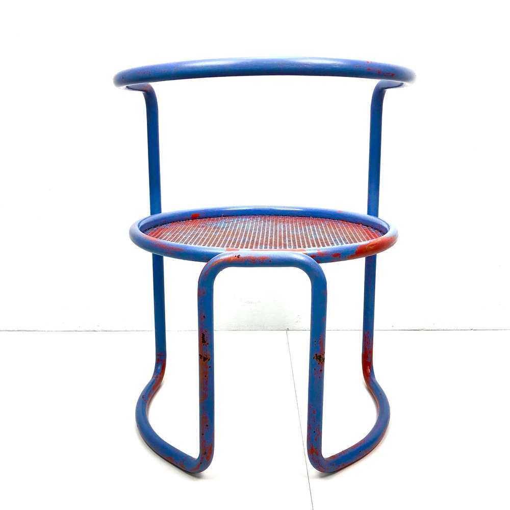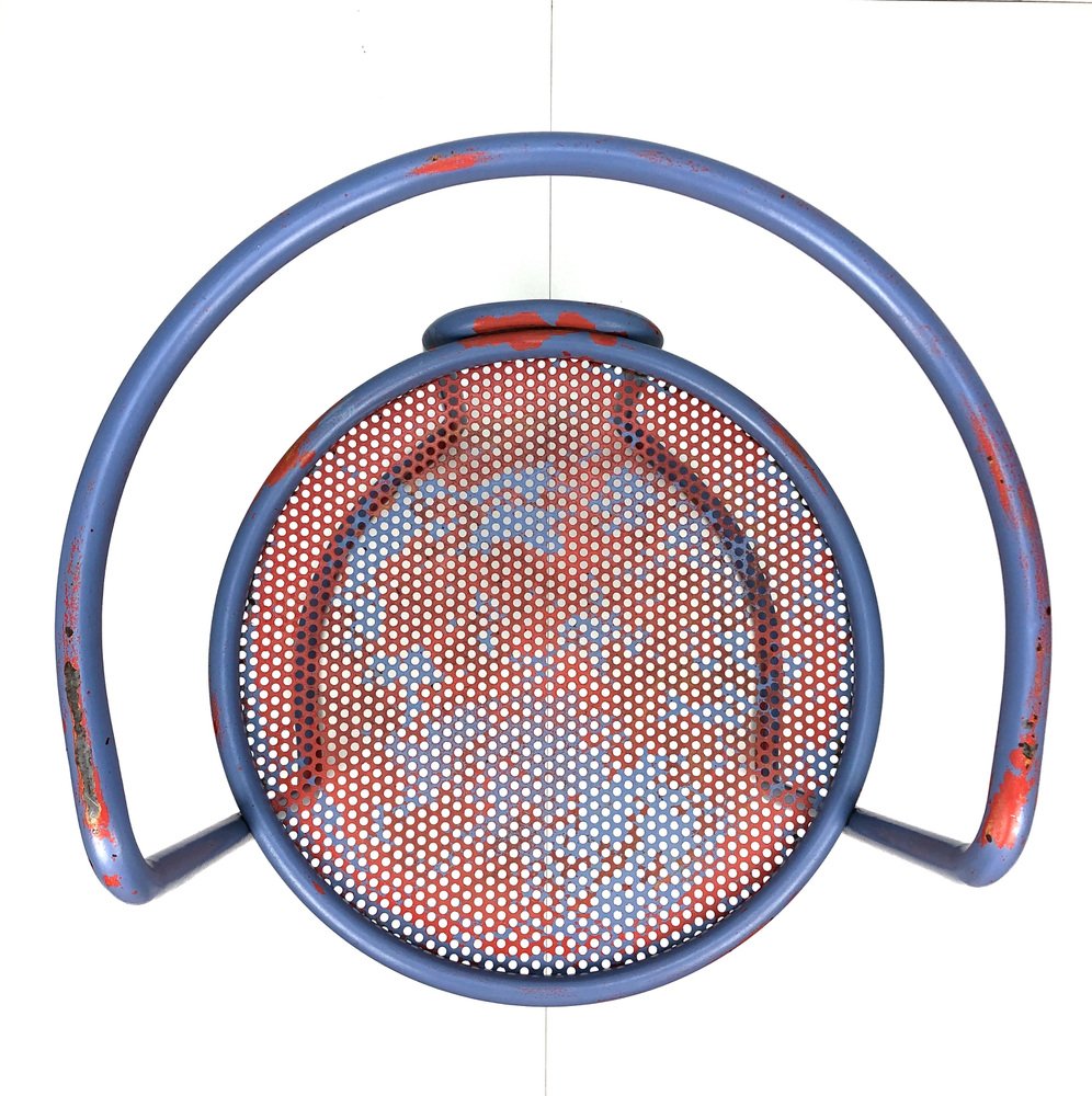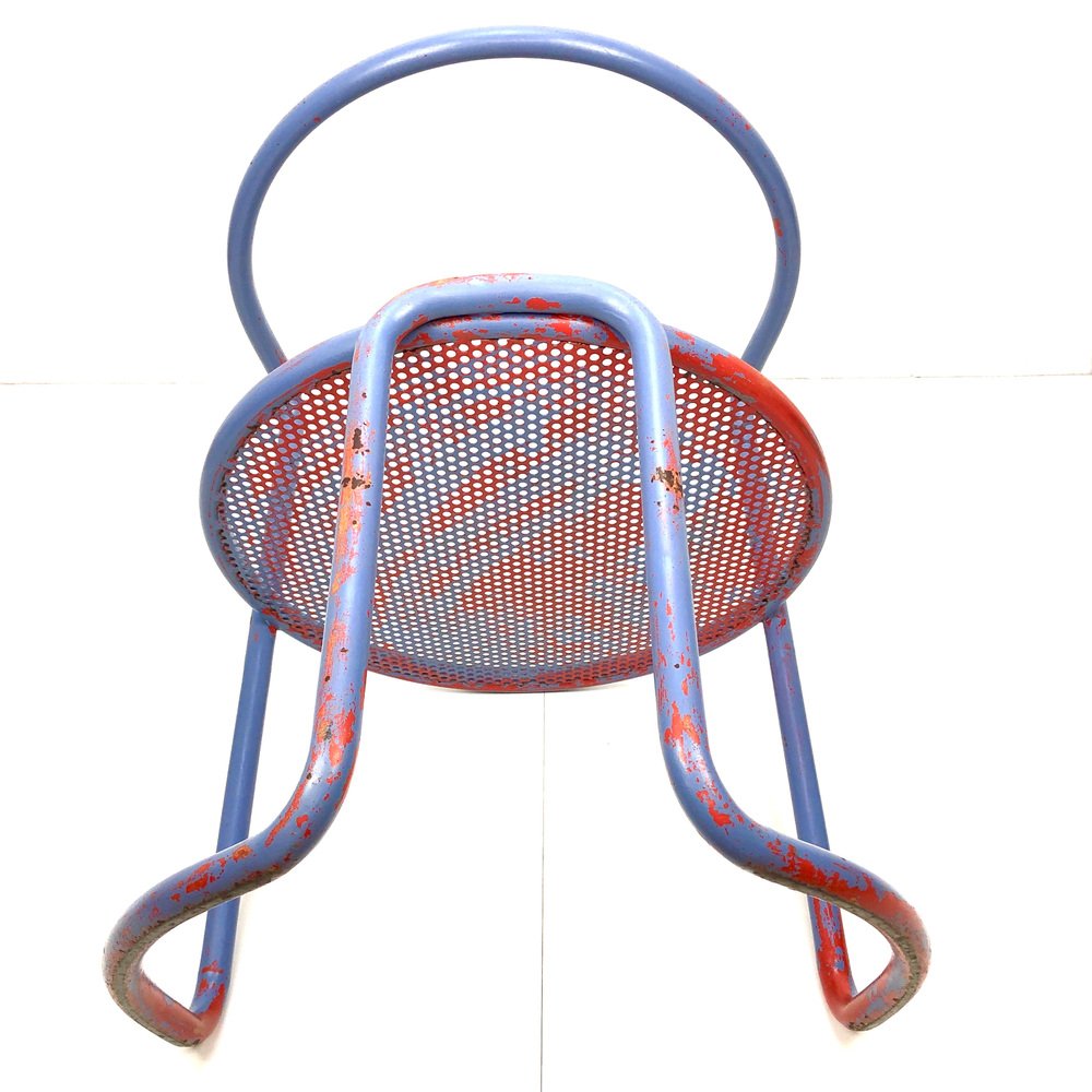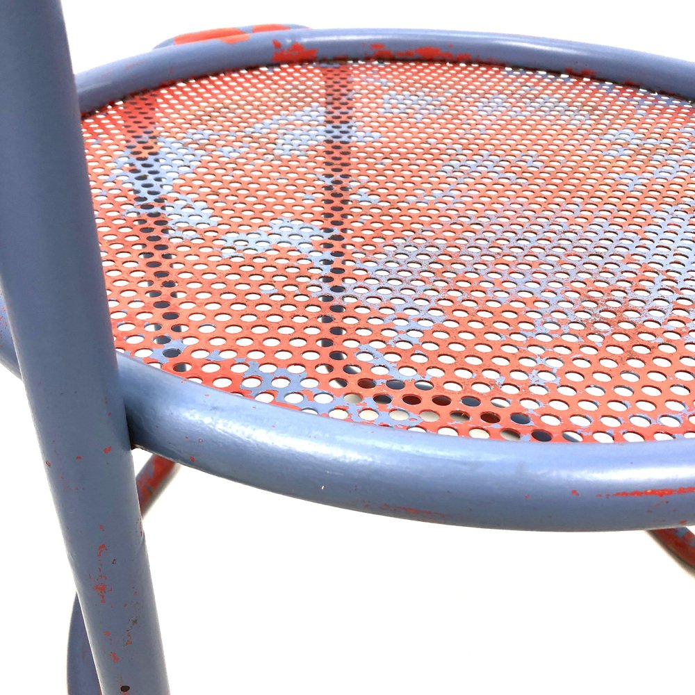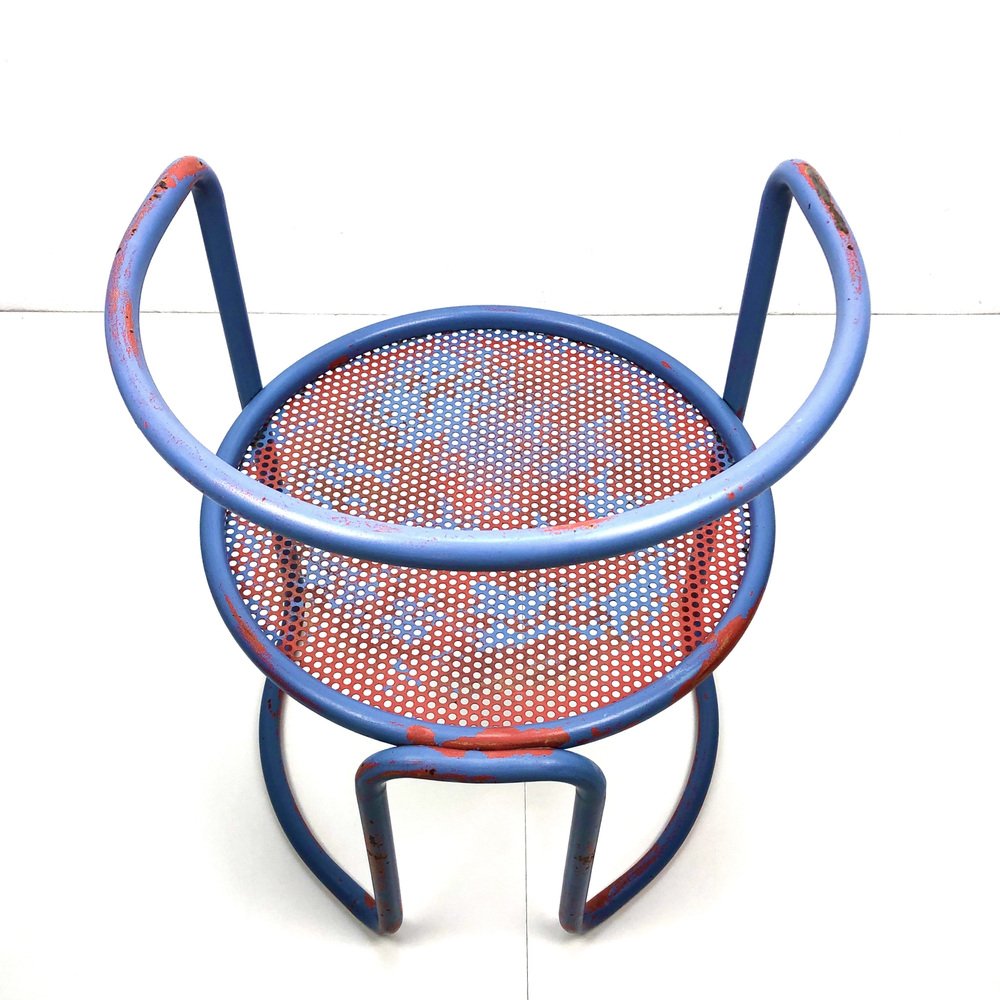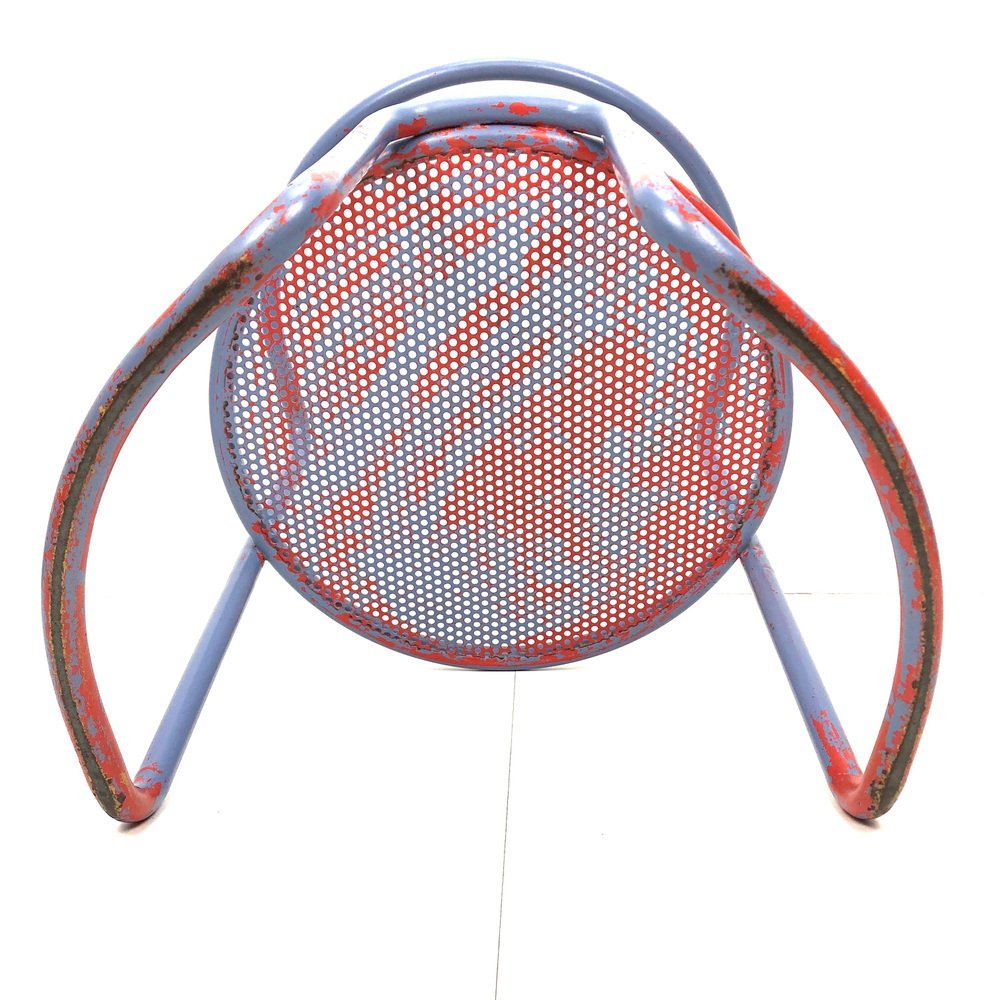 Butacas de tubo de acero con asiento de chapa perforada, años 60. Juego de 2