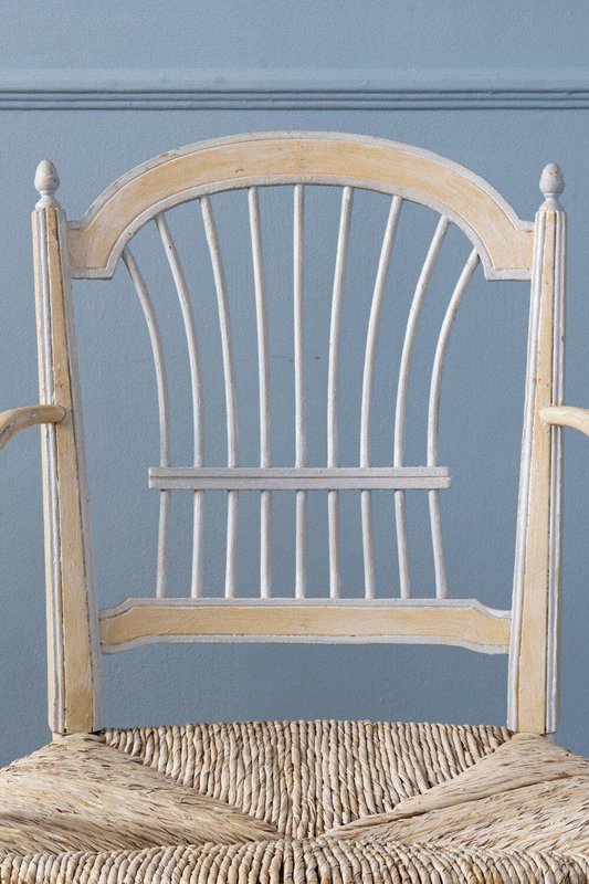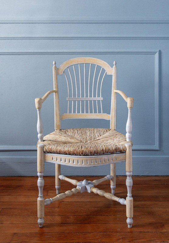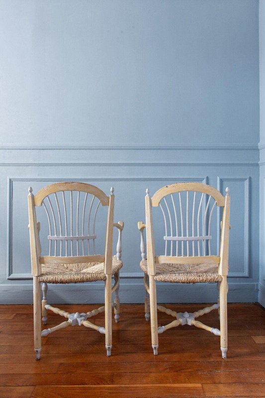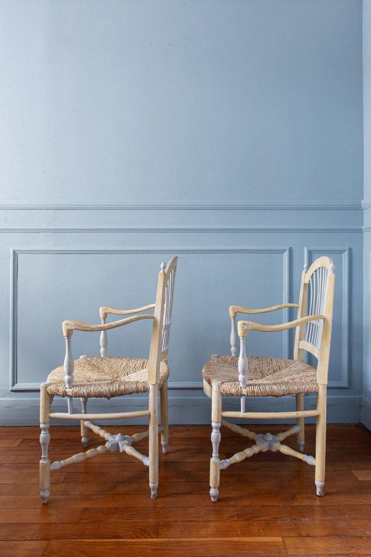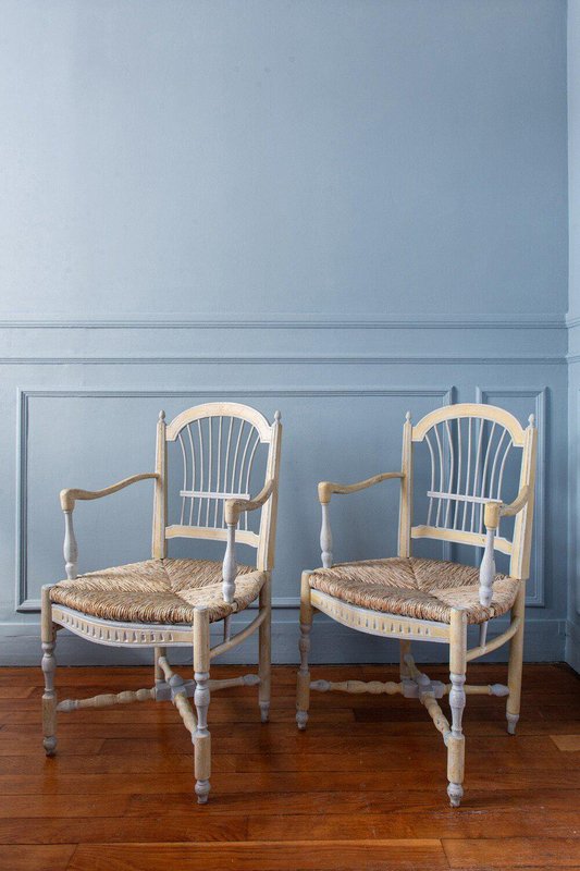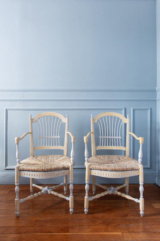 Butacas provenzales pintadas con asientos de punta. Juego de 2