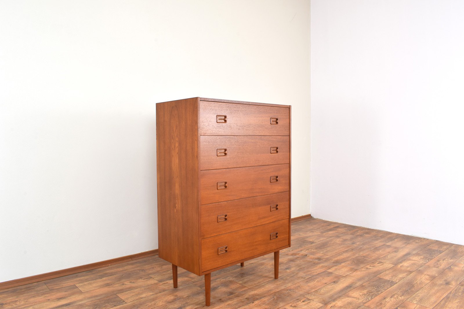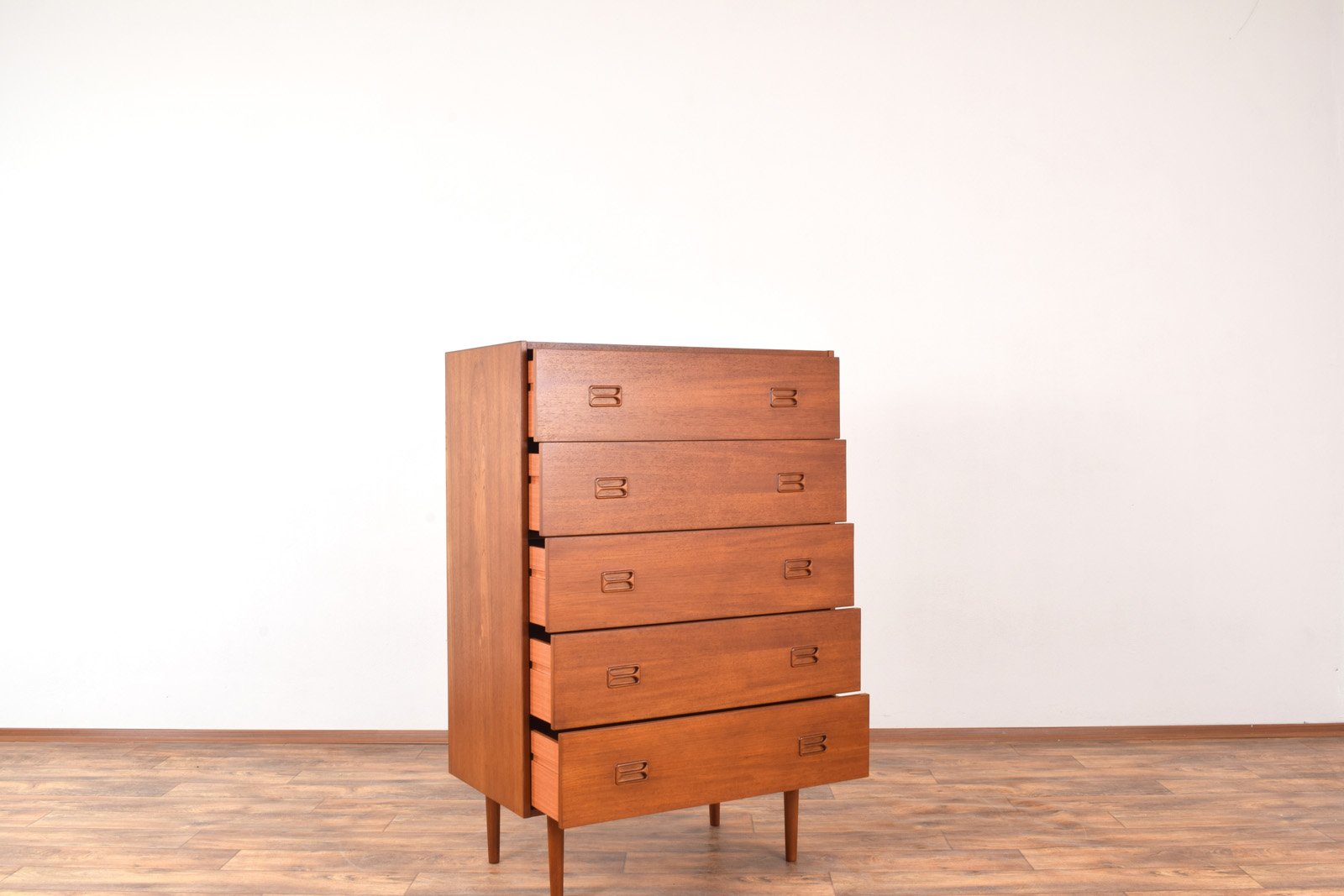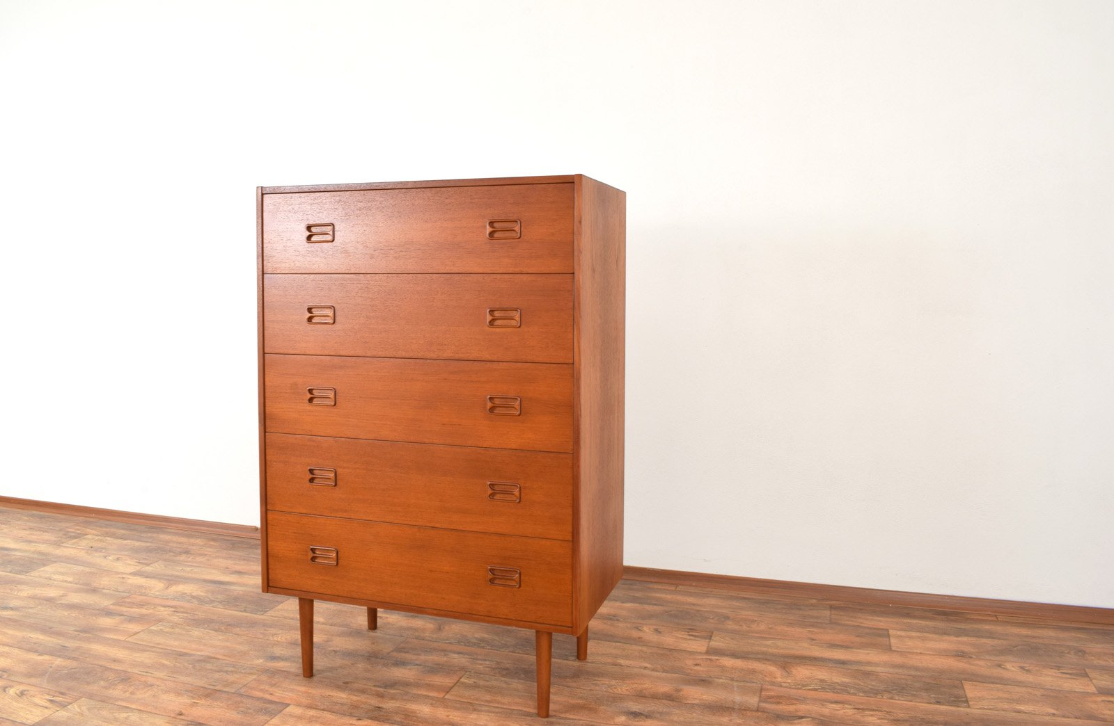 Cajonera danesa Mid-Century moderna de teca, años 60