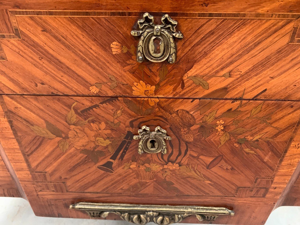 Cajonera estilo Luis XVI de marquetería de chapa, siglo XX
