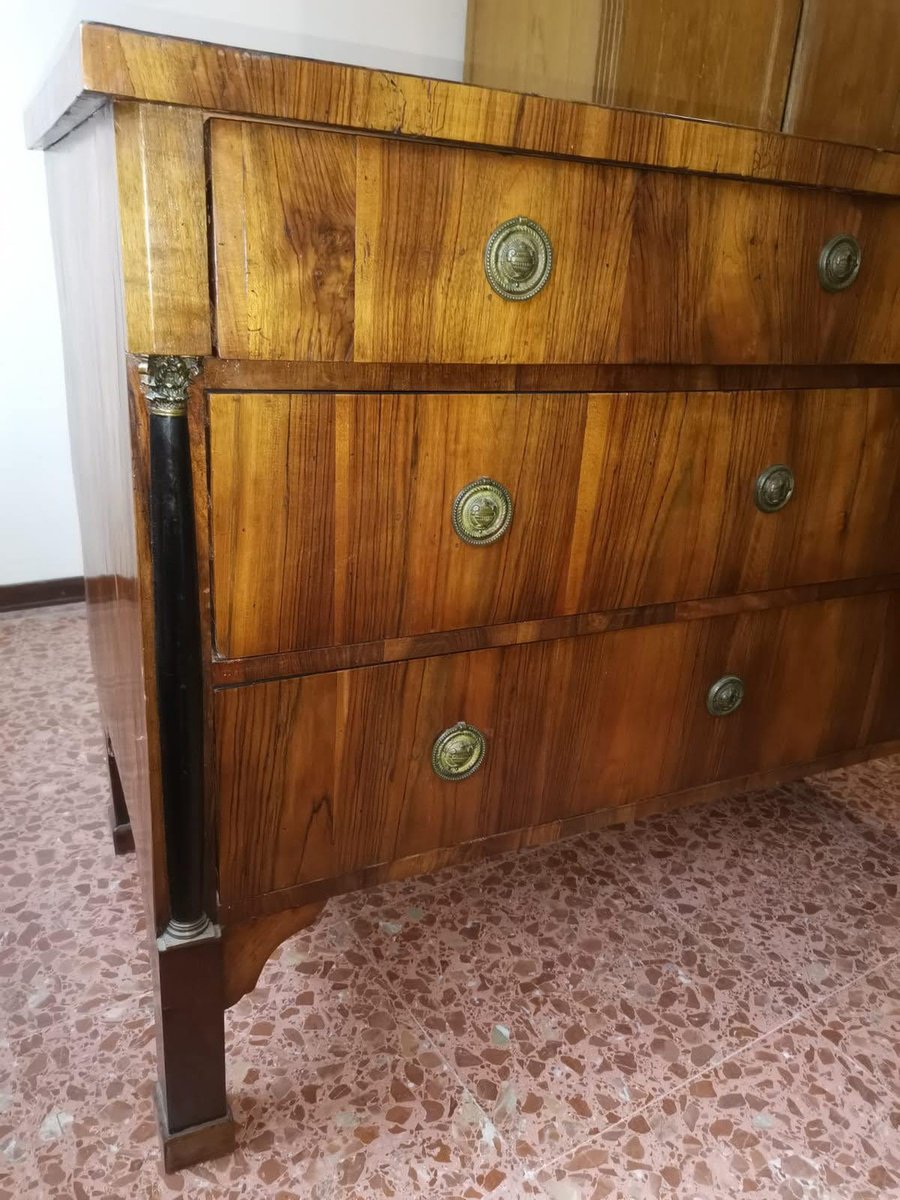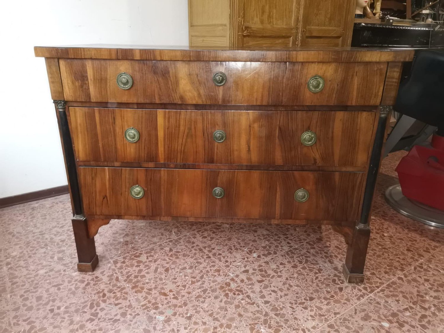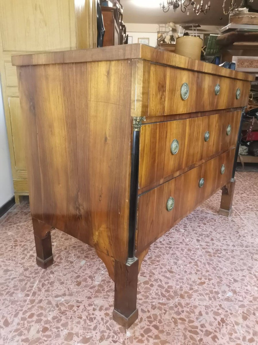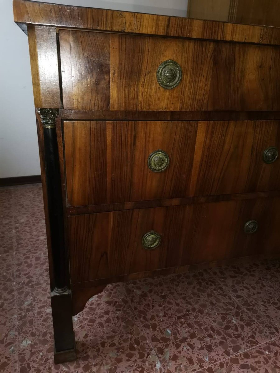 Cajonera Imperio de principios del siglo XIX de chapa de nogal italiana