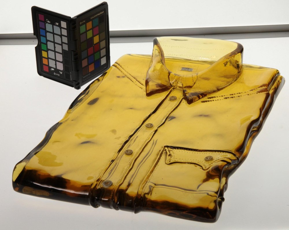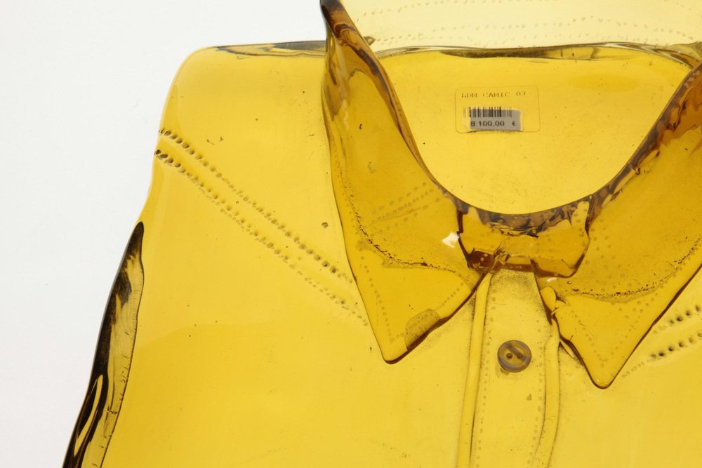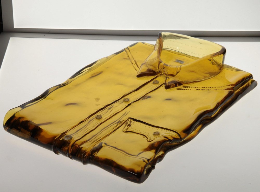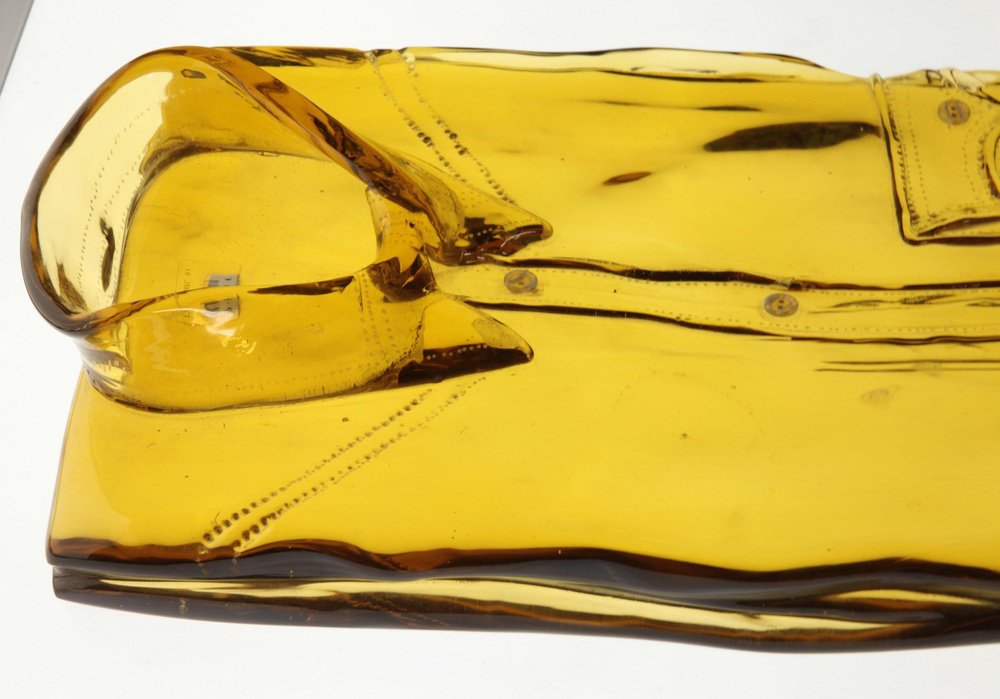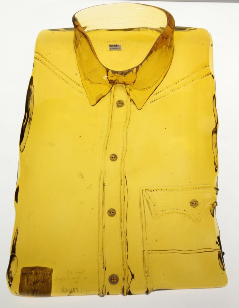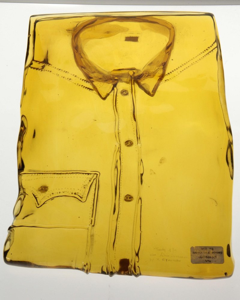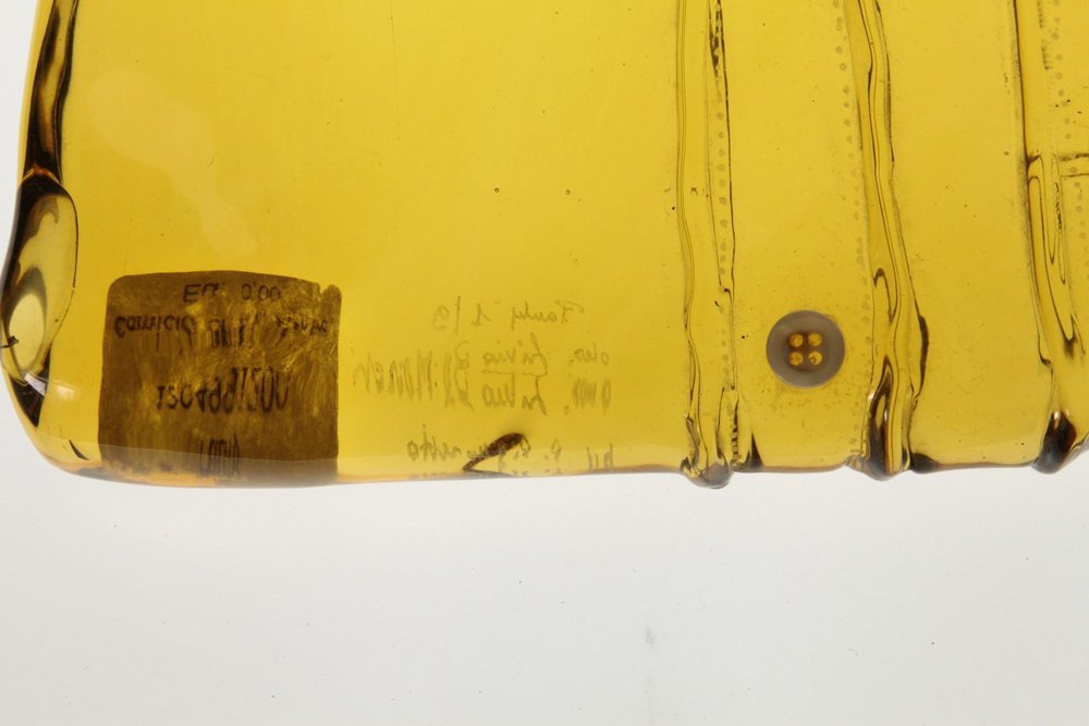 Directamente de la viñeta artística de Pauly en la Plaza de San Marcos. La exposición de Pauly de la traducción de Signoretto de De Marchi se instaló en la Plaza de San Marcos de Venecia, en abril de 2000. Se trata de un famoso diseño en madera de Livio De Marchi, sólo un maestro del vidrio podía aceptar el reto de reproducir su icónico diseño en vidrio, con un resultado tan grandioso. La camisa muestra los velos y todos los detalles naturales. Una increíble colaboración entre artistas de distintos medios, realizada para Pauly. Pauly tenía una tienda en la Plaza de San Marcos, siempre que estaba en Venecia visitaba su tienda. Estaba dividida en dos partes, una clásica con piezas tradicionales de Murano, la parte artística en cambio tenía propuestas emocionantes cada vez. Allí vi esta escultura. Es la número 1/9 y se quedó en la tienda. Algunas fueron traídas a Sofa por la galería de arte Mostly Glass. Intenté captar los detalles. Es una obra maestra. Una pieza de coleccionista, tanto de De Marchi como de Pino Signoretto.