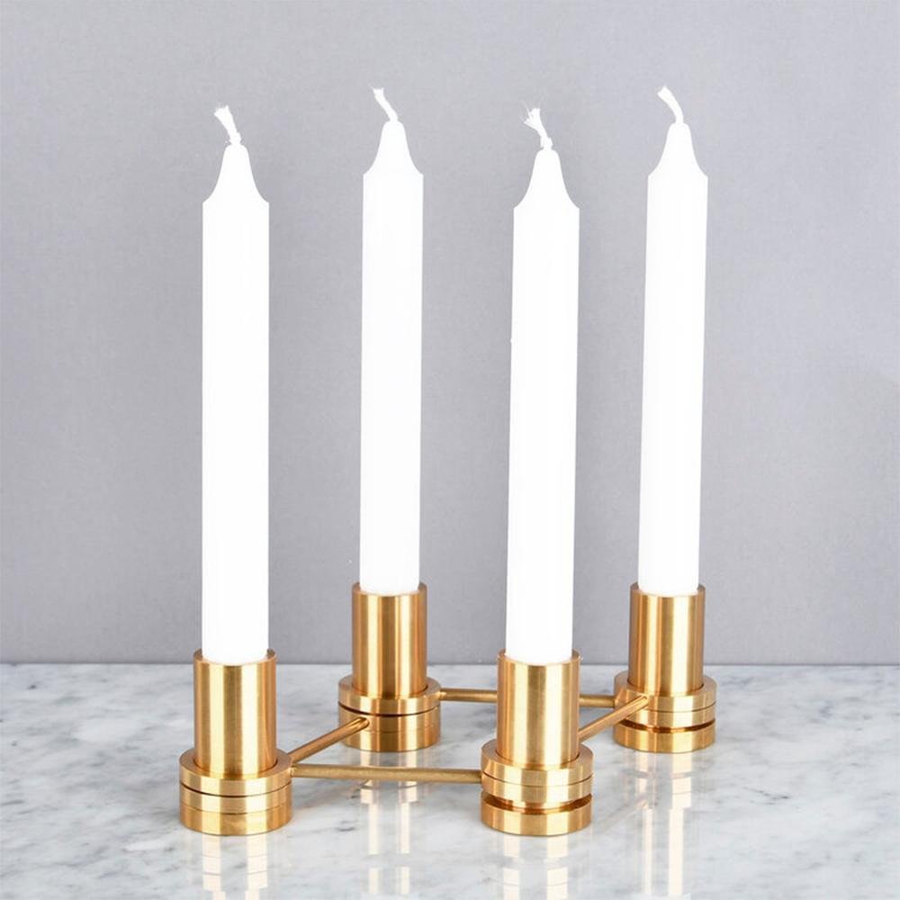Set of 4 brass candle holder by ox denmarq dimensions: d 4 x h 6 cm materials: brass ox denmarq is a danish design brand aspiring to make beautiful handmade furniture, accessories and lighting in natural high-quality materials in fair prices. " when we set out back in 2003, we were primarily working with vegetable-tanned saddle leather thus the name ox was a tribute to our unique leather and the animal providing it. The other half of our name, denmarq, is chosen to emphasize that we are a danish design brand based on the danish design tradition and that most of our furniture is produced in denmark. However, denmarq not only refers to our home country, but also to the co-founder and designer - dennis marquart. Before finishing his design studies at the copenhagen design university, dennis marquart did a blacksmith education. This background is extremely useful when developing and designing products." ox denmarq handmade products will only get more beautiful as time passes and natural patina sets in. Many ox products are shaped around marble or vegetable-tanned saddle leather. Stone and leather are materials that will, and should, get marks over time. But they will also age with a very special beauty. When you learn to appreciate the beauty of maturity and of time passing, you have learned to appreciate patina the way it should be appreciated. Made to order creations can be done: