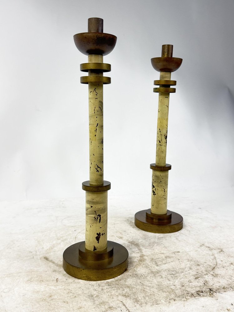 Candelabros Art Déco de latón, años 20. Juego de 2
