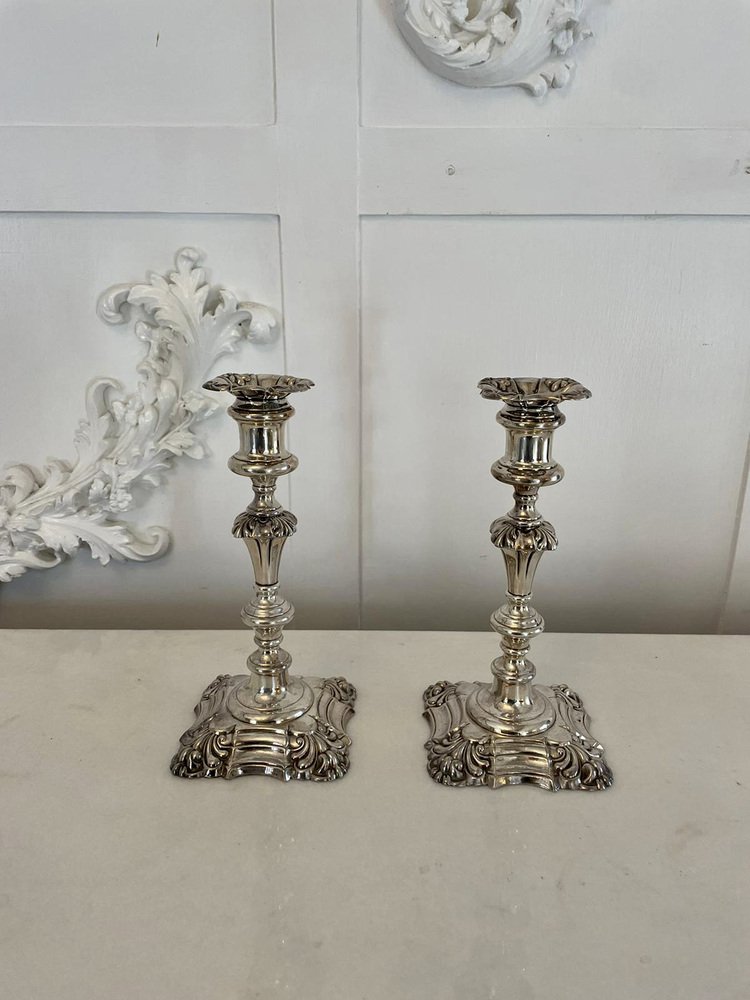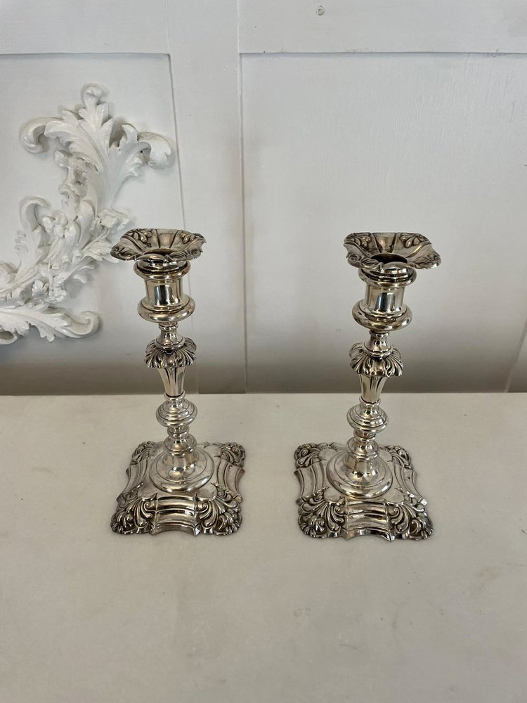 Candelabros telescópicos Sheffield George II antiguos, 1800. Juego de 2