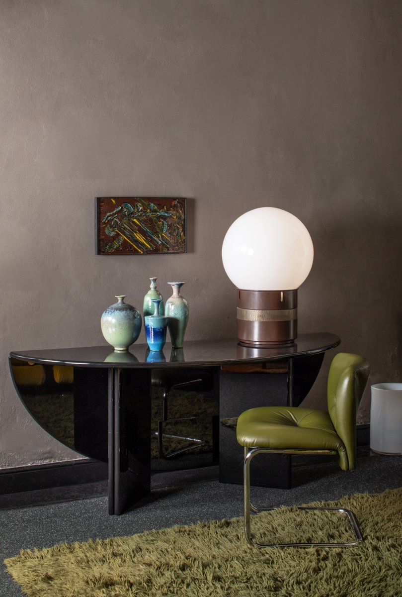 El mismo modelo se repite en jarrones de la misma época, donde el gesto gráfico acompaña y subraya la forma irregular de los propios jarrones.