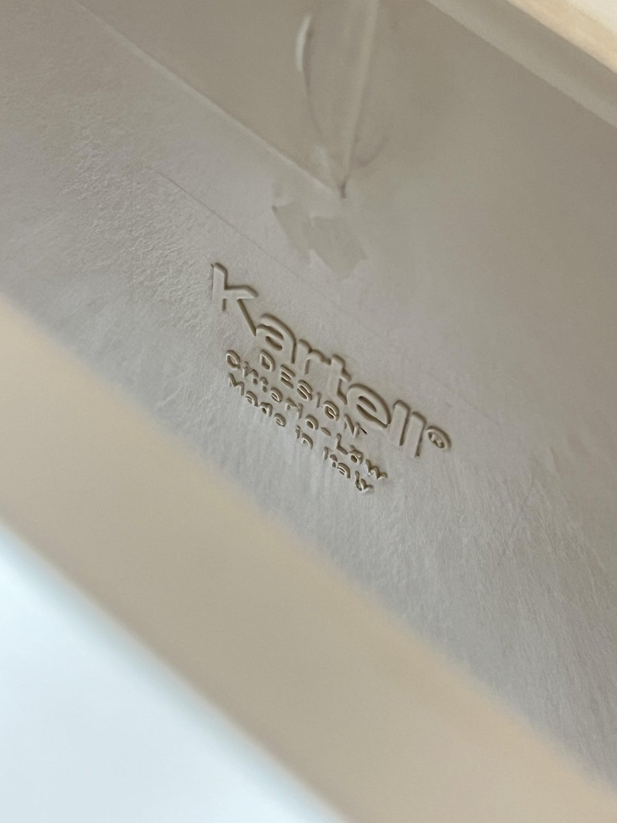 Specialized in luxury plastic furniture and decorative objects, Italian design brand Kartell was founded by Giulio Castelli (1920-2006) and his wife Anna Ferrieri (1918-2006) in Milan in 1949. The son of a plastics researcher, Castelli was attracted to experimental, new materials from an early age and went on to study chemical engineering under Nobel Prize winning chemist Giulio Natta. Ferrieri, meanwhile, studied architecture at the Politecnico di Milano under influential, neo-rationalist architect-designer Franco Albini.
