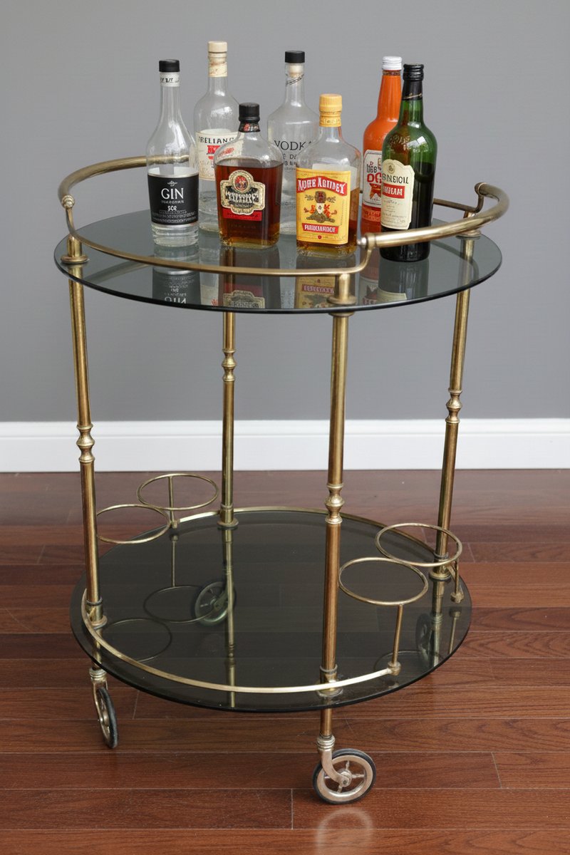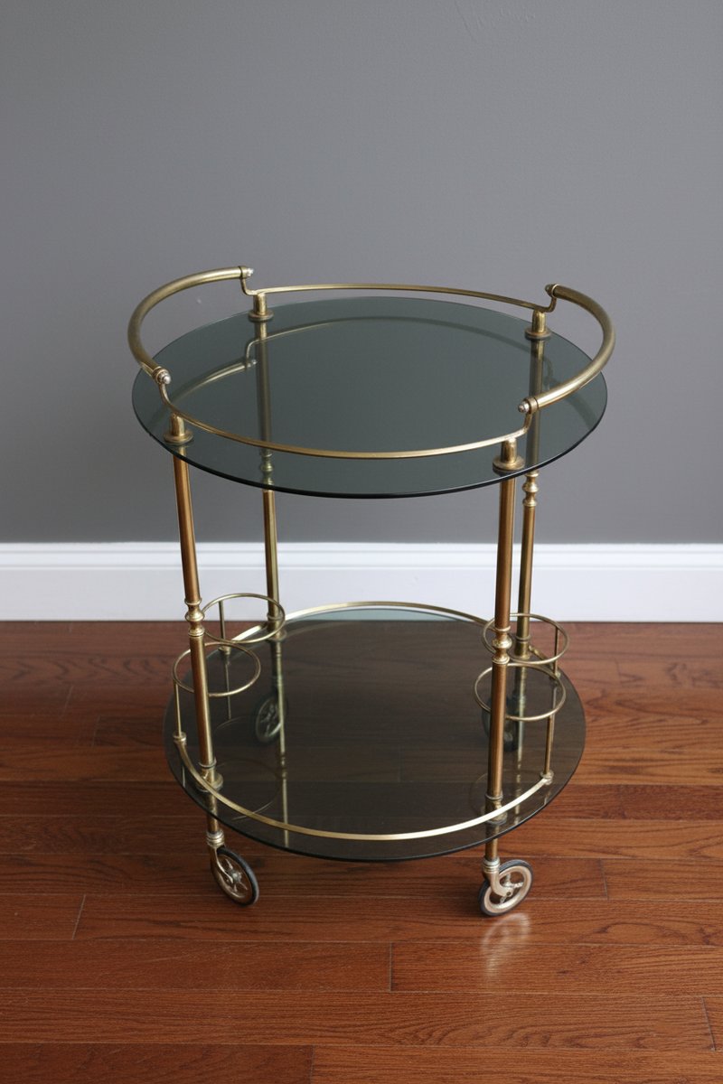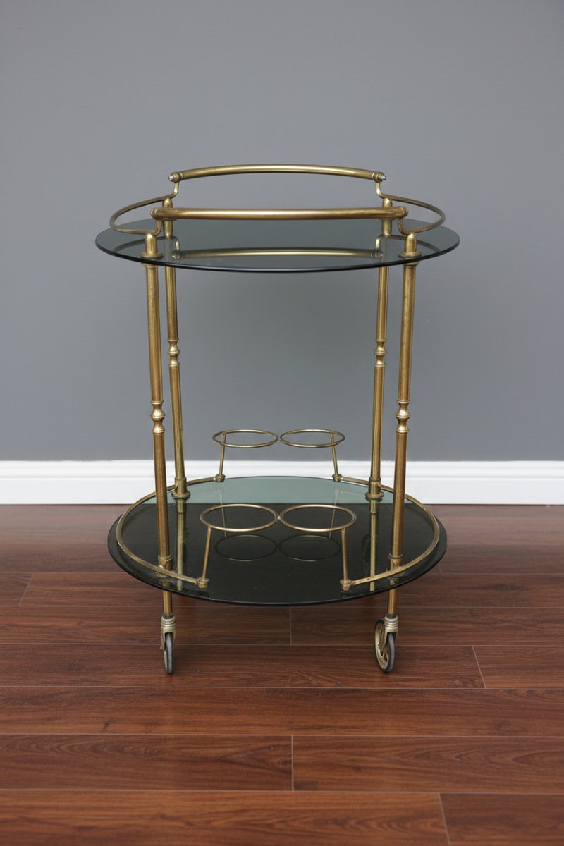 Carrito de servicio vintage de latón, años 70