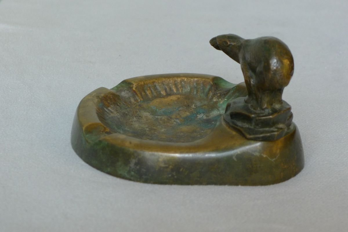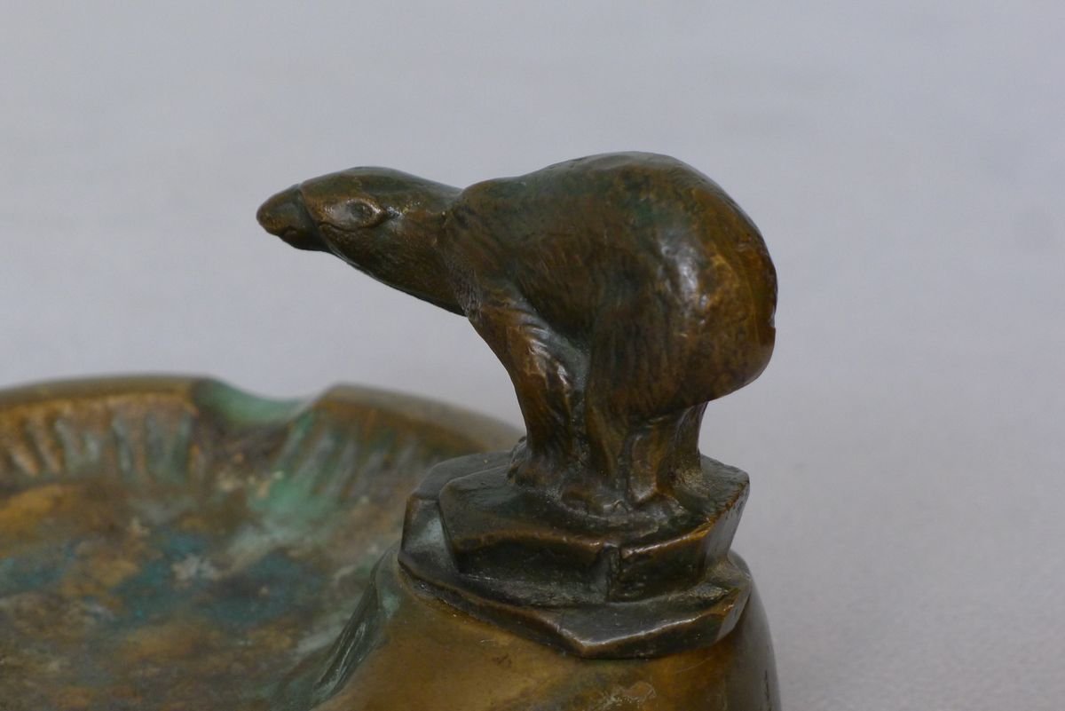 Cenicero danés Art Déco de bronce con figura de oso polar