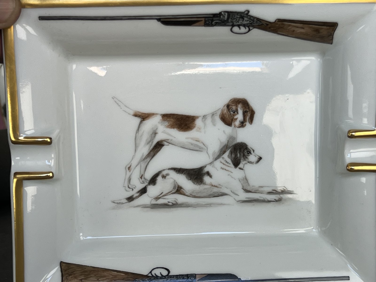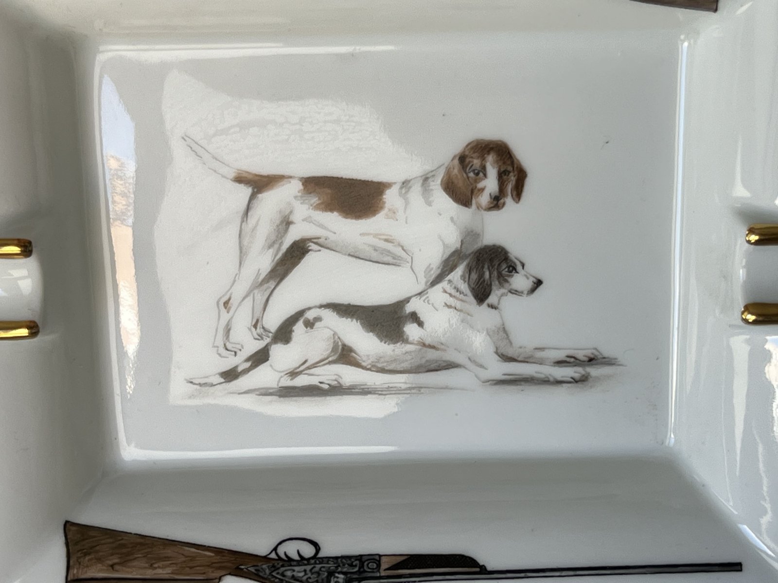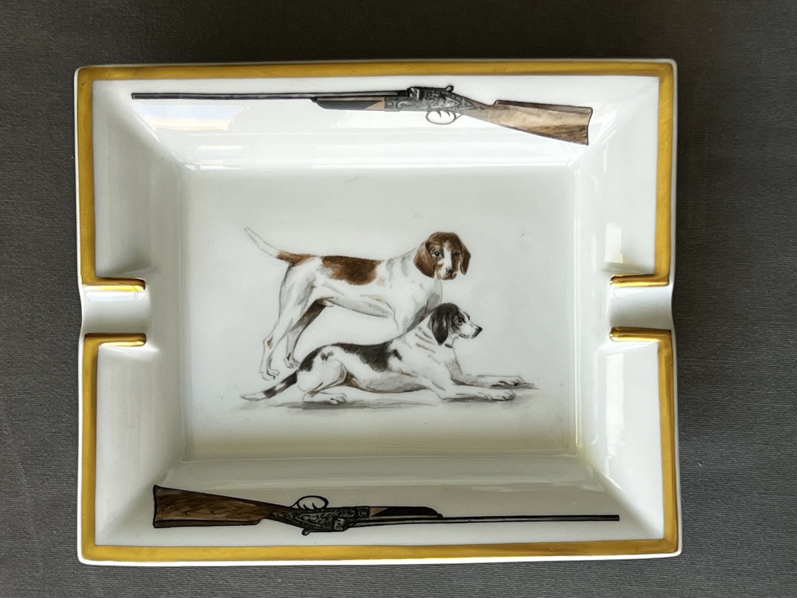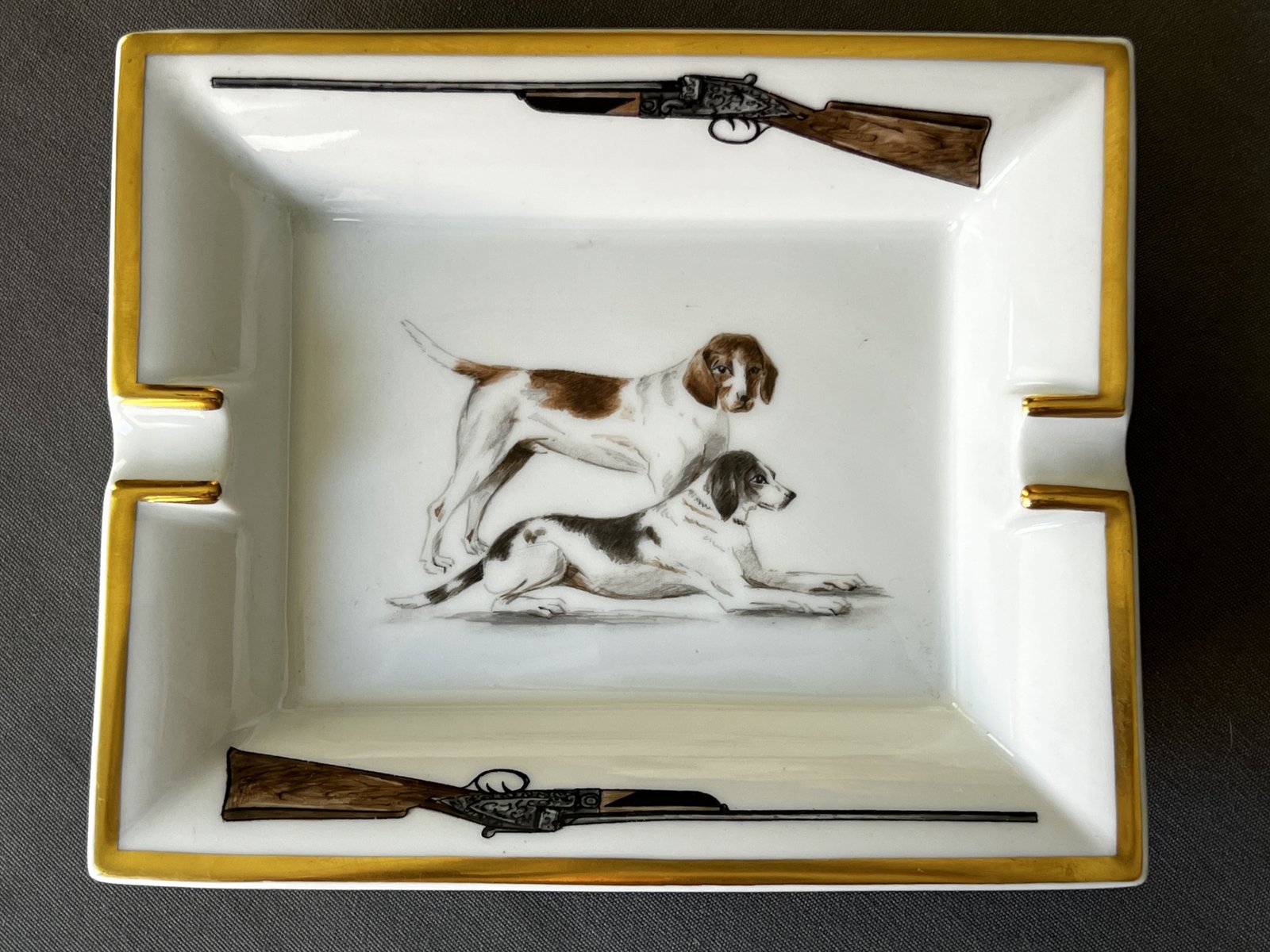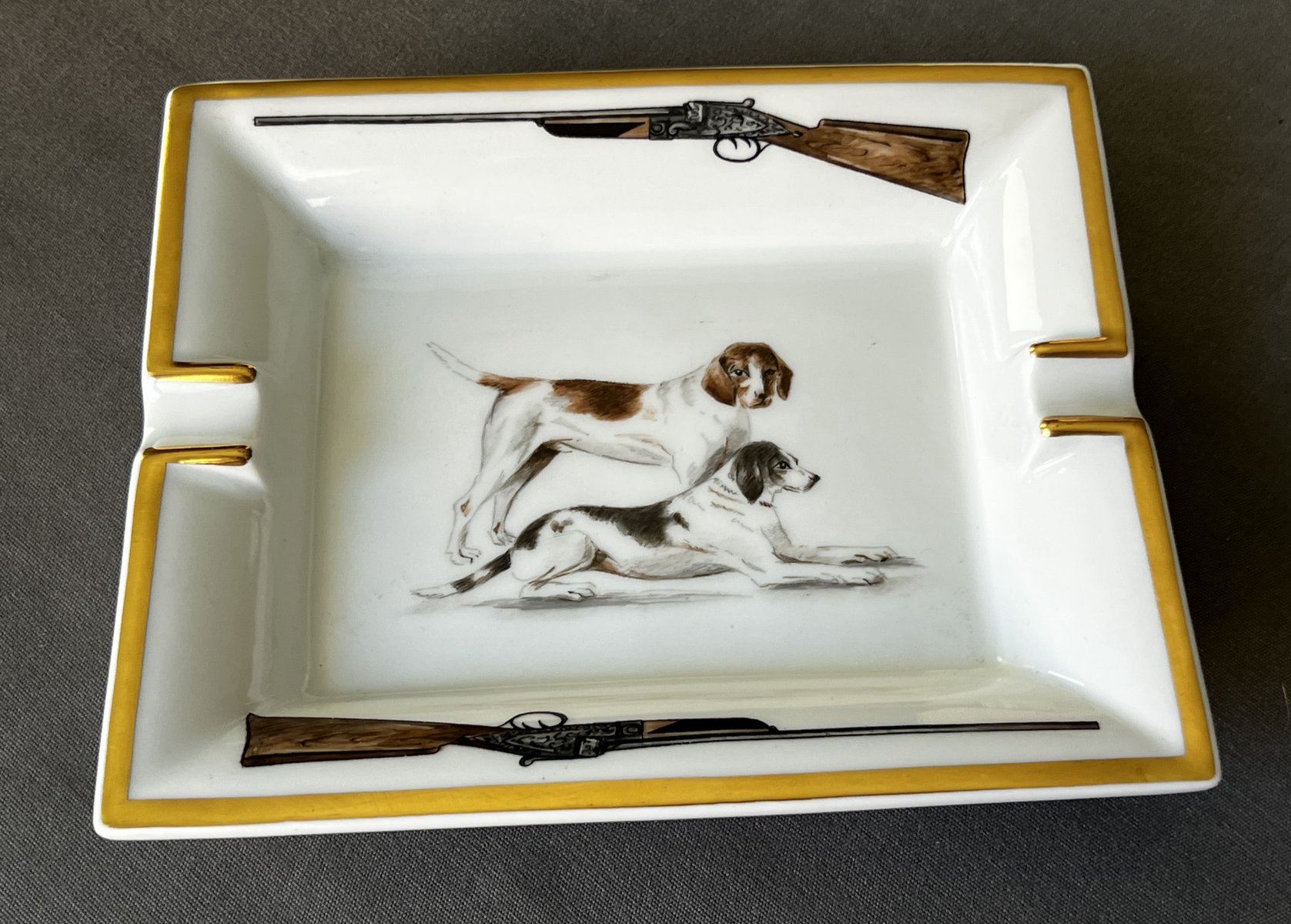 Cenicero de porcelana con perros de Hermès, París, Francia, 1980