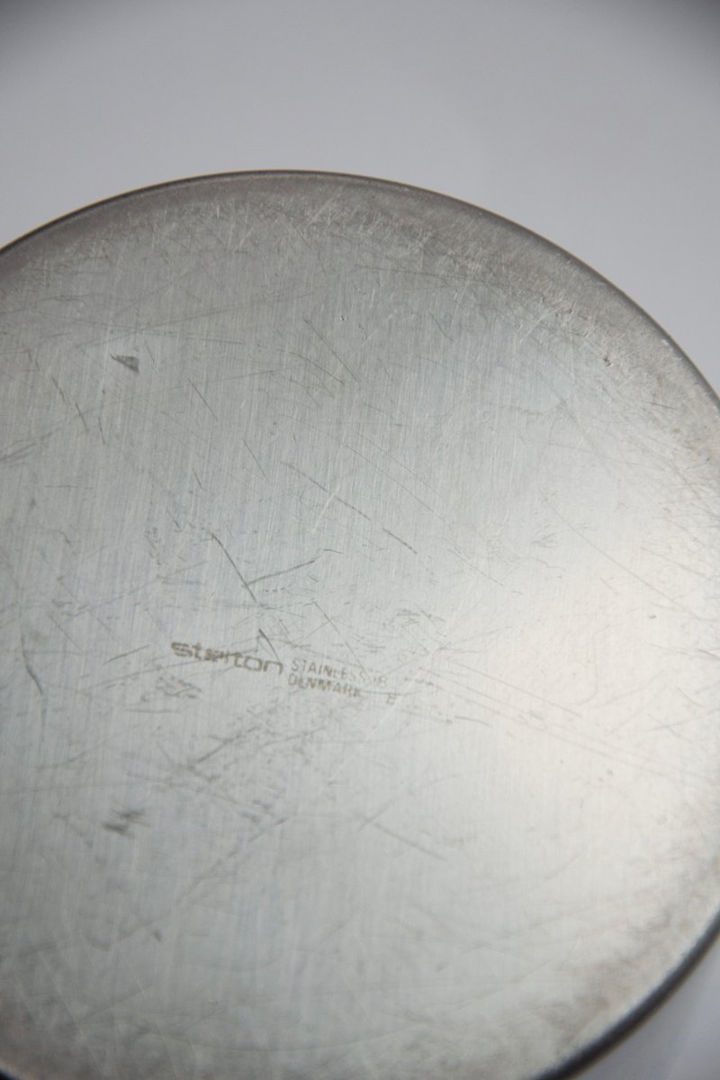 Versátil en su uso, también puede servir en una mesa o barra para recoger huesos de aceituna, rodajas de limón exprimidas o pequeños residuos durante el servicio. Un clásico del diseño modernista danés, concebido para durar: discreto, racional y perfectamente equilibrado. Muy buen estado vintage (ligeros signos de desgaste acordes con su antigüedad).